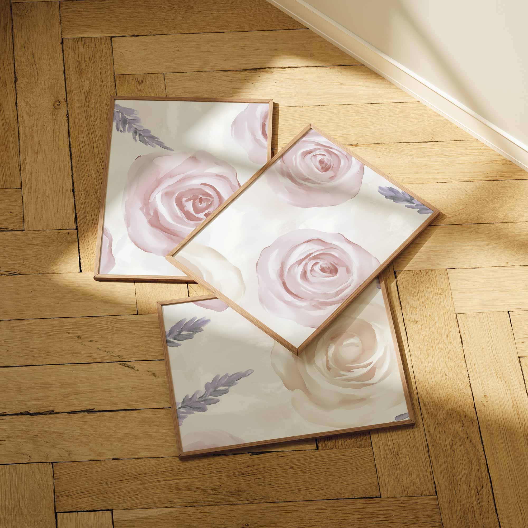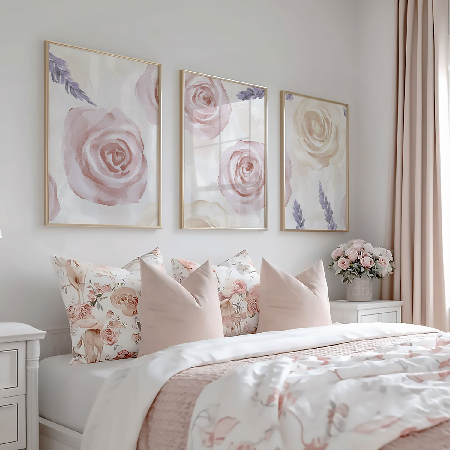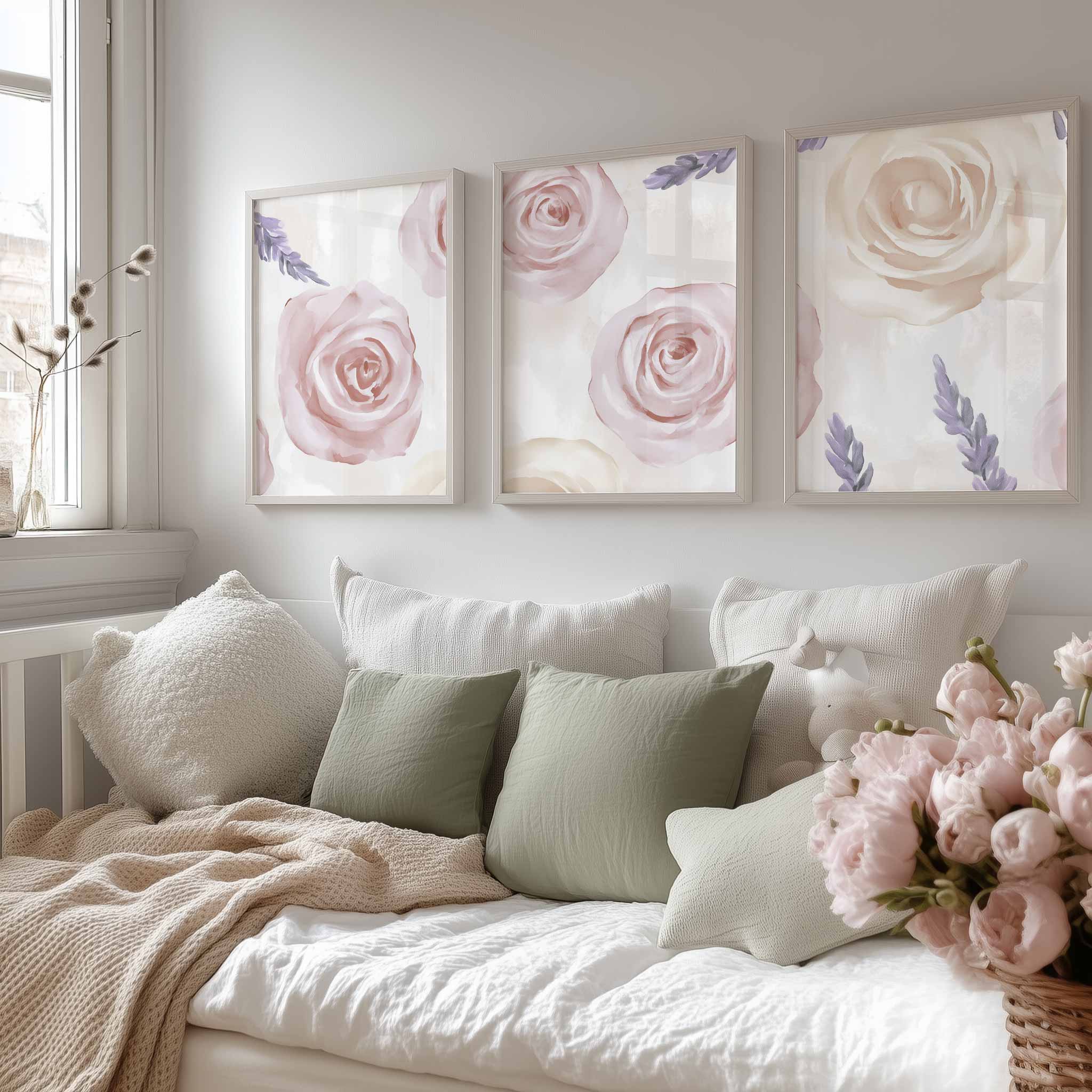 Pastel Rozen en Lavendel – Sfeervolle Bloemenwanddecoratie