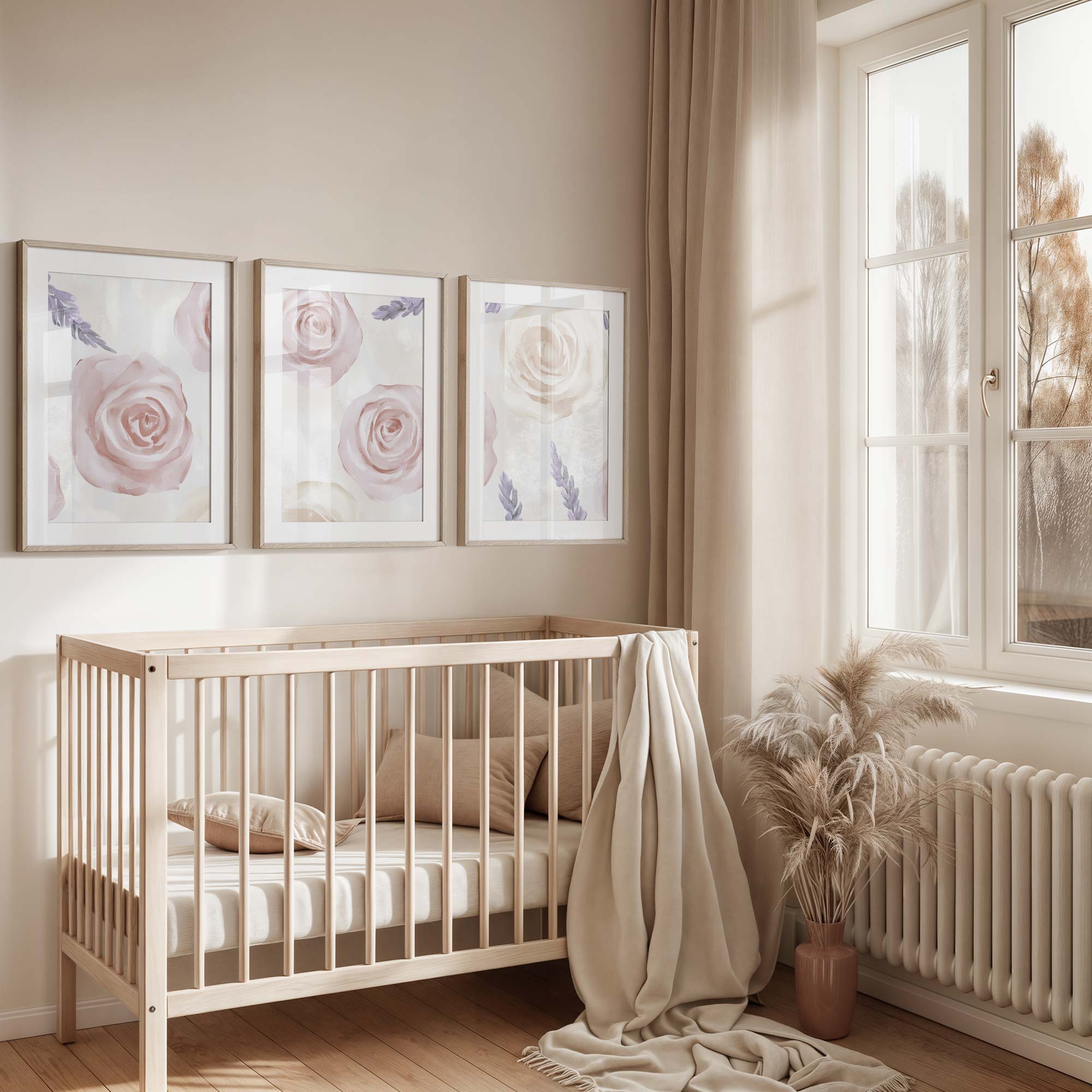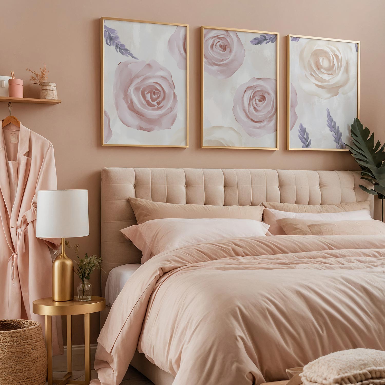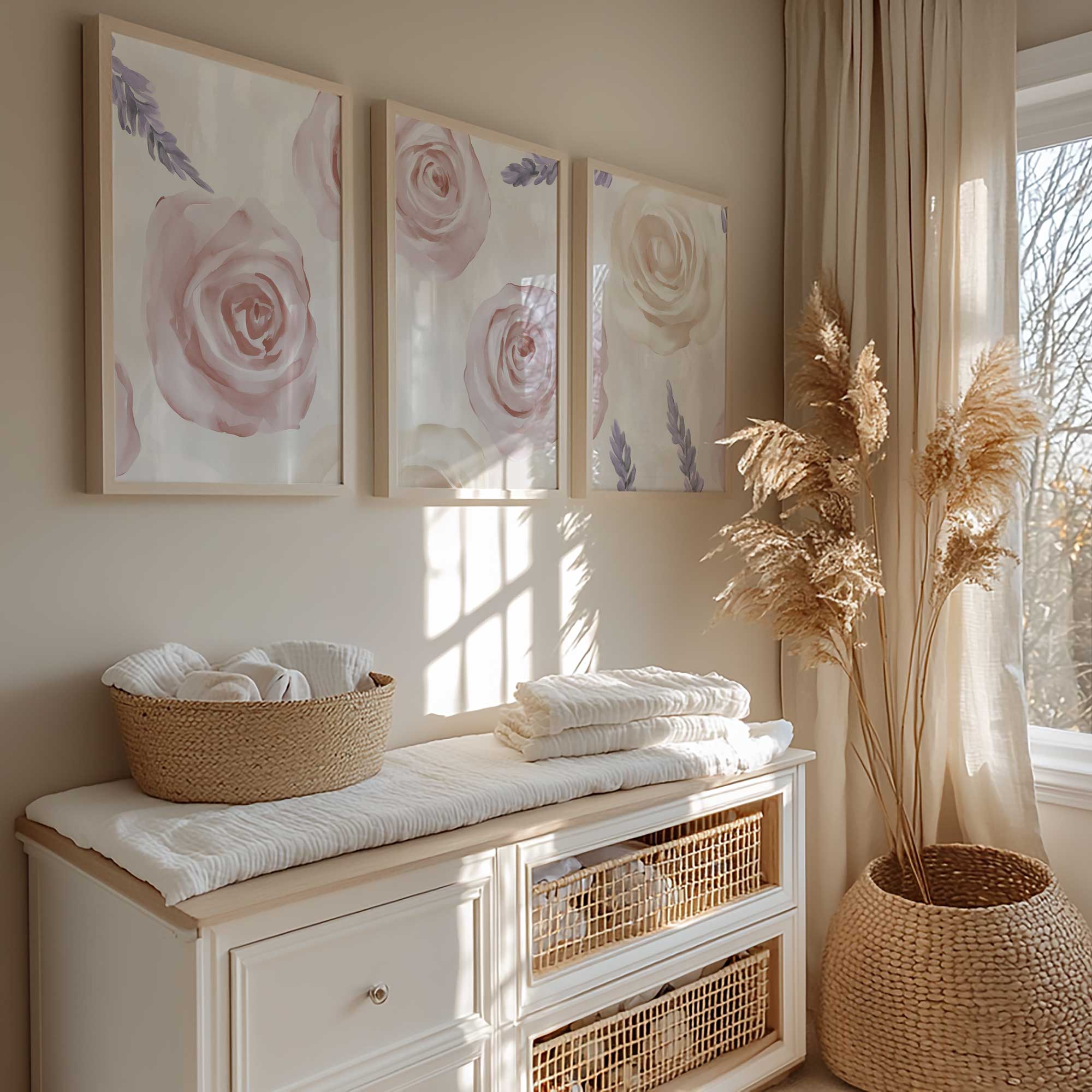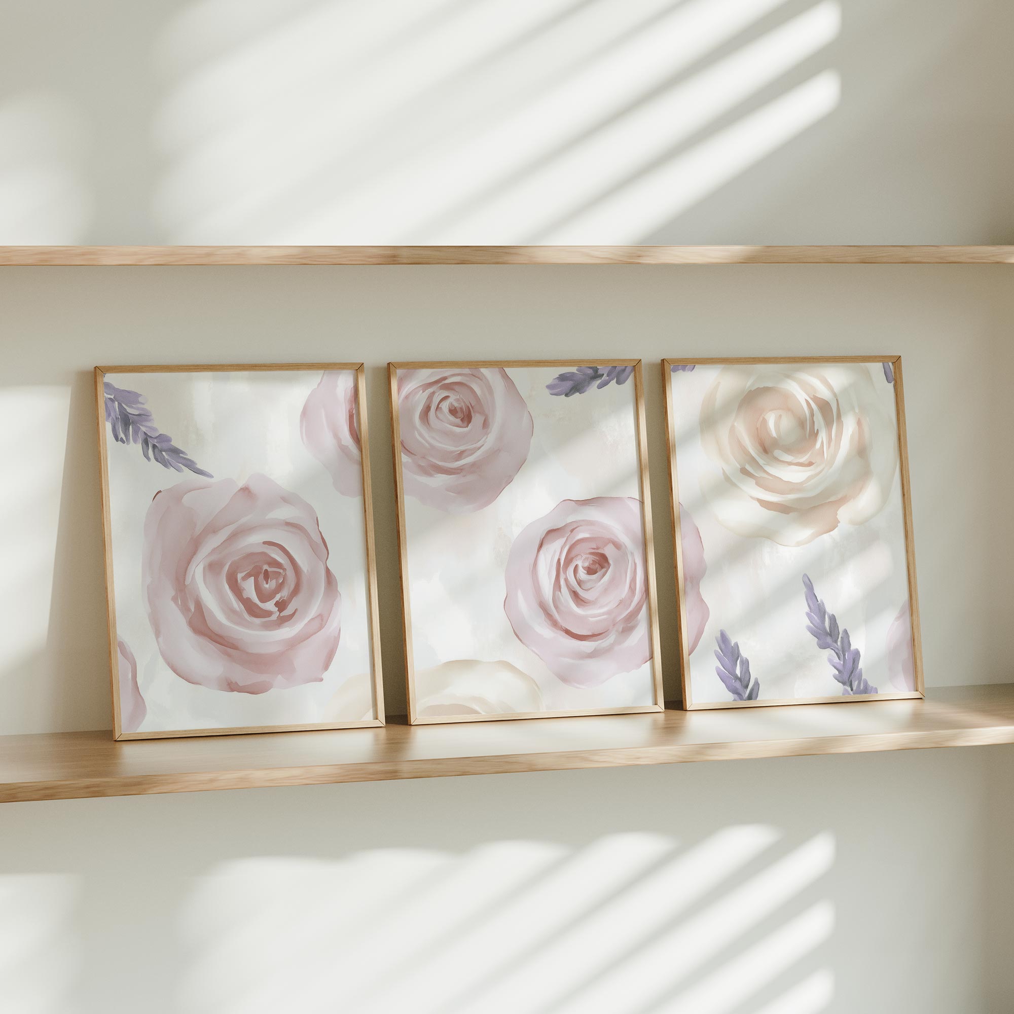 Pastel Rozen en Lavendel – Sfeervolle Bloemenwanddecoratie