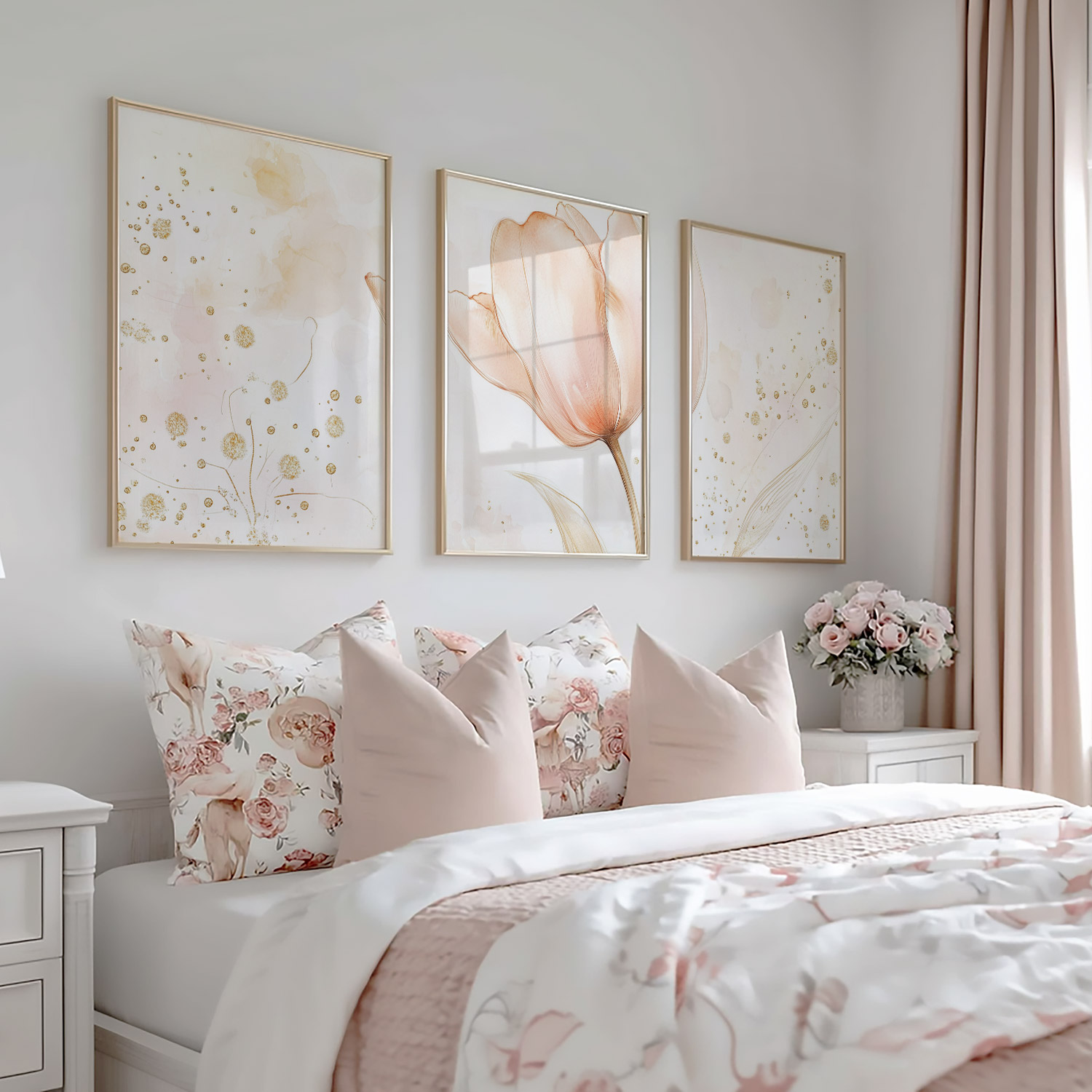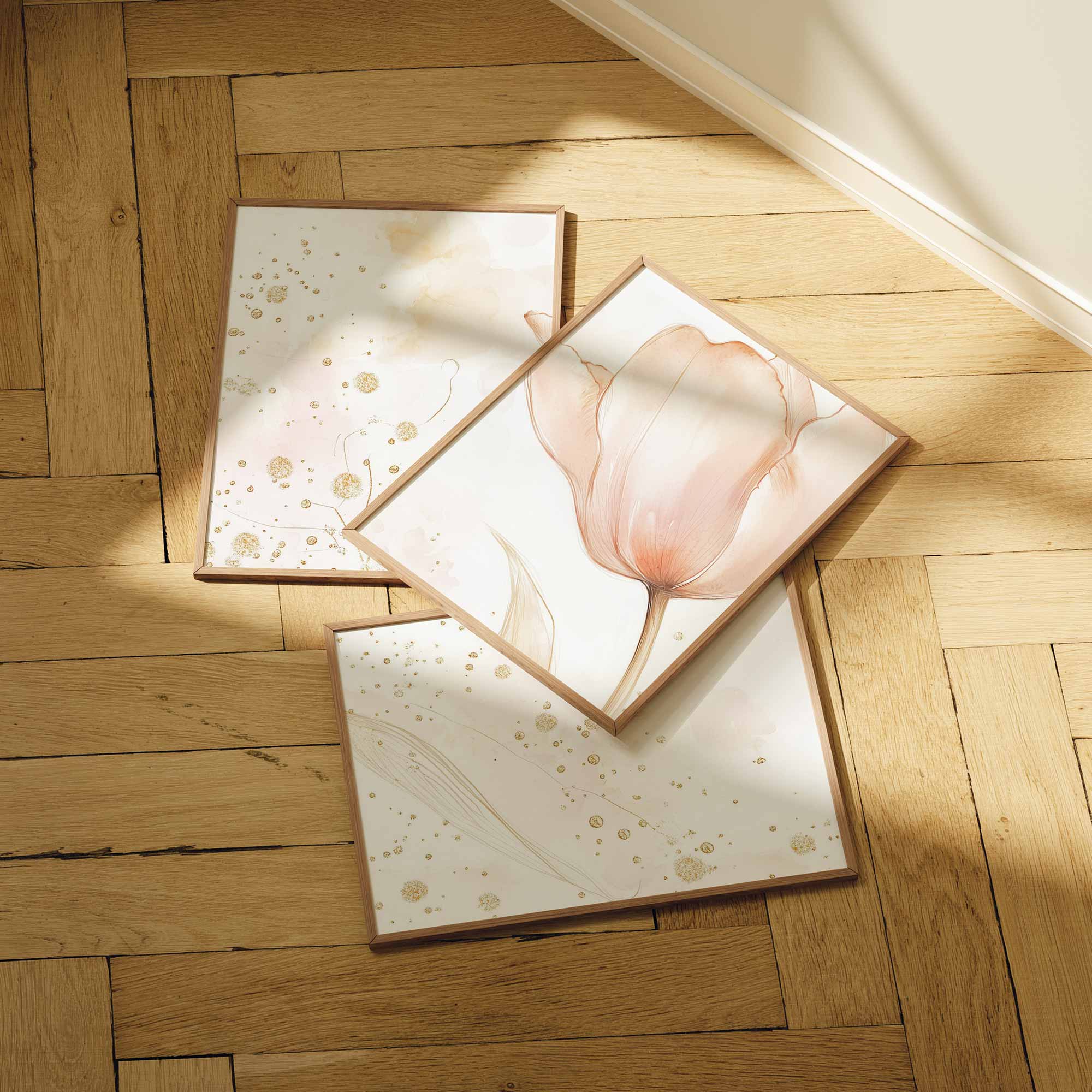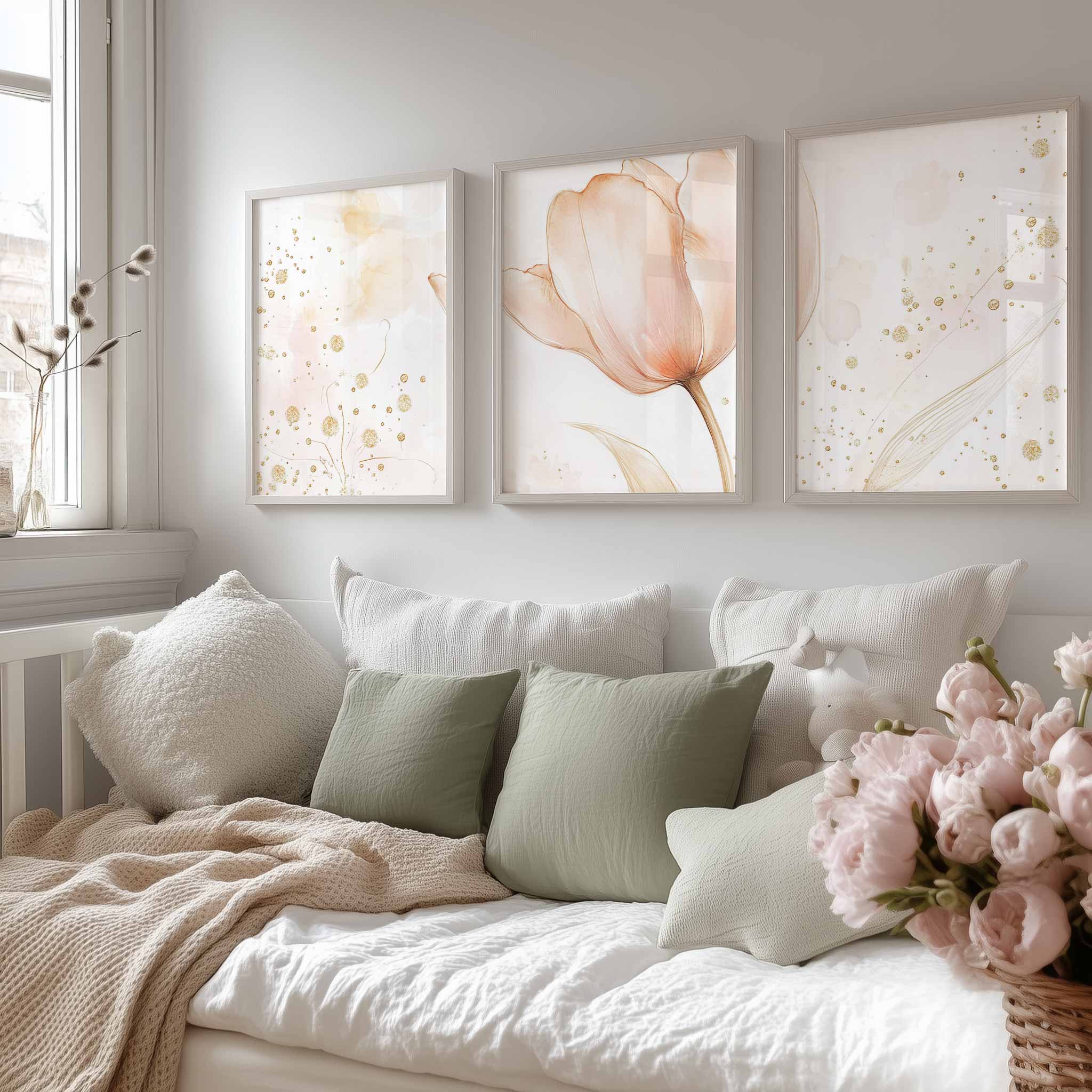 Pastel Tulpen Met Gouden Glitter – Zachte Elegantie