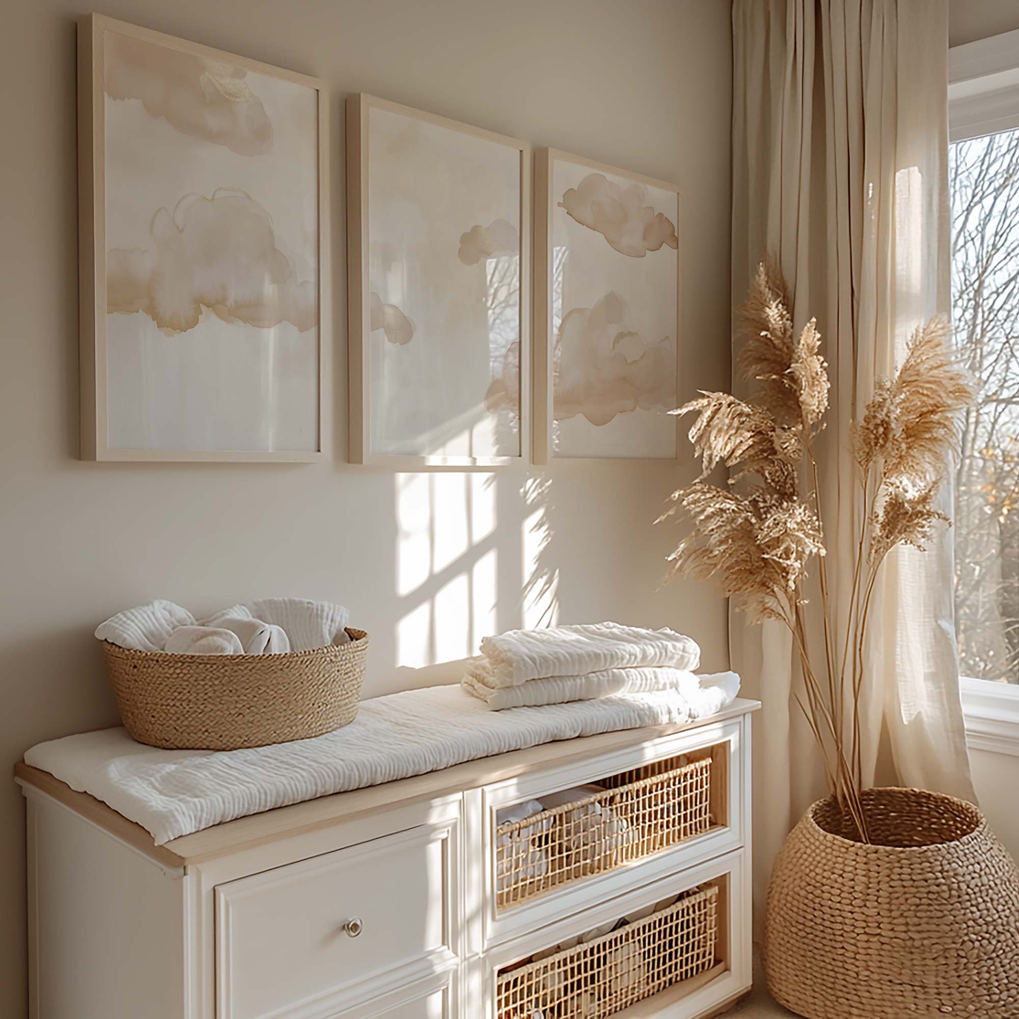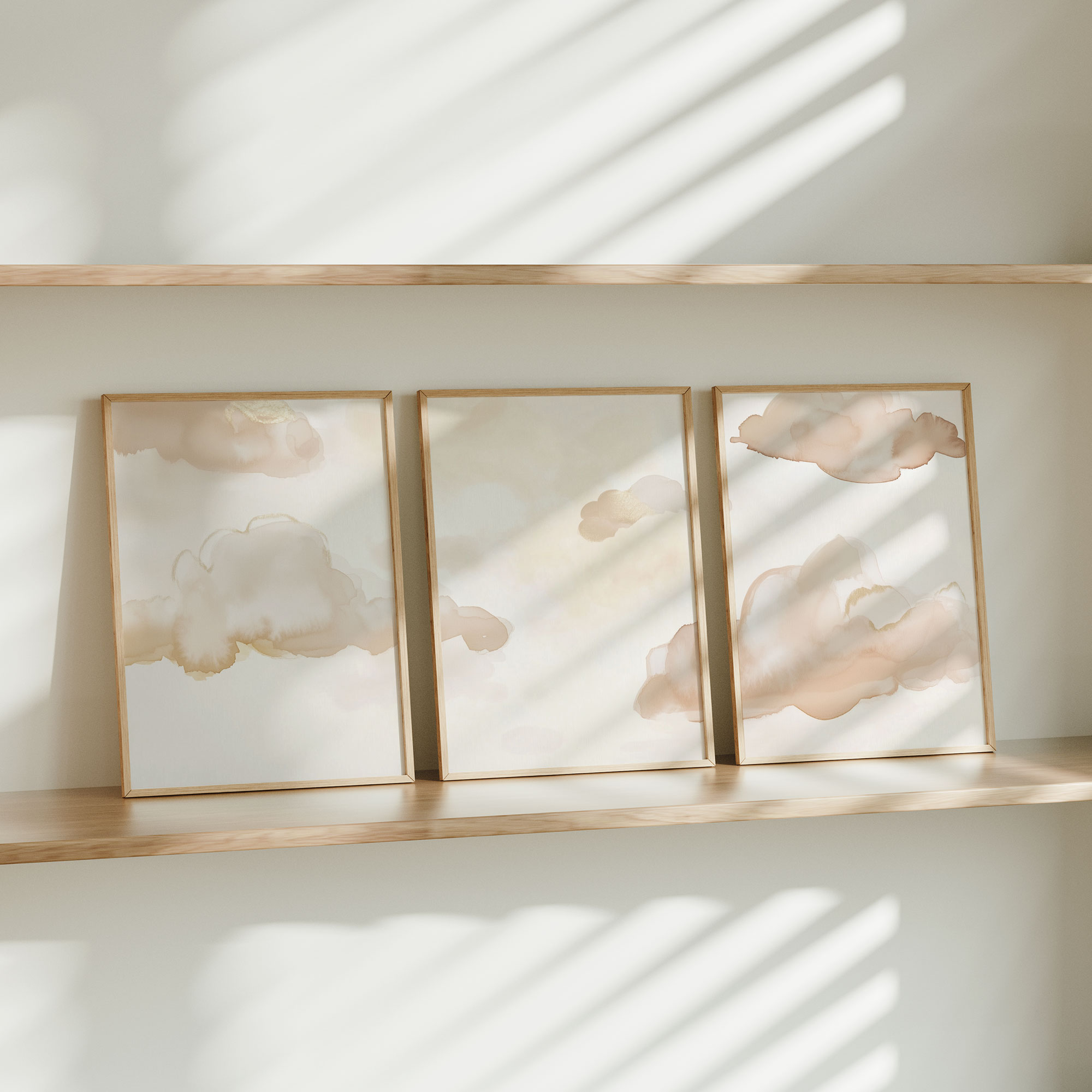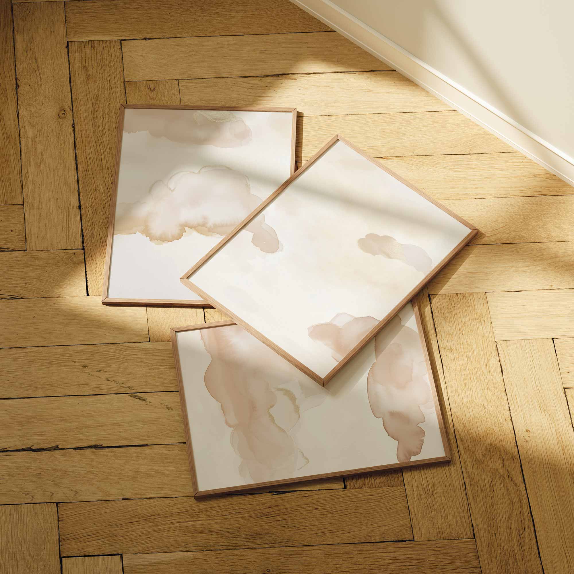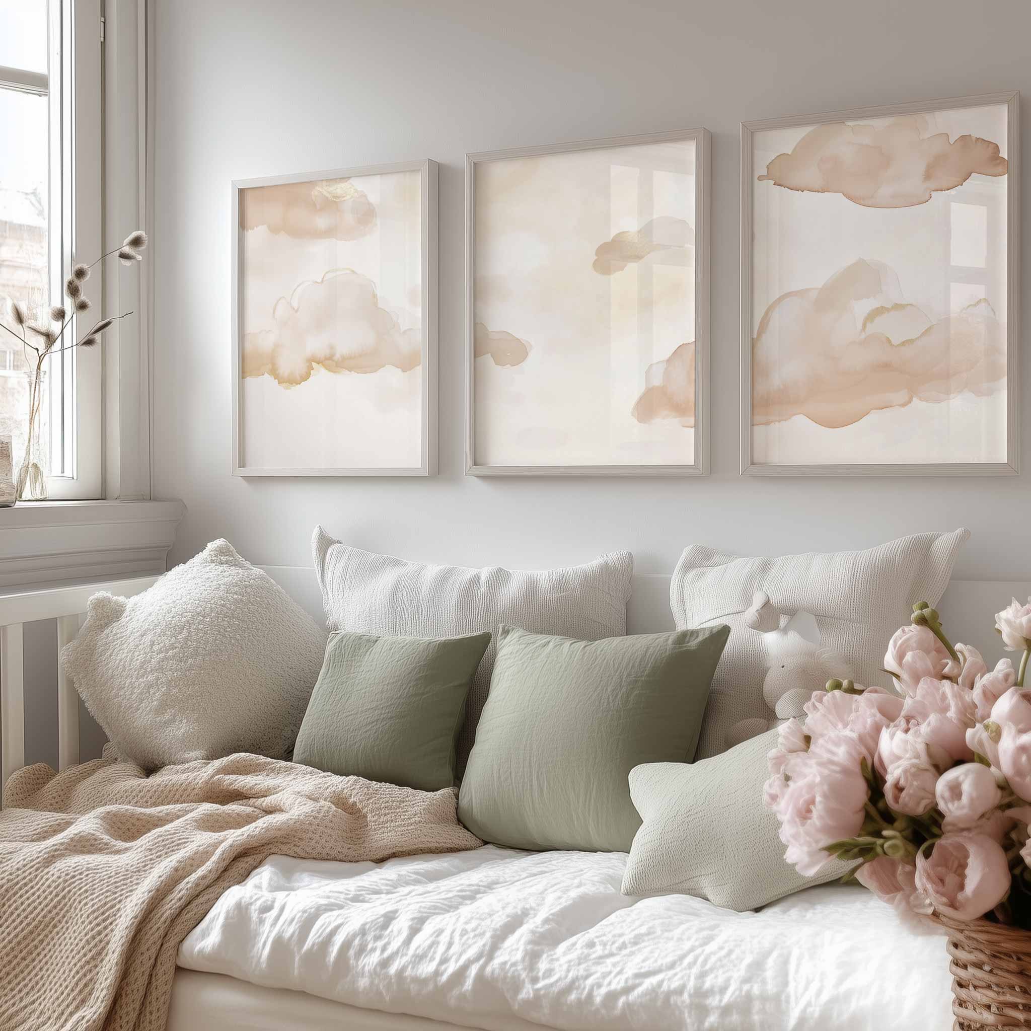 Pastel Wolkenhemel – Dromerige Wanddecoratie in Watercolor Stijl