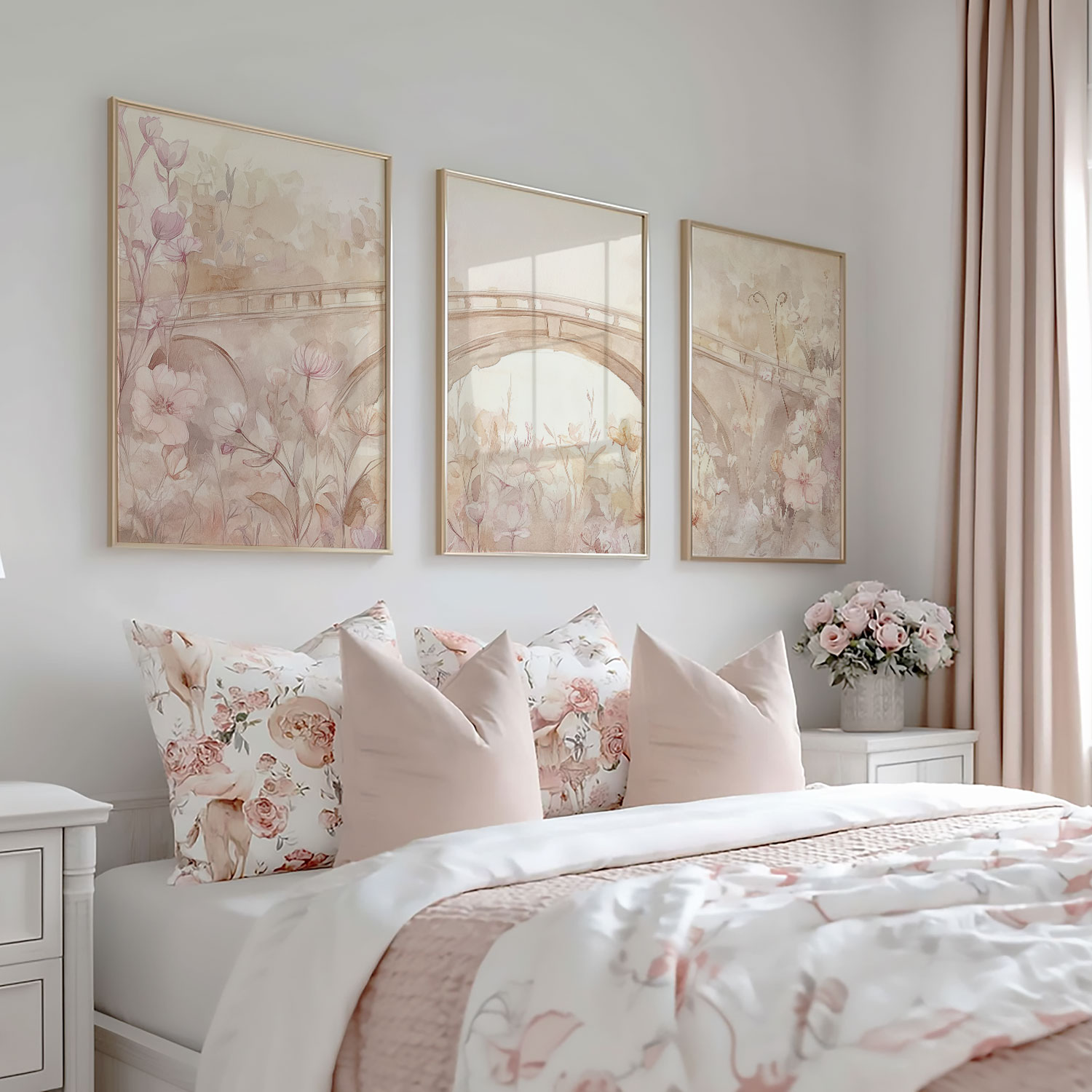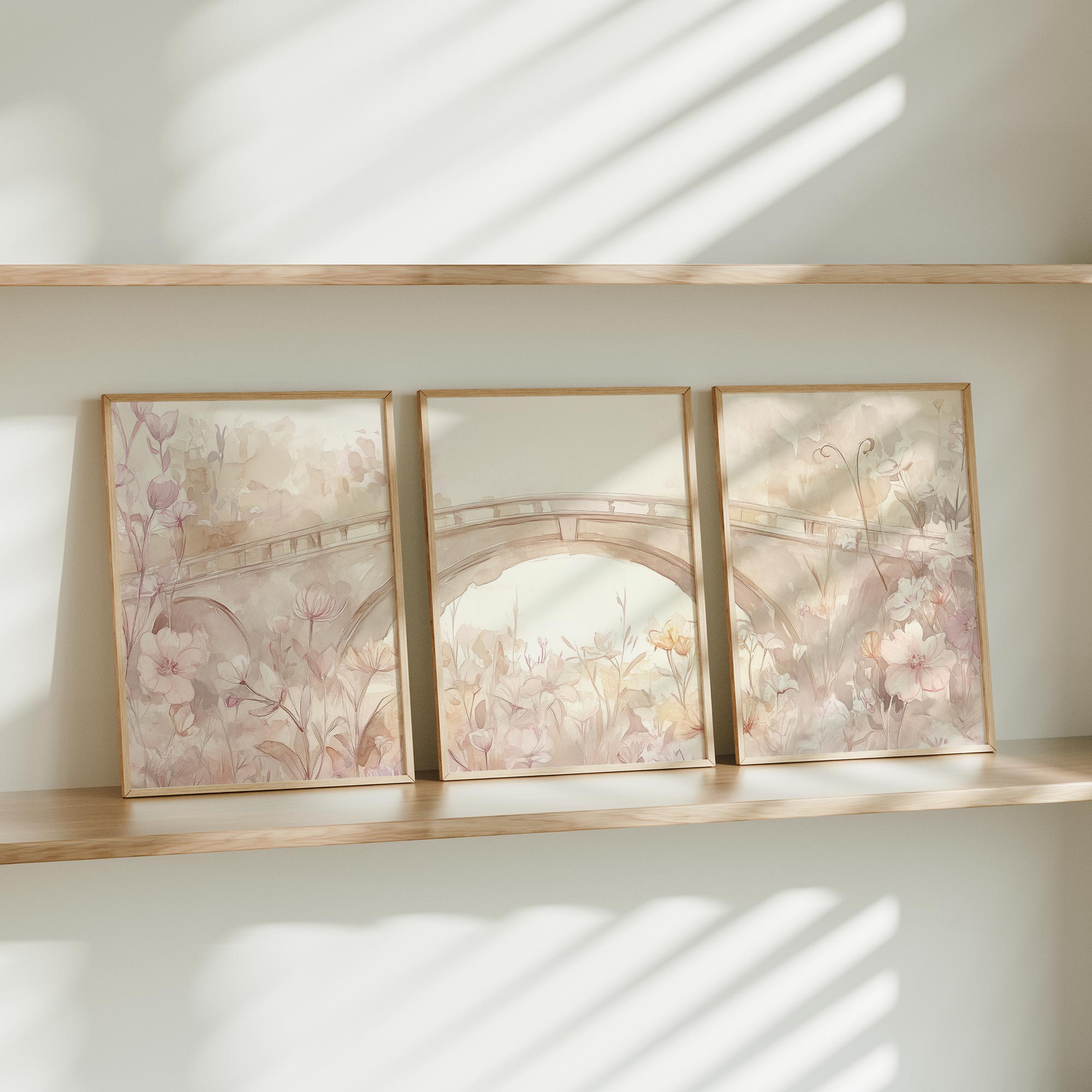 Pastelbruggen en Bloemenvelden – Dromerige Wanddecoratie