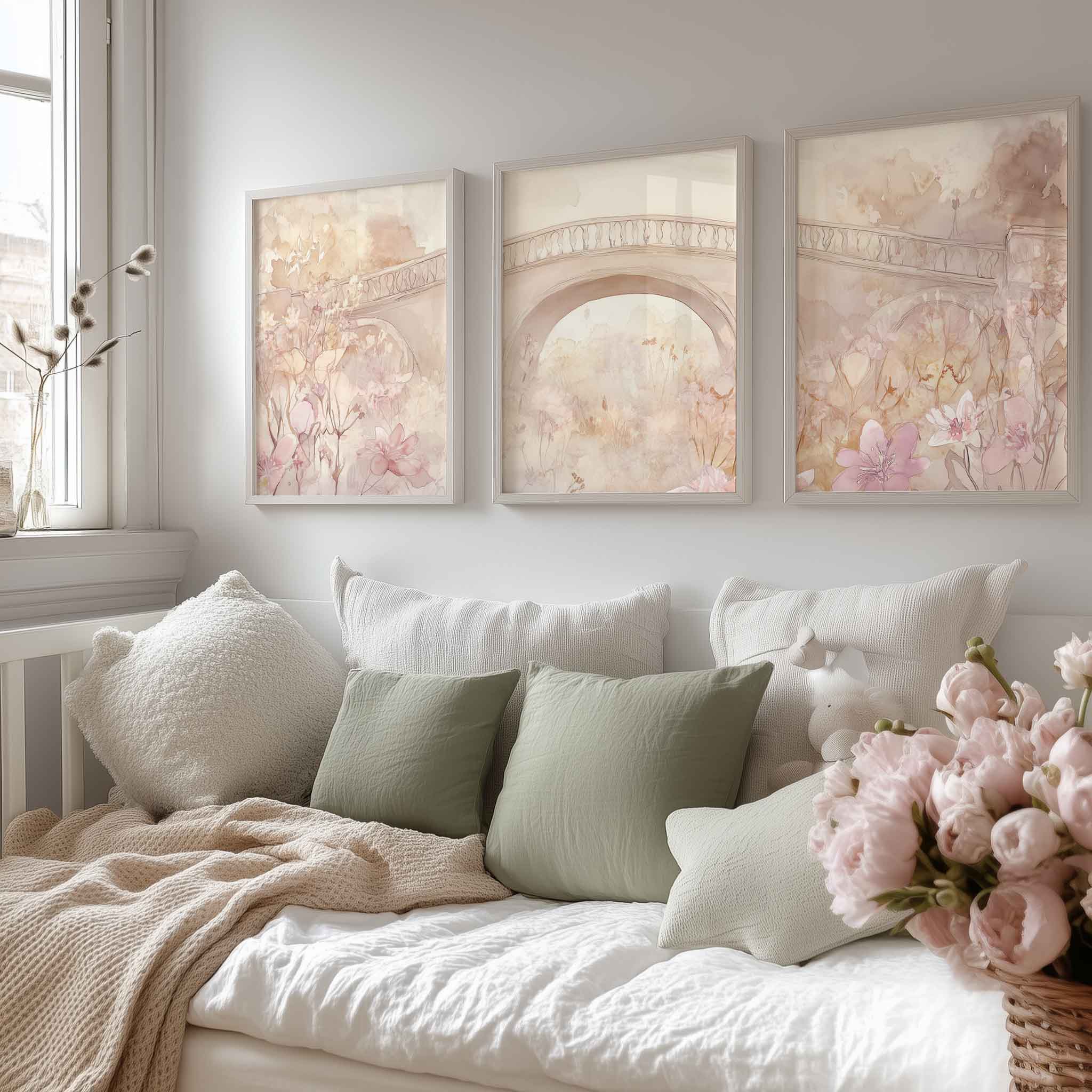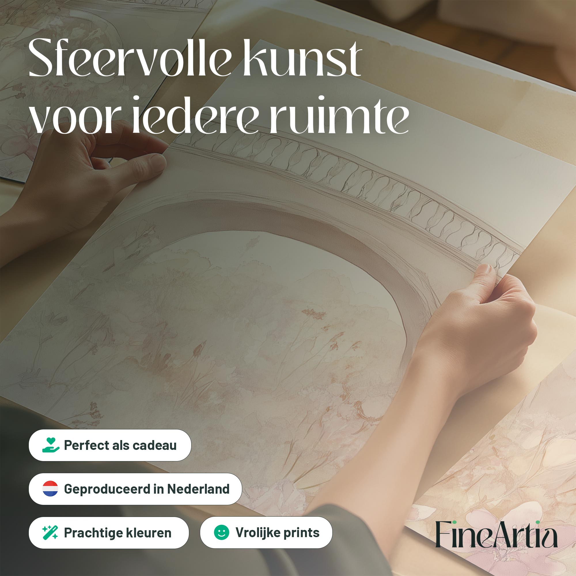 Pastelbruid omringd door speelse bloemen – Watercolor decor