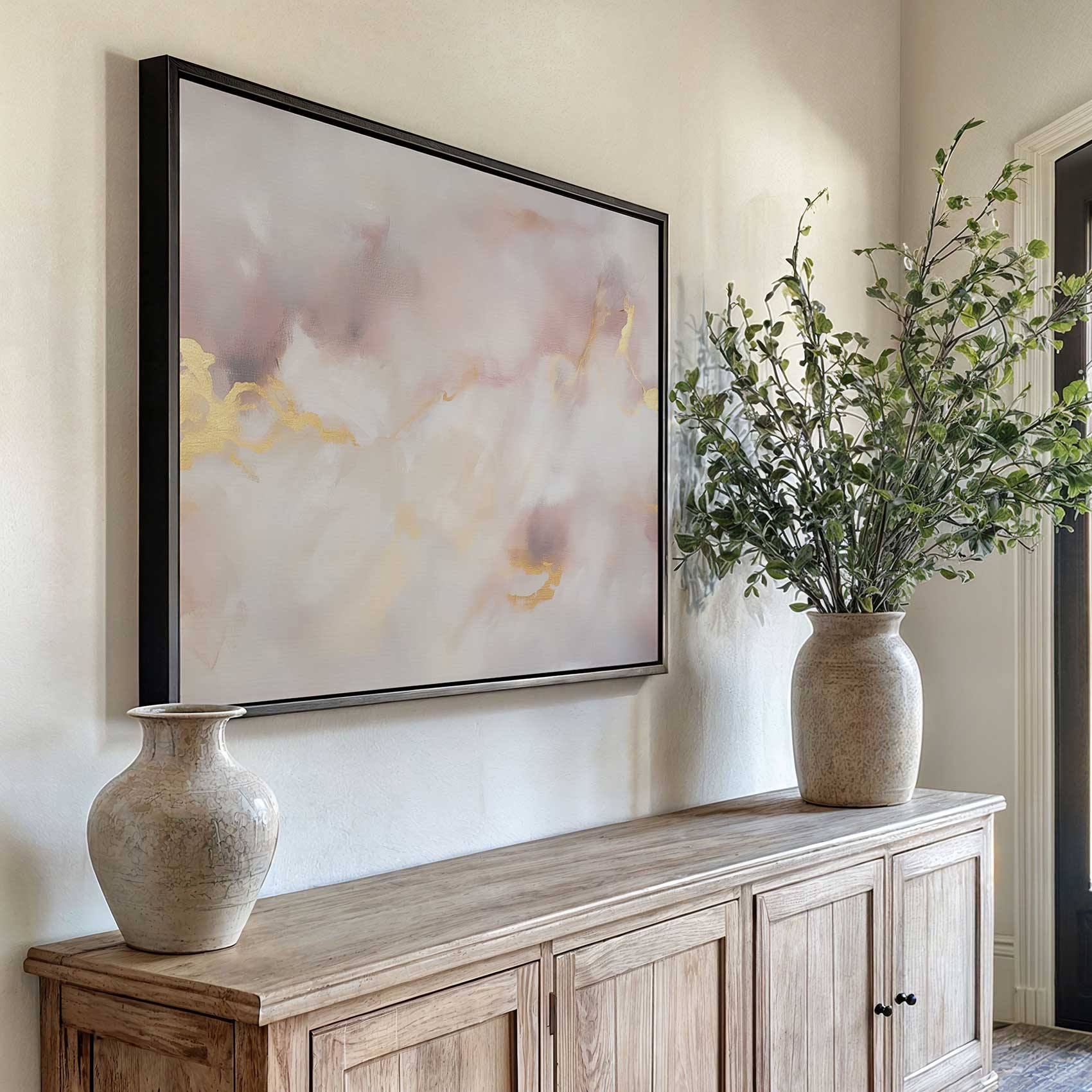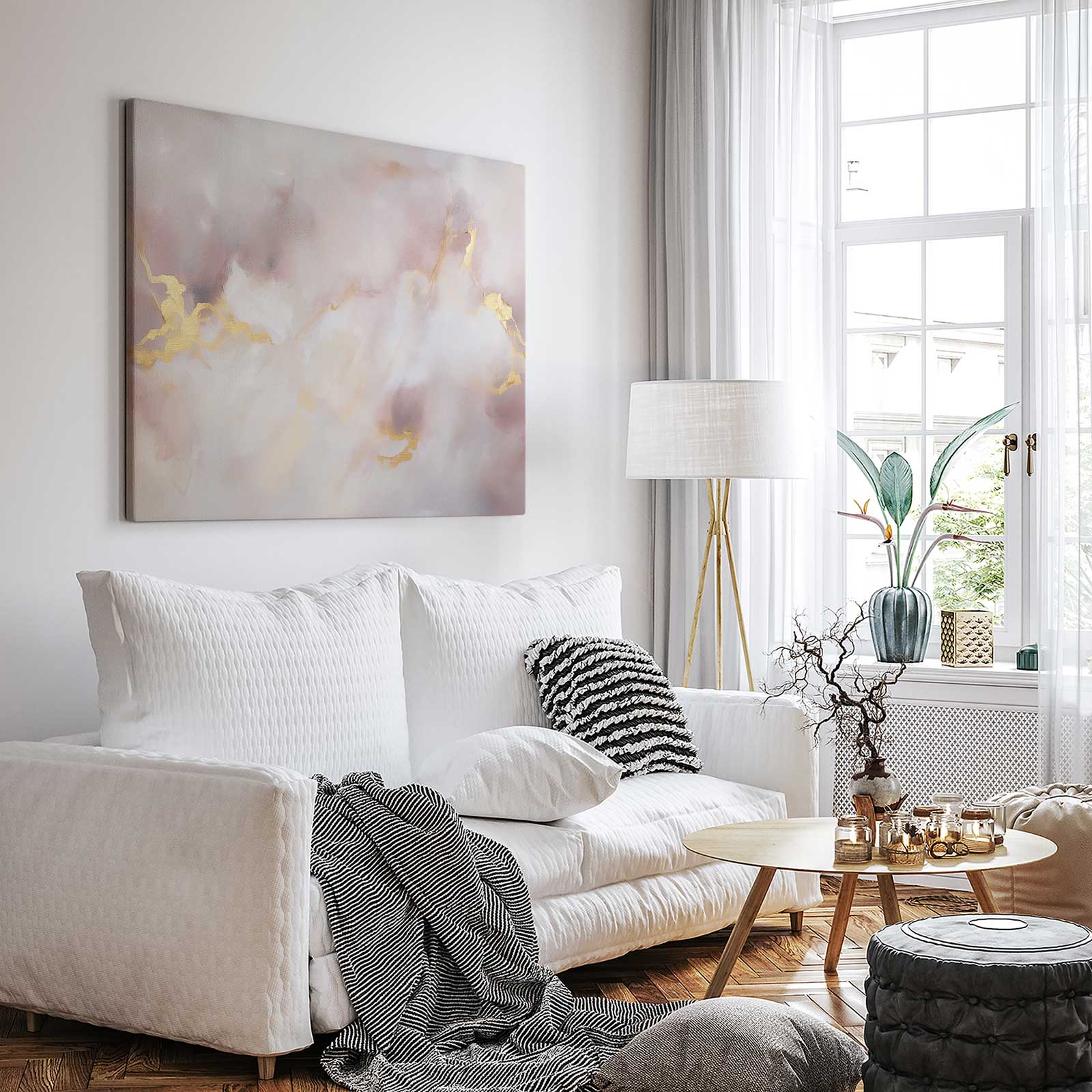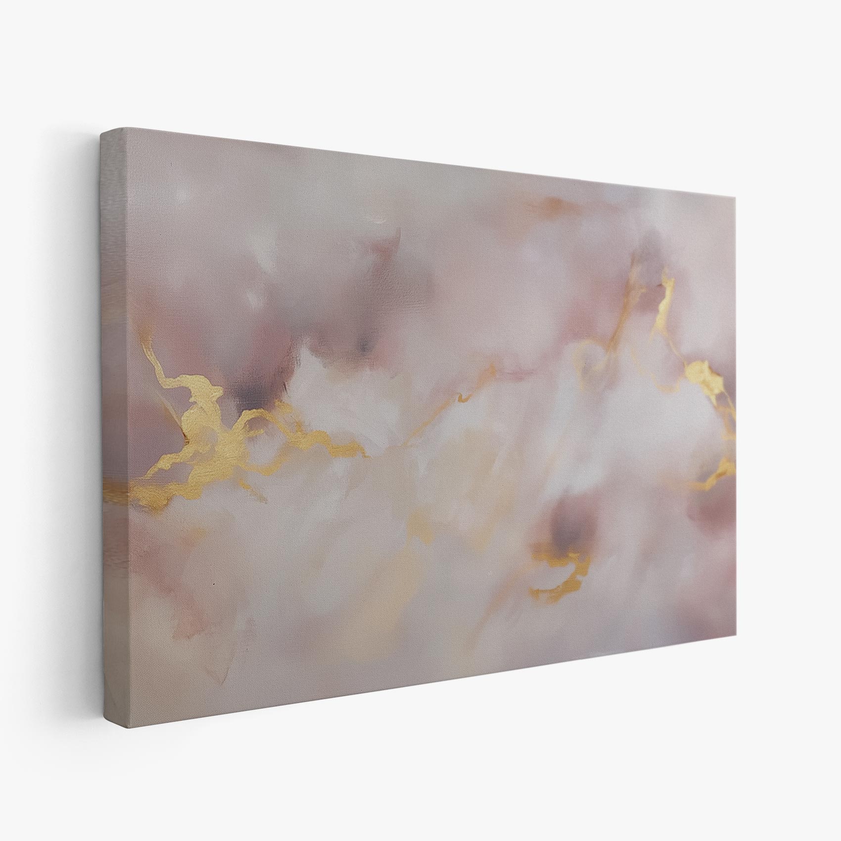 Terug naar collectie Canvas Pastelroze en gouden abstract schilderij