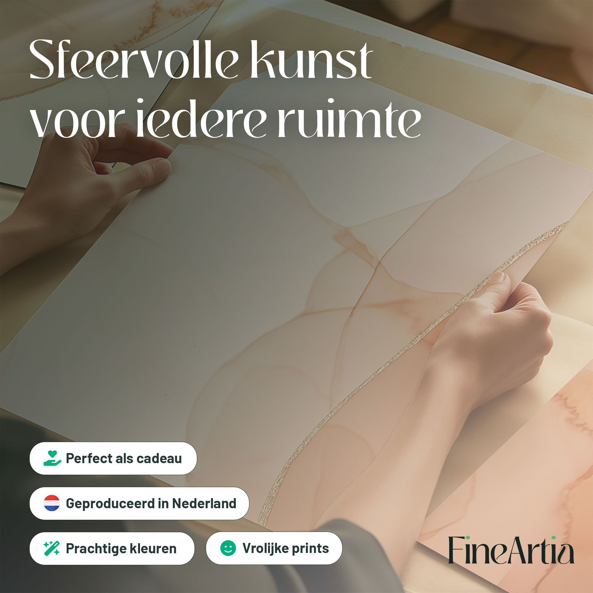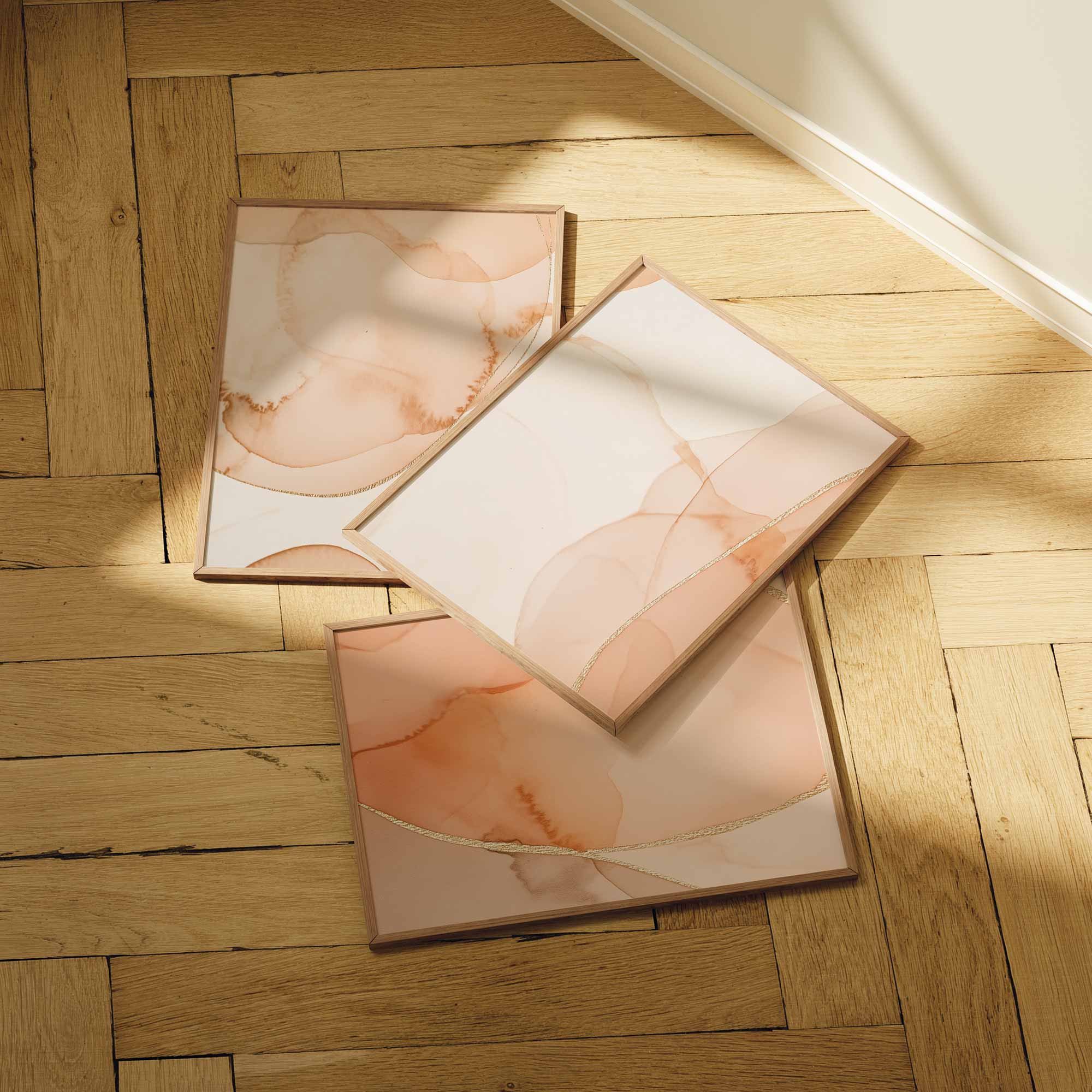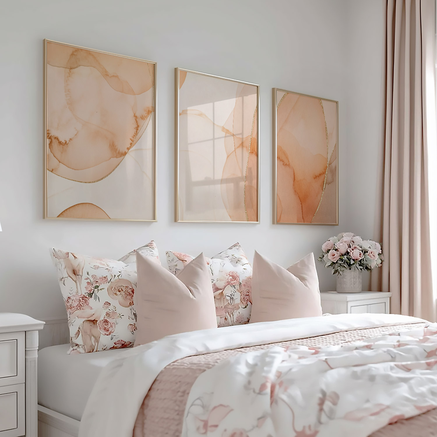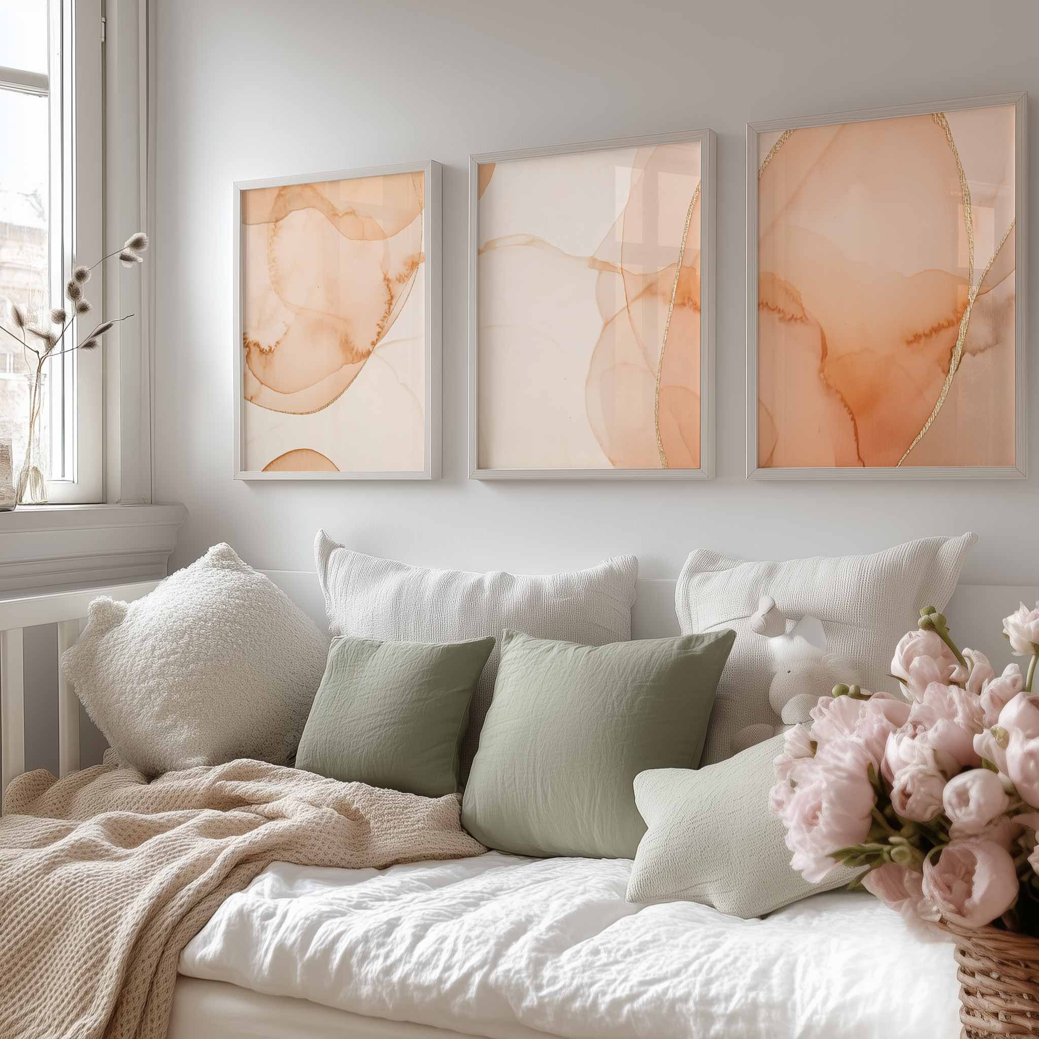 Peach & Gold Abstracte Waterverf Wanddecoratie – Speels en Stijlvol