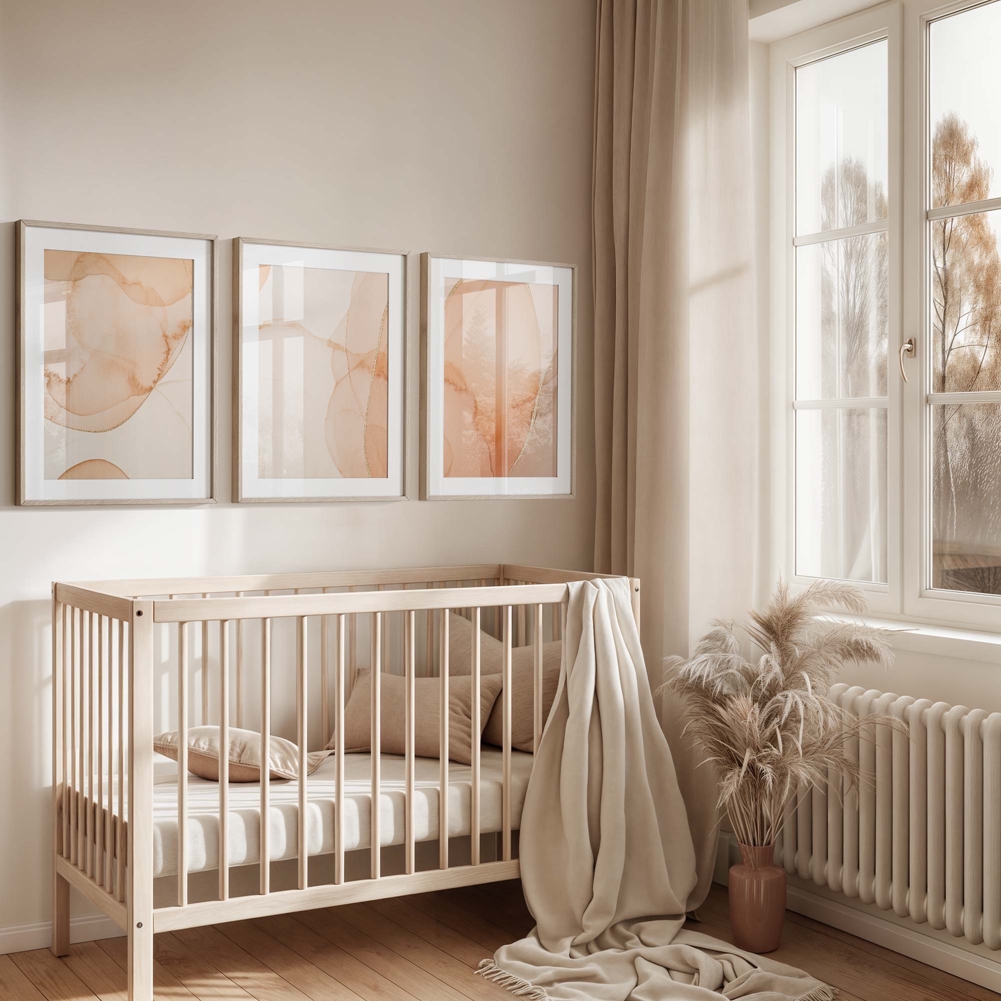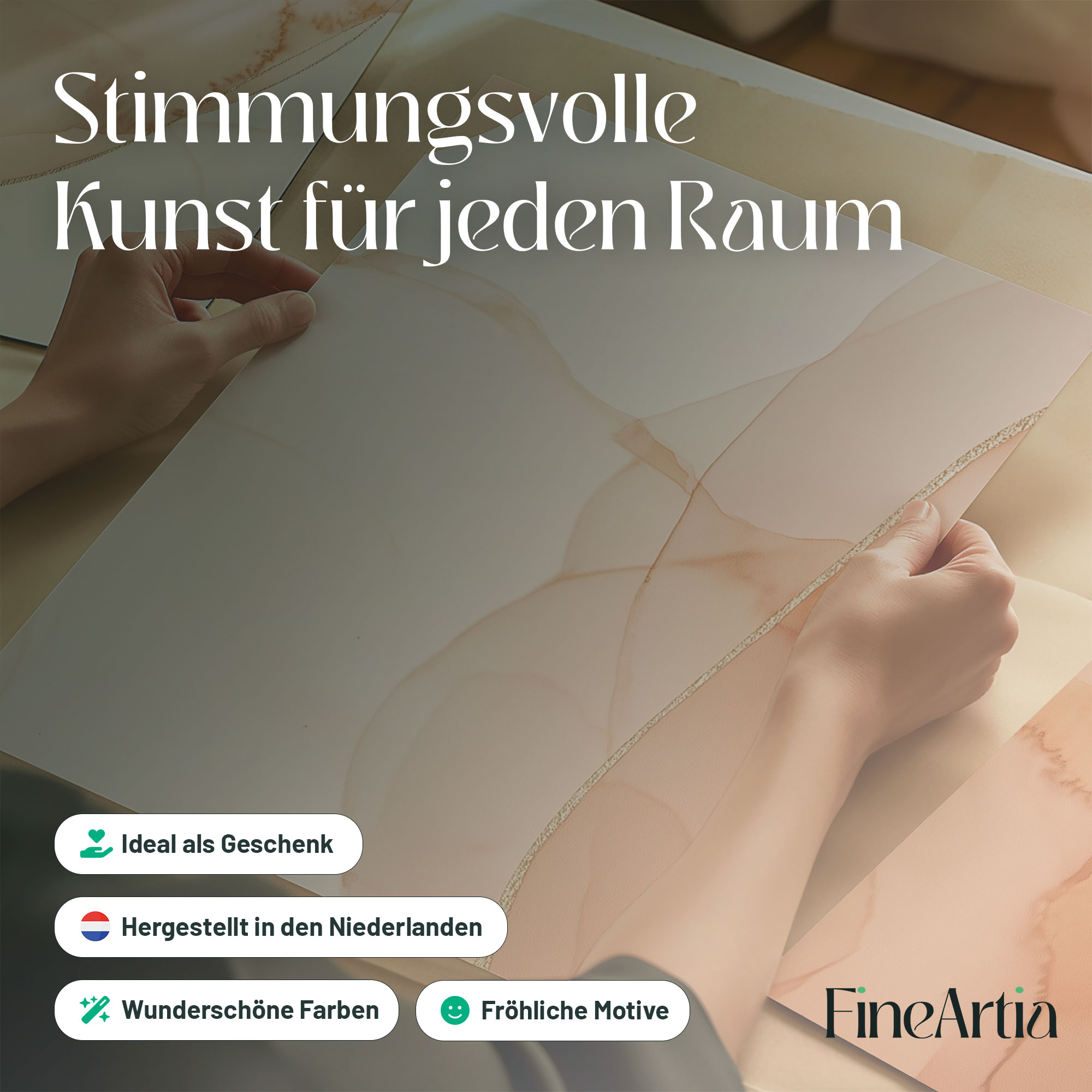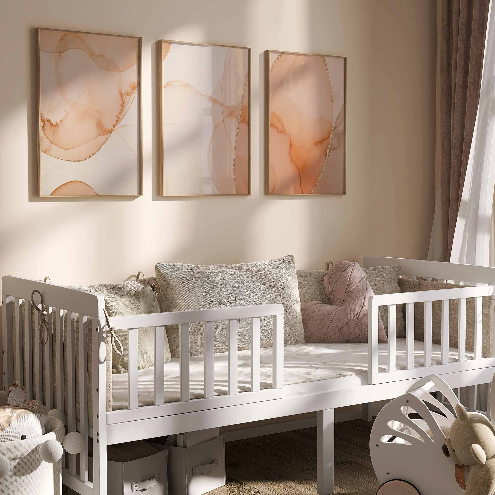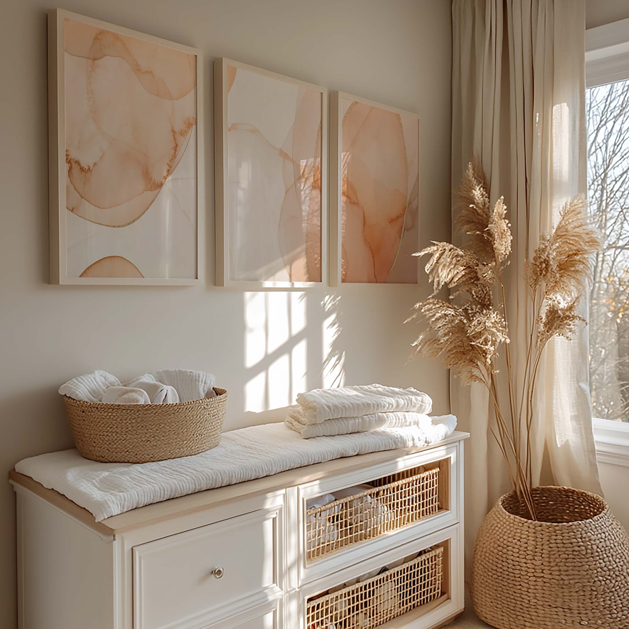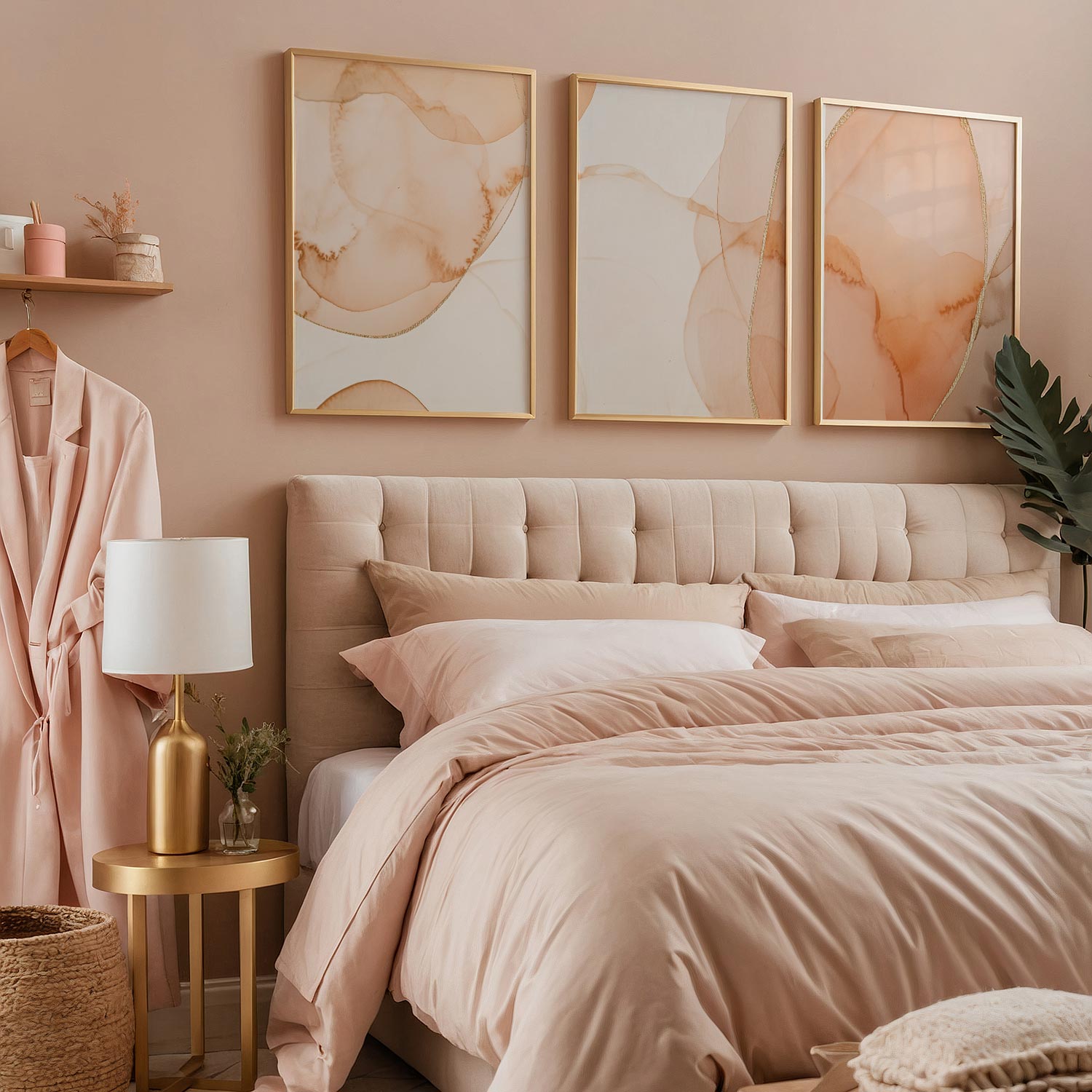 Peach & Gold Abstracte Waterverf Wanddecoratie – Speels en Stijlvol