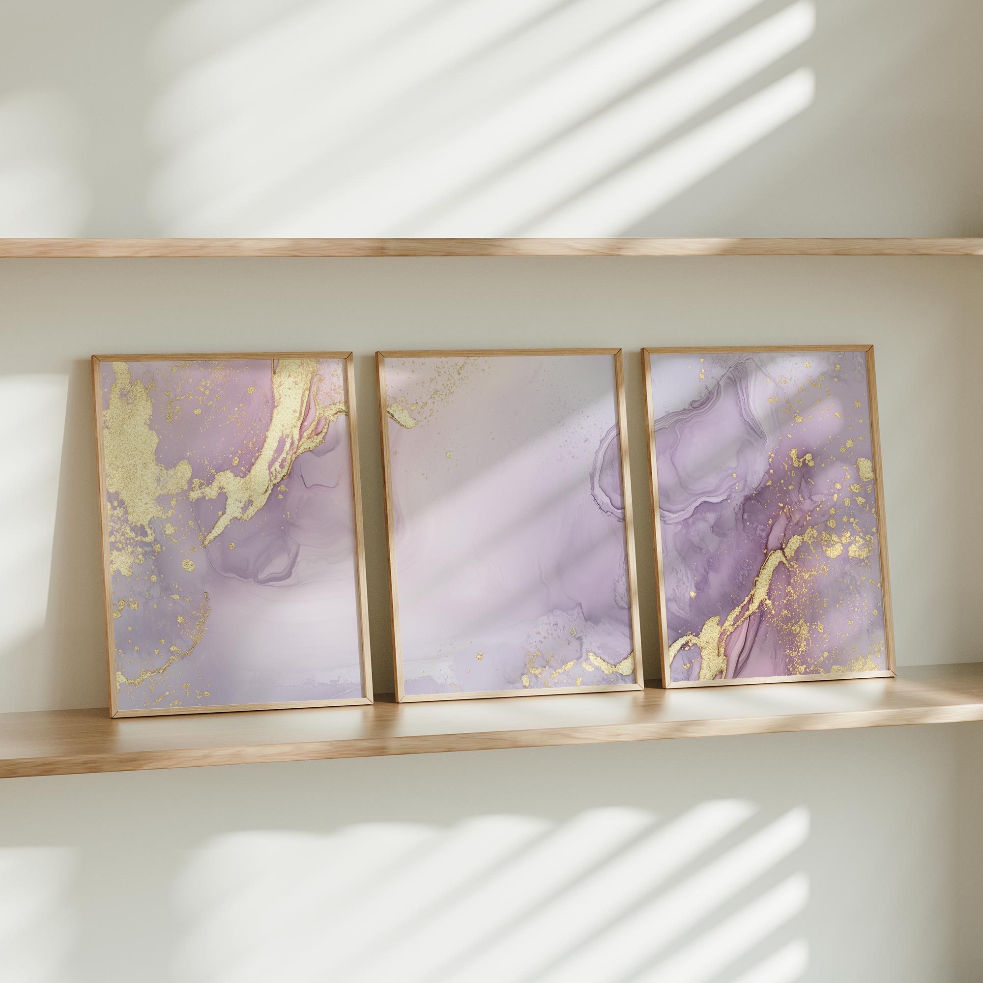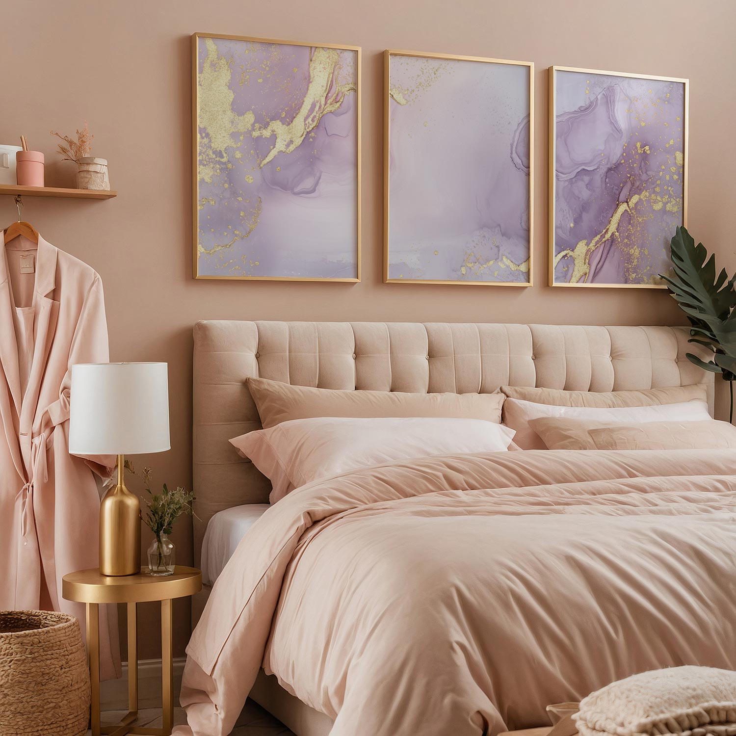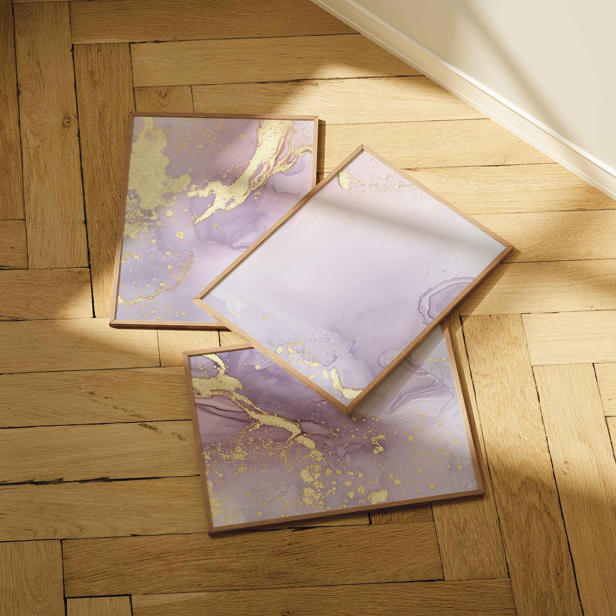 Purperen Pracht met Gouden Glans – Stijlvolle Abstracte Wanddecoratie