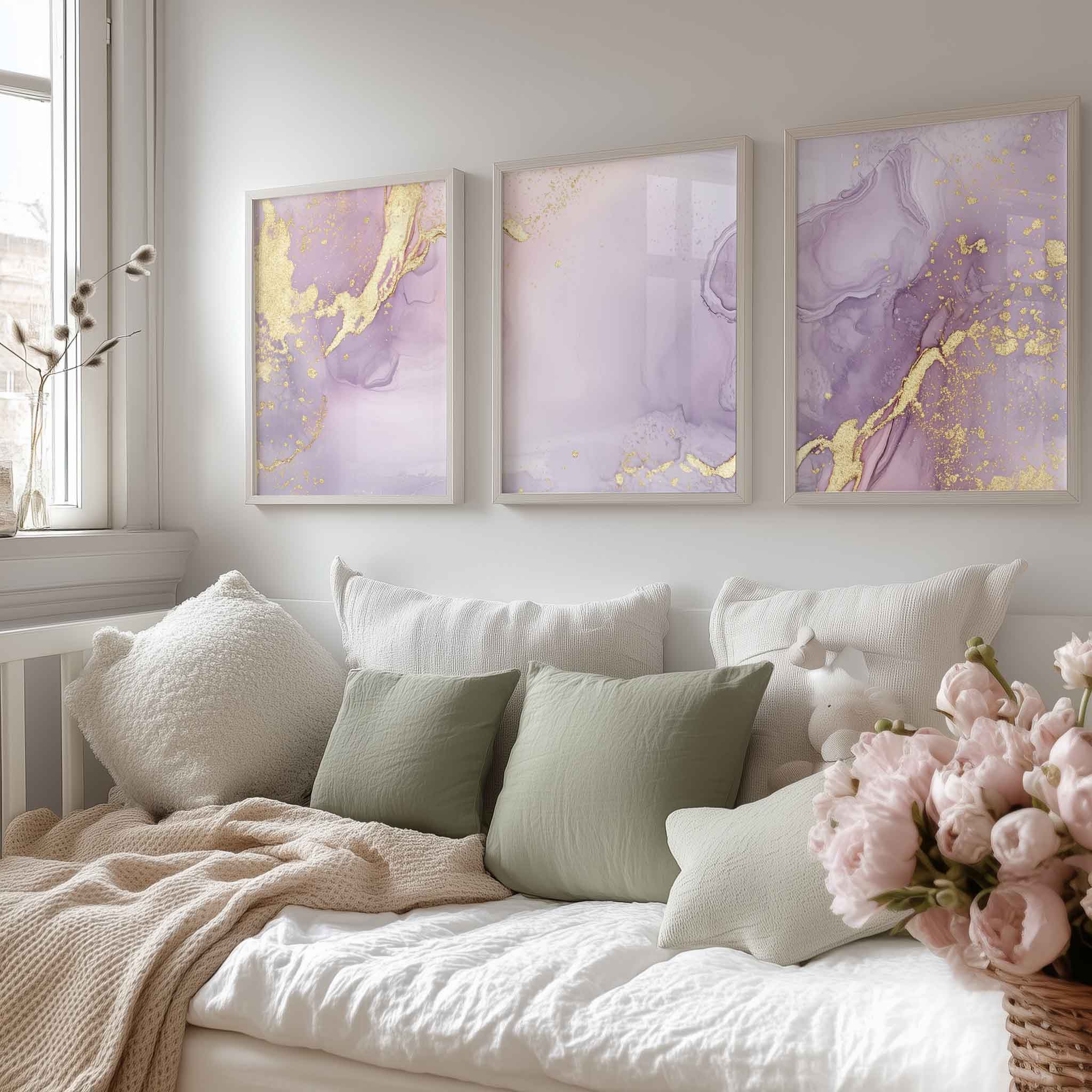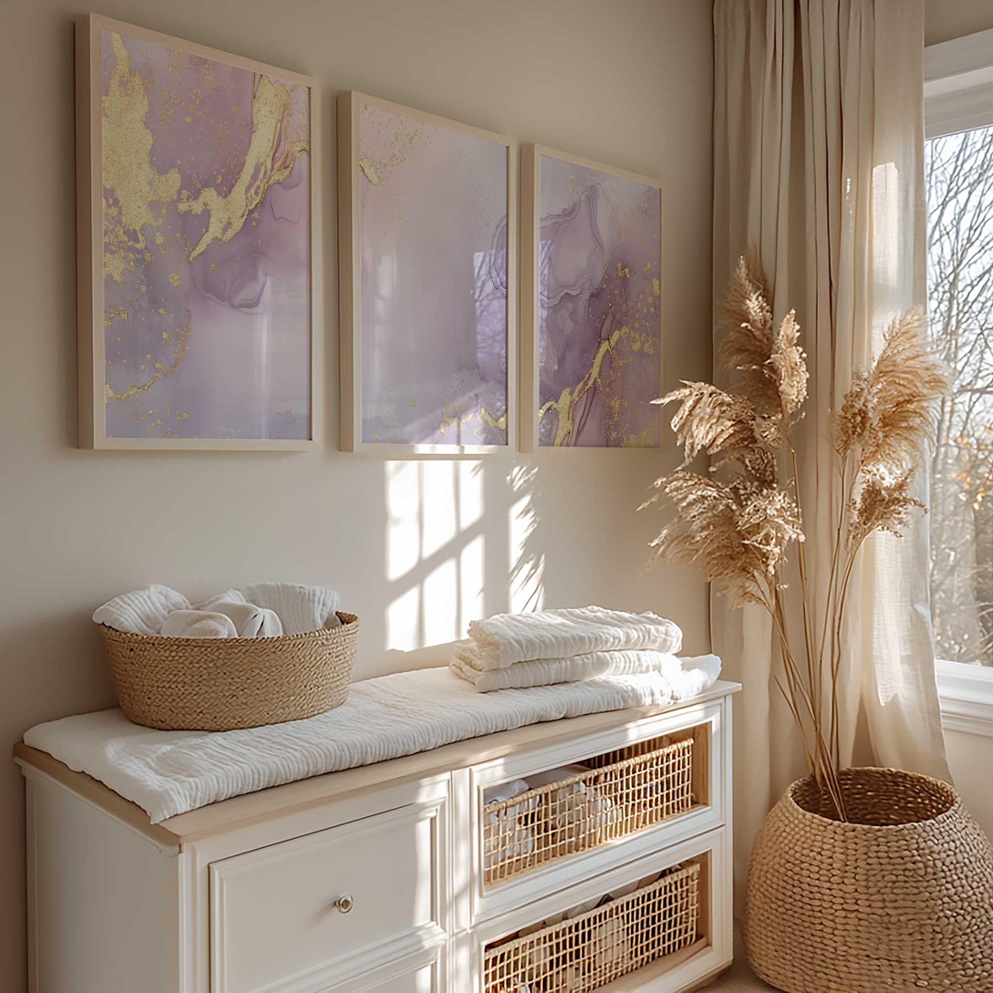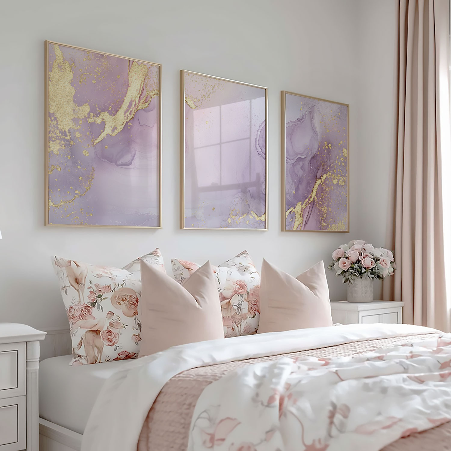 Purperen Pracht met Gouden Glans – Stijlvolle Abstracte Wanddecoratie