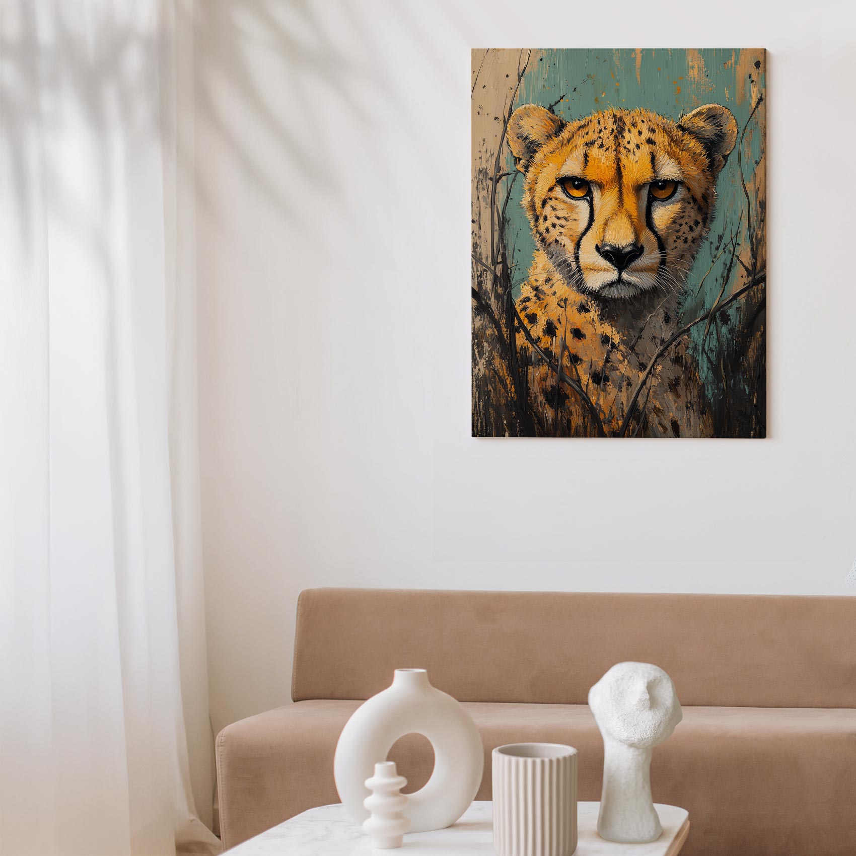 Terug naar collectie Canvas Realistische cheetah close-up portret