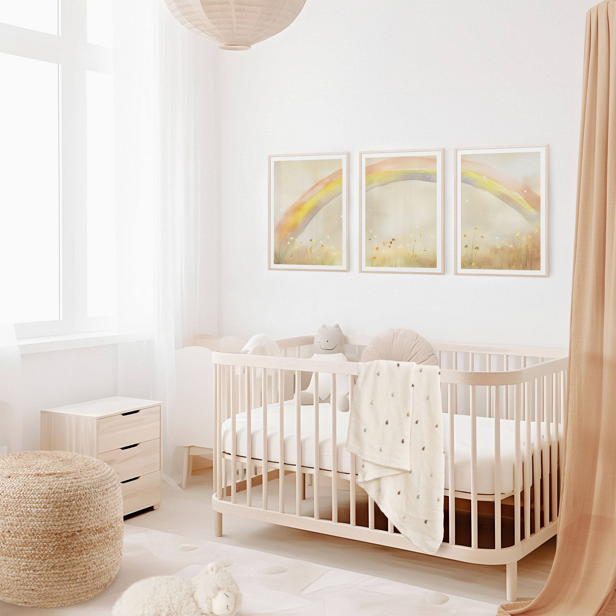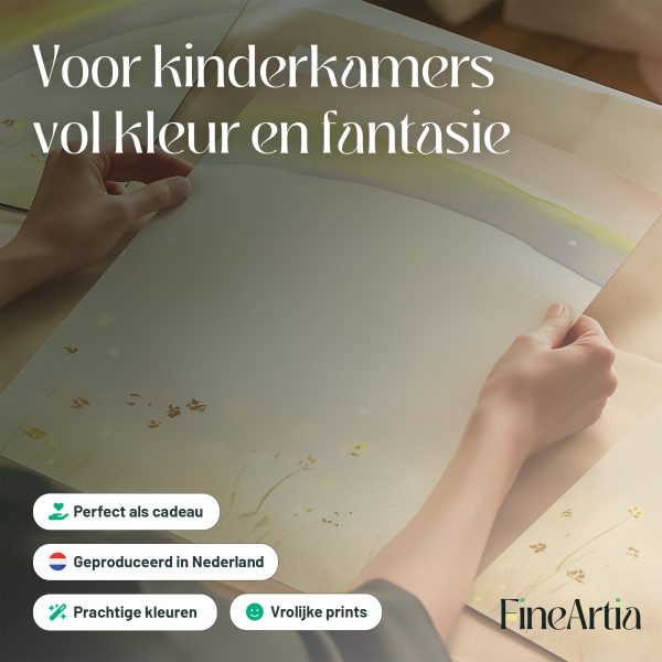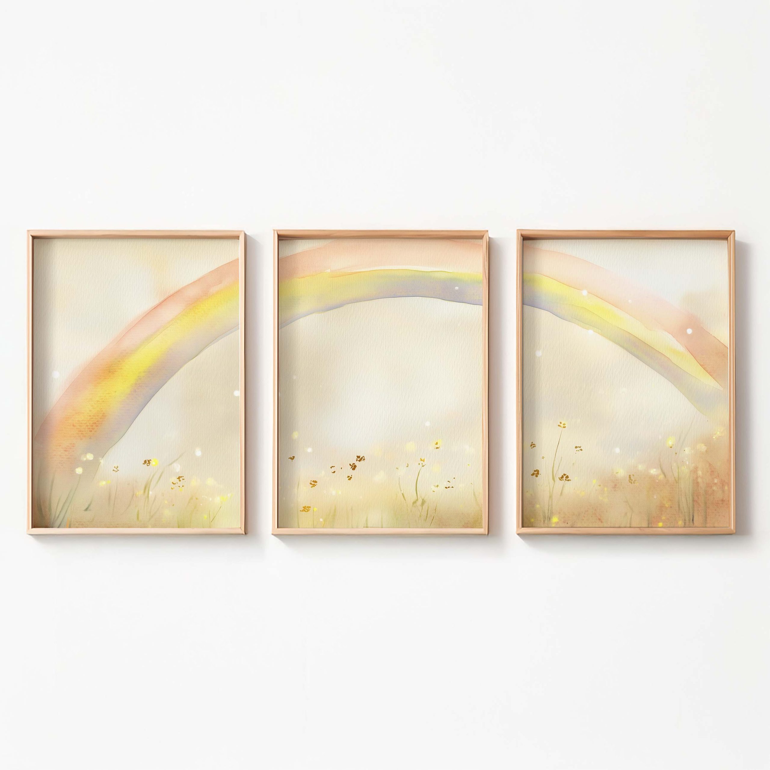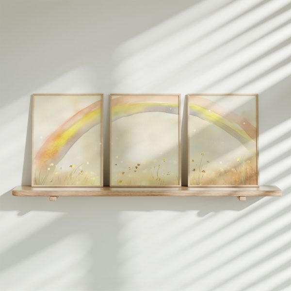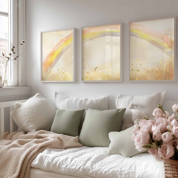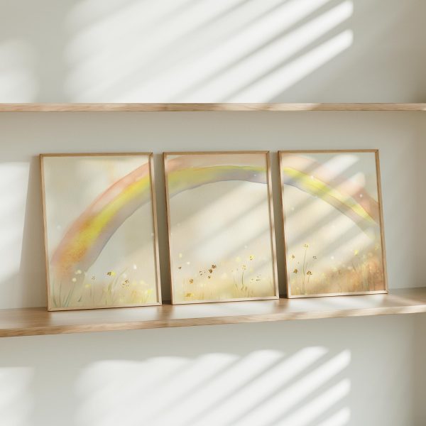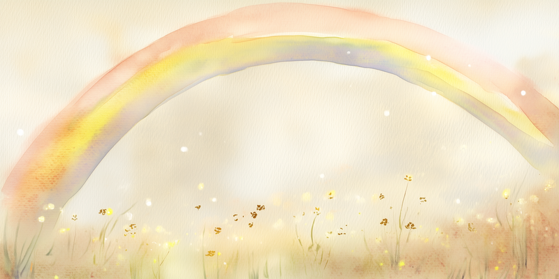 Regenboogdroom boven bloemenveld – Vrolijke waterverfdecoratie