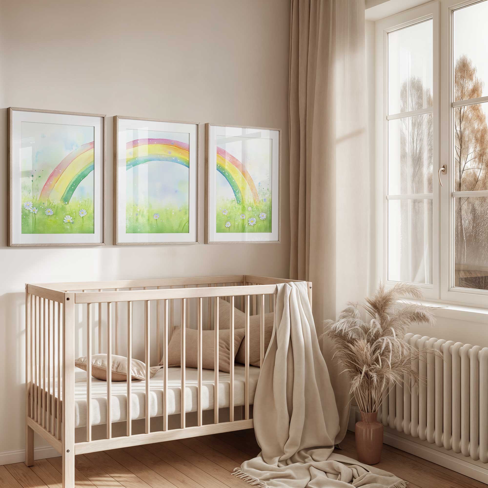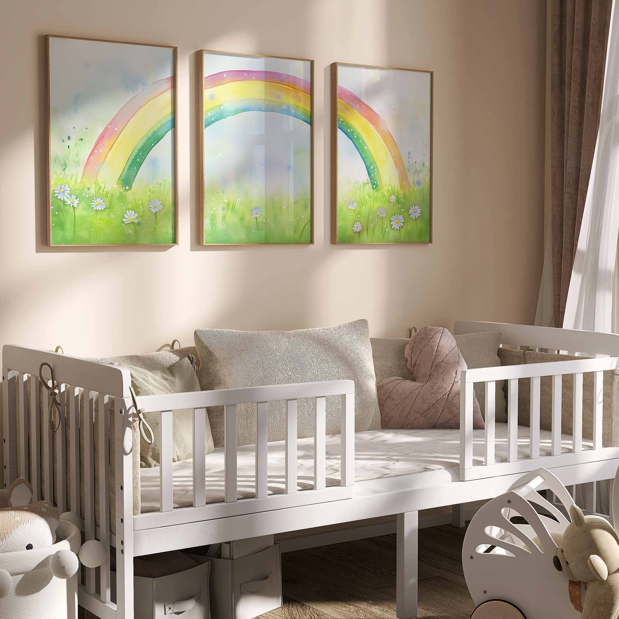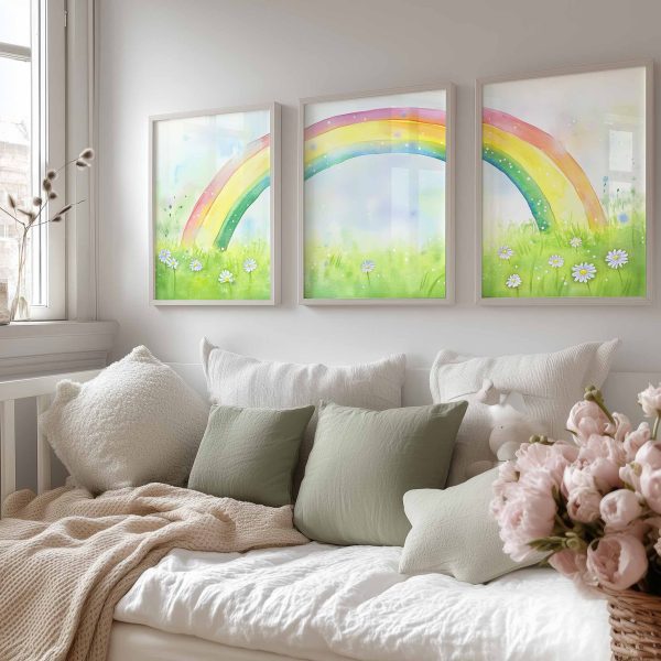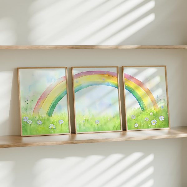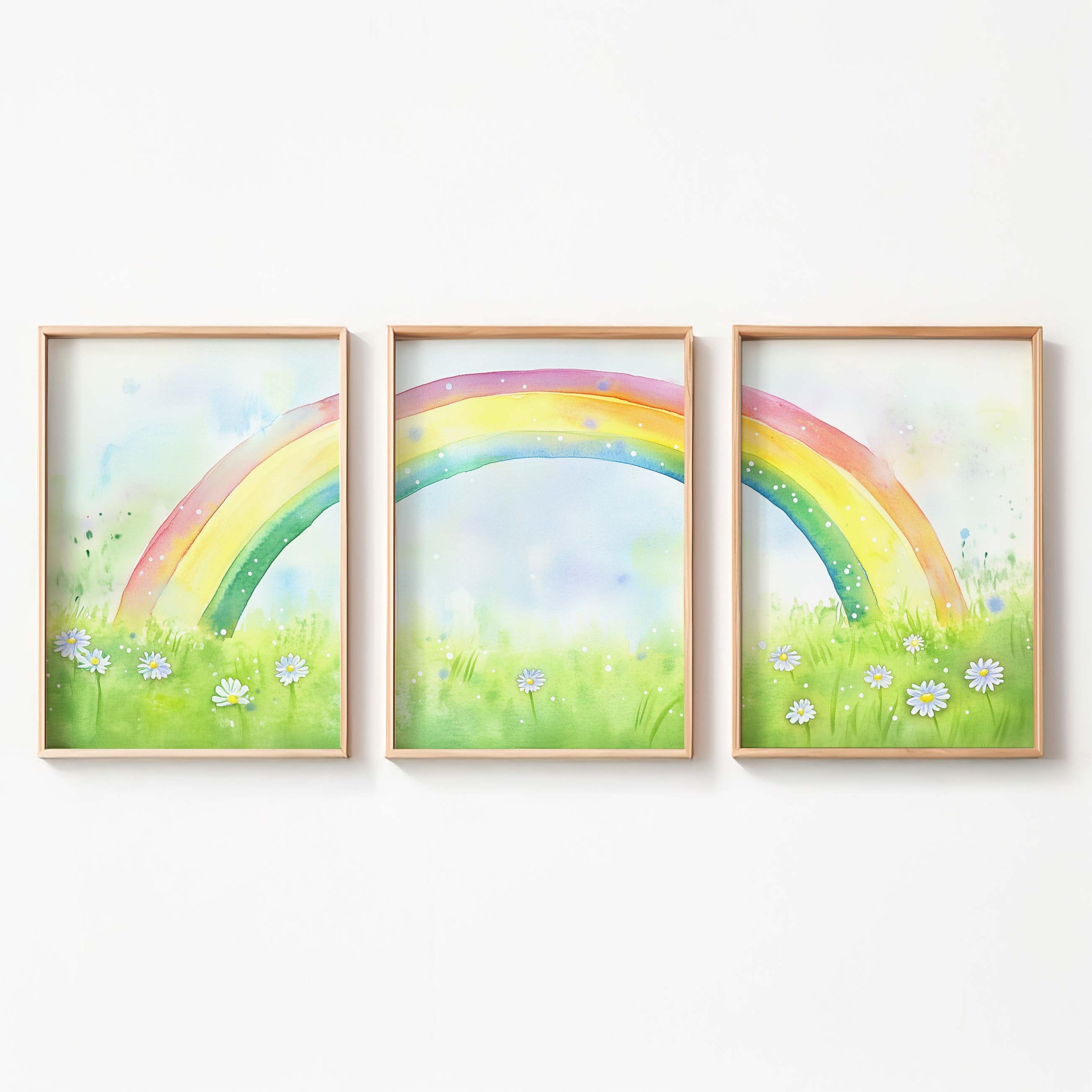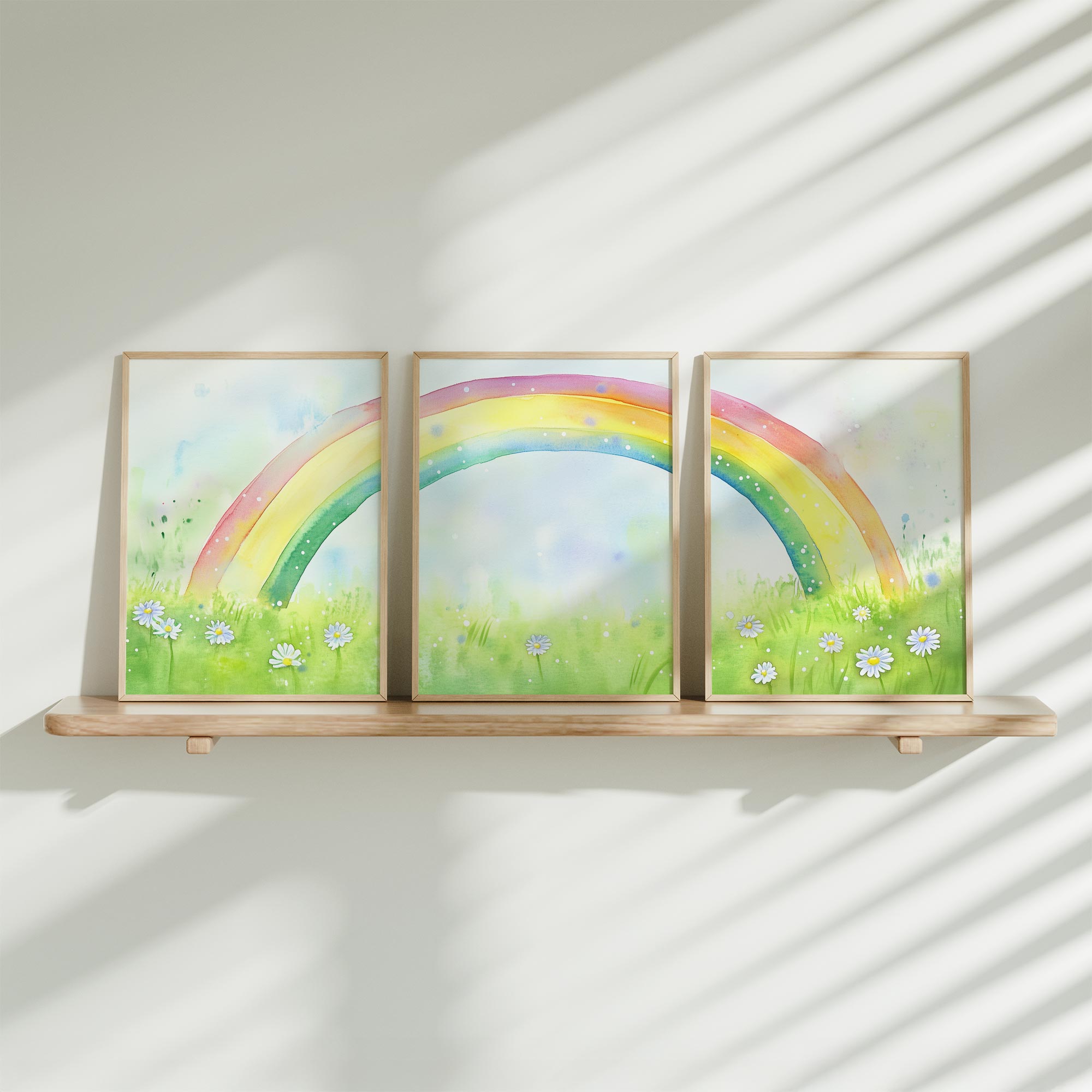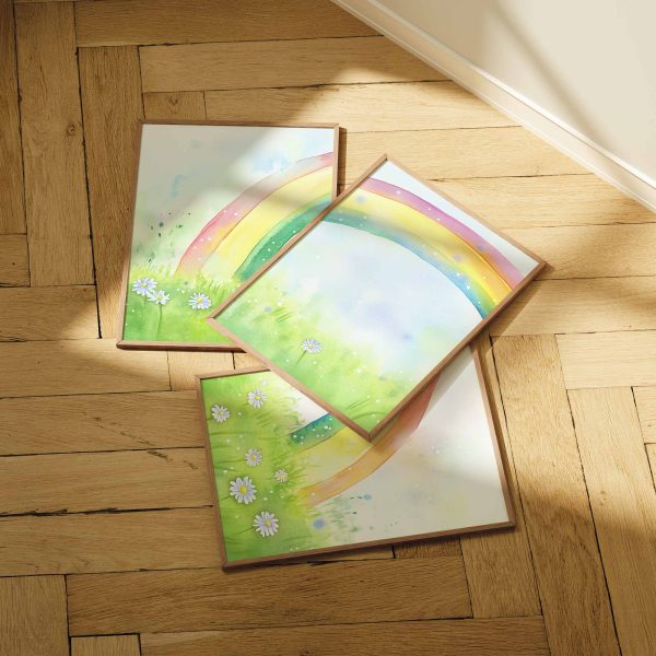 Regenboogvreugde: Vrolijk waterverfveld met madeliefjes