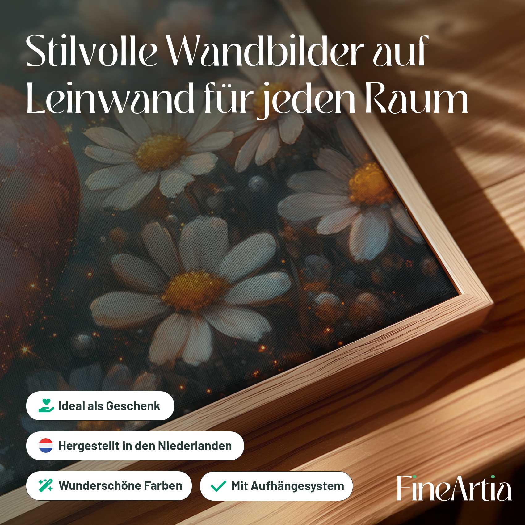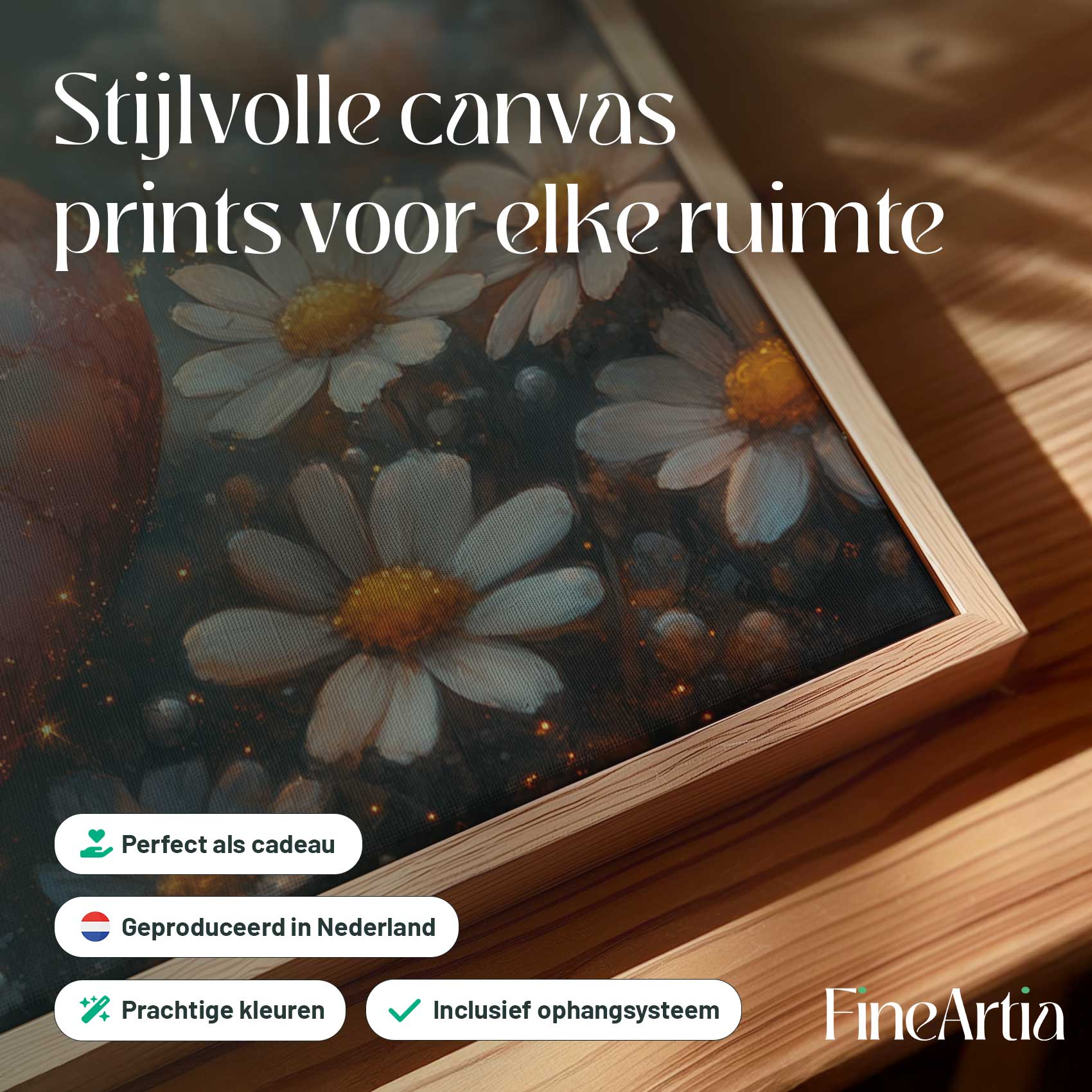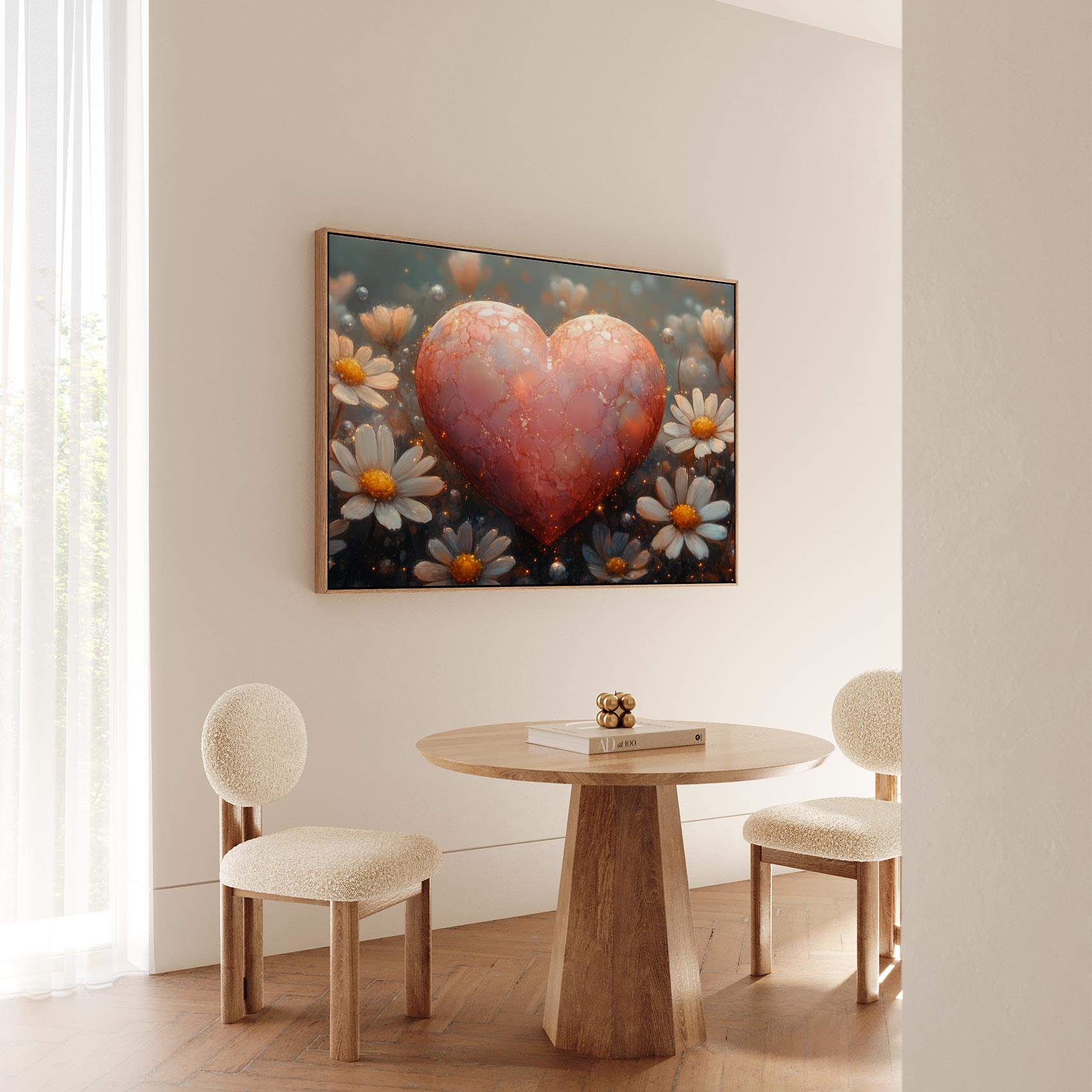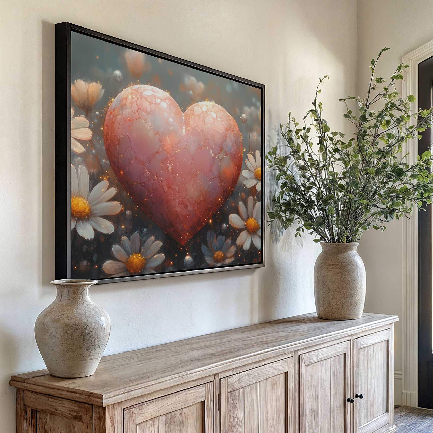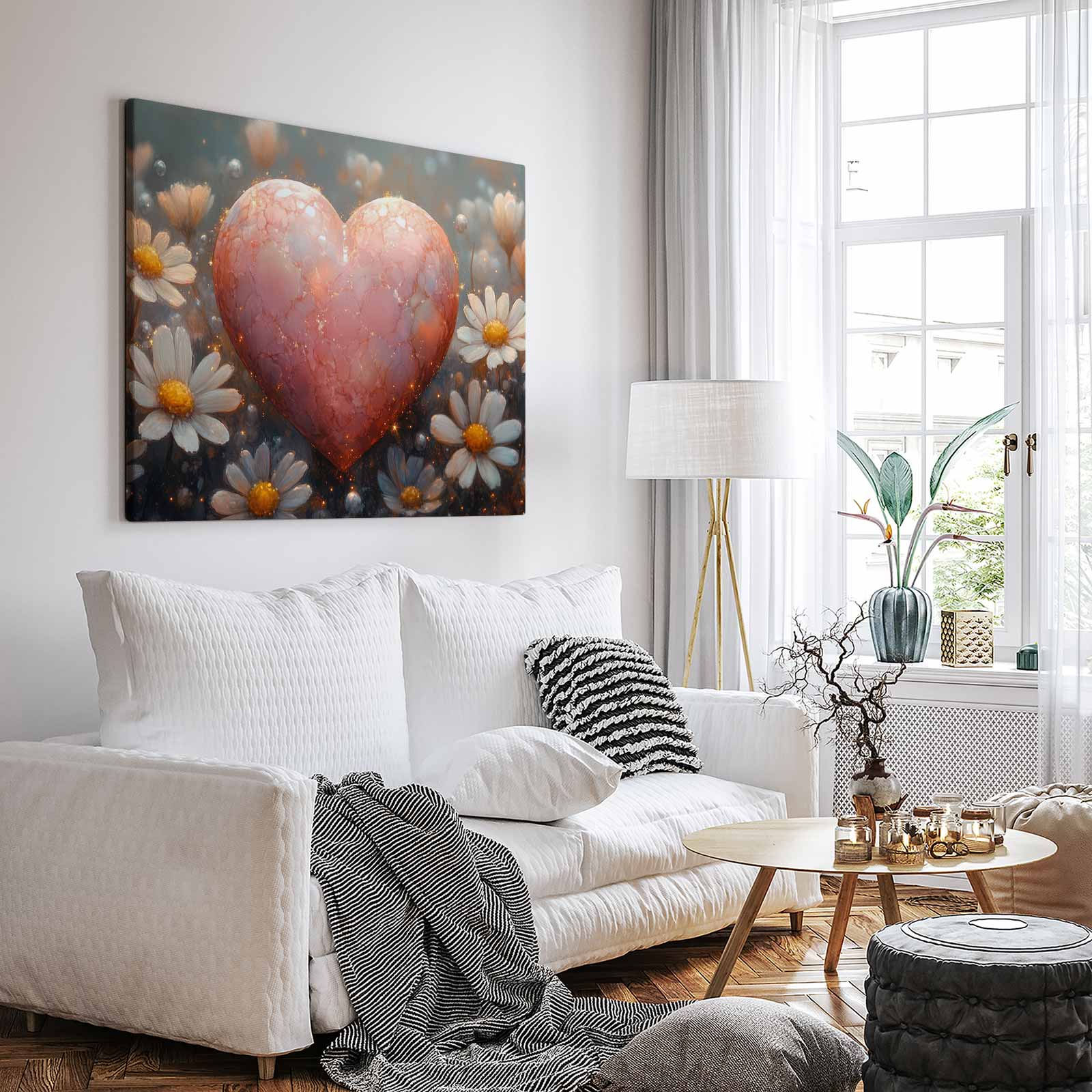 Terug naar collectie Canvas Rode hart tussen witte bloemen
