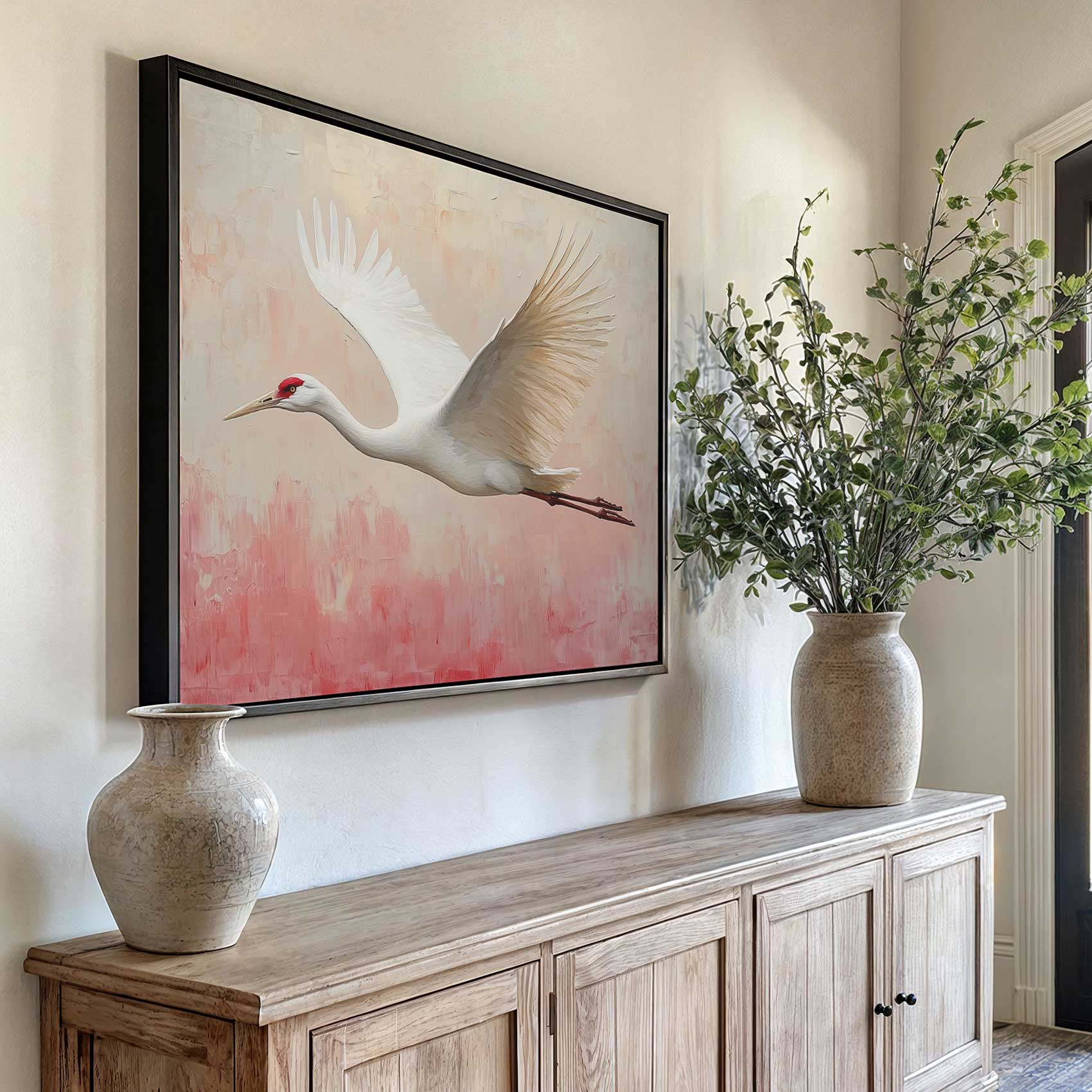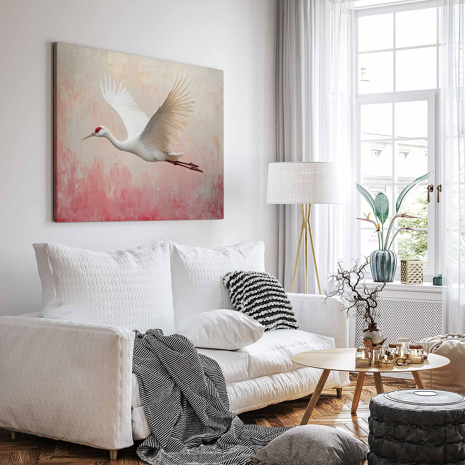 Terug naar collectie Canvas Rode kraanvogel in vlucht