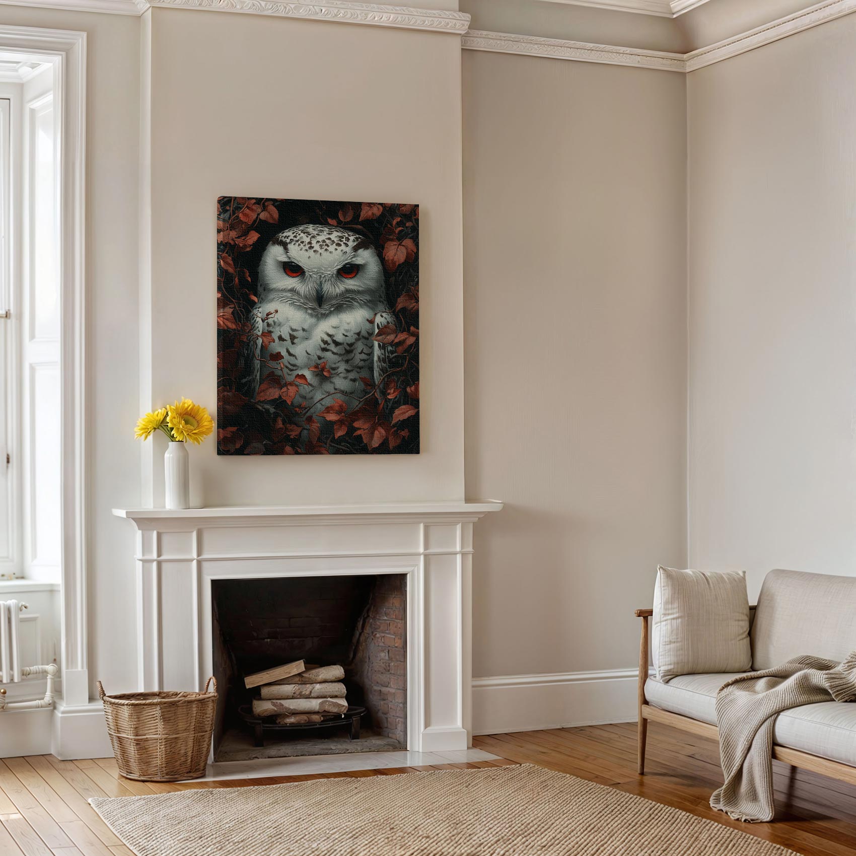 Rode uil in herfstbos