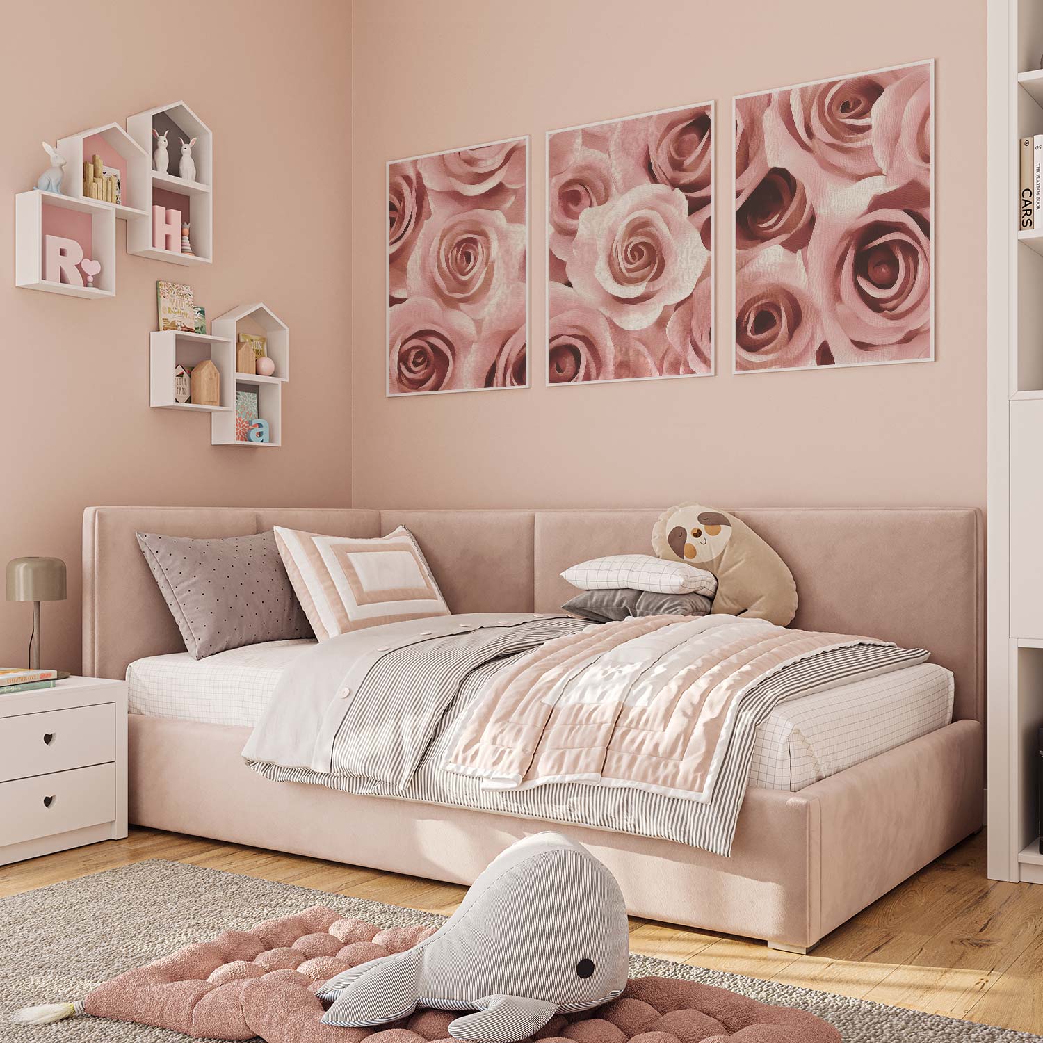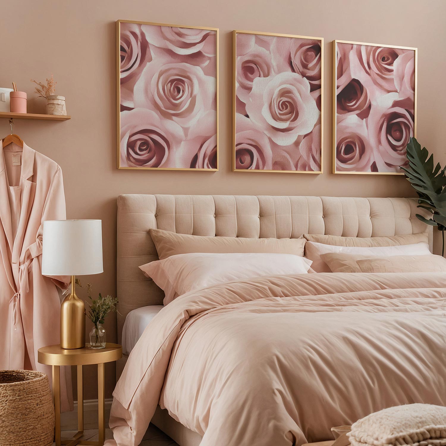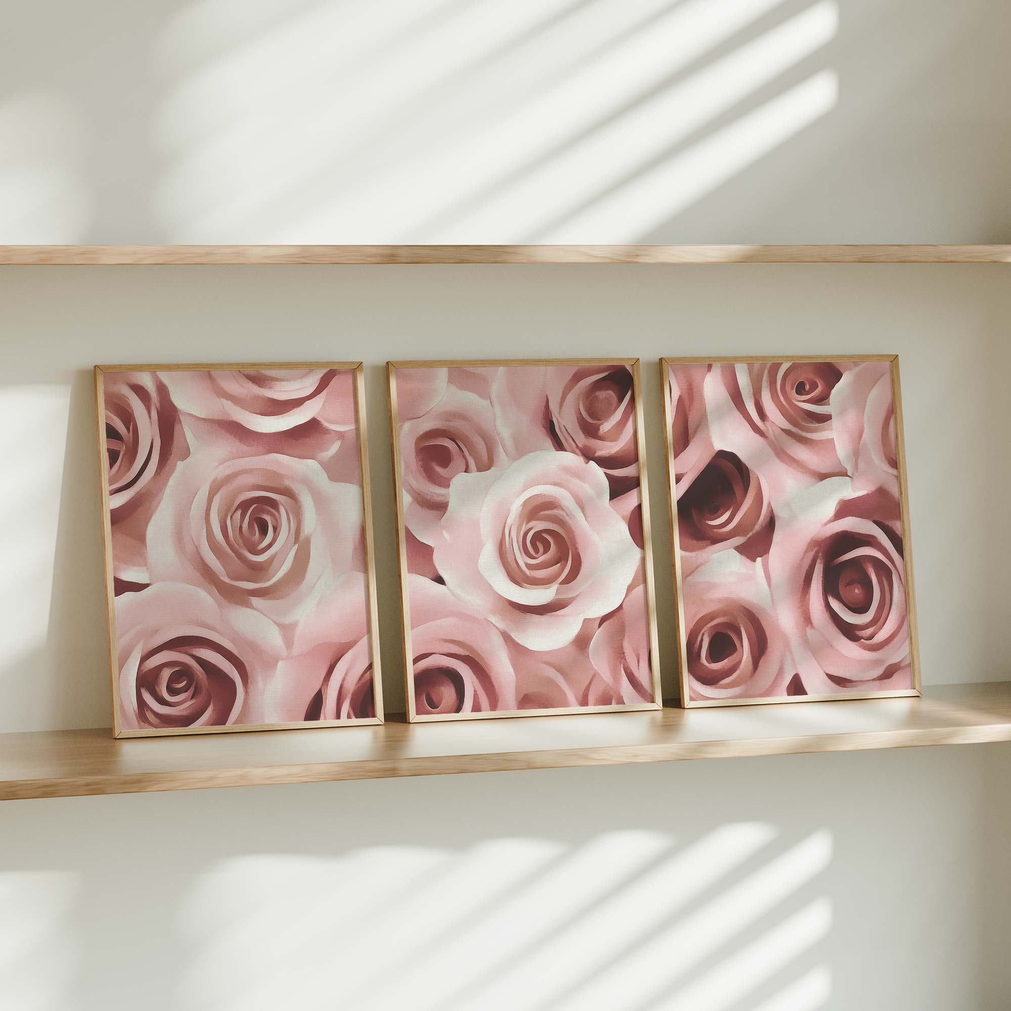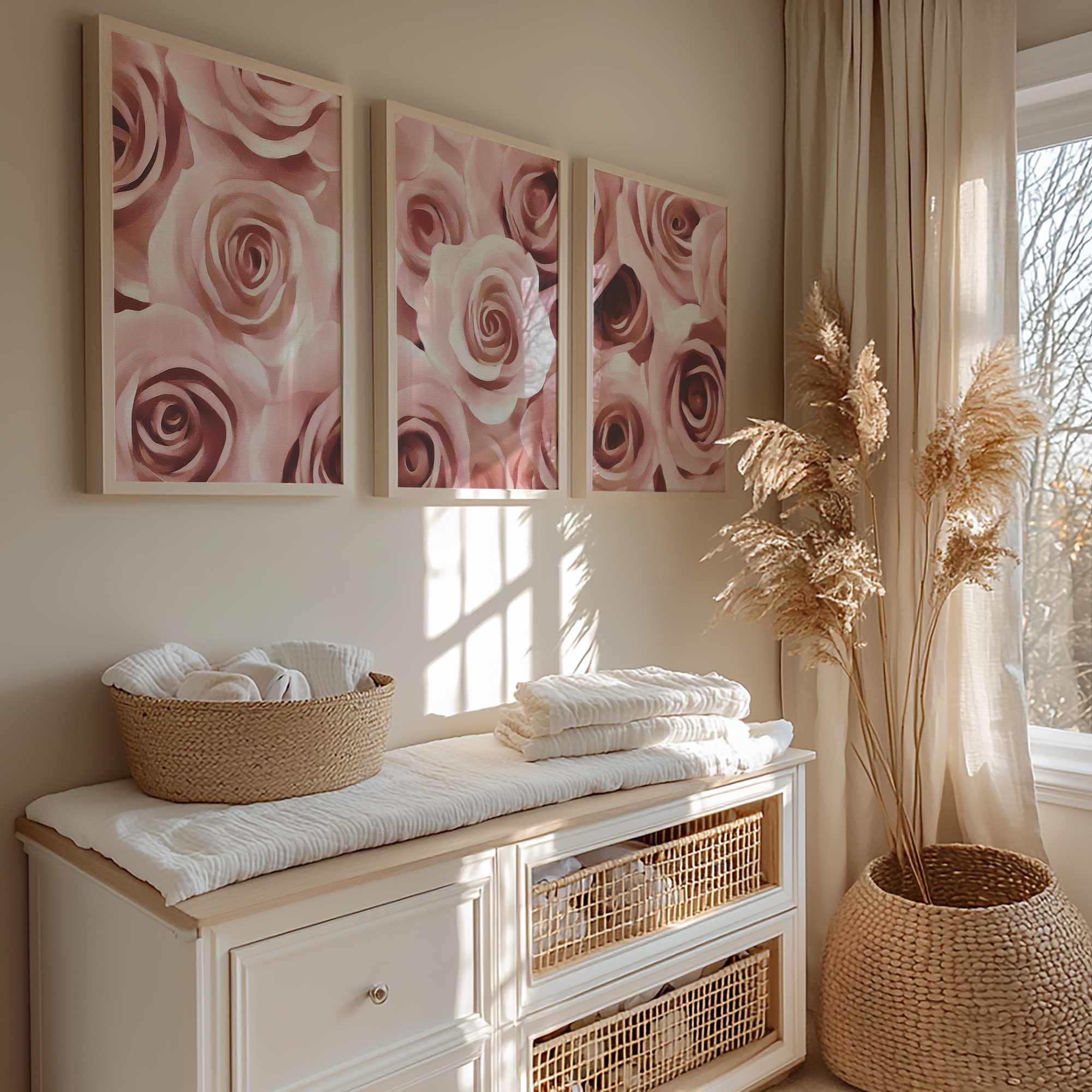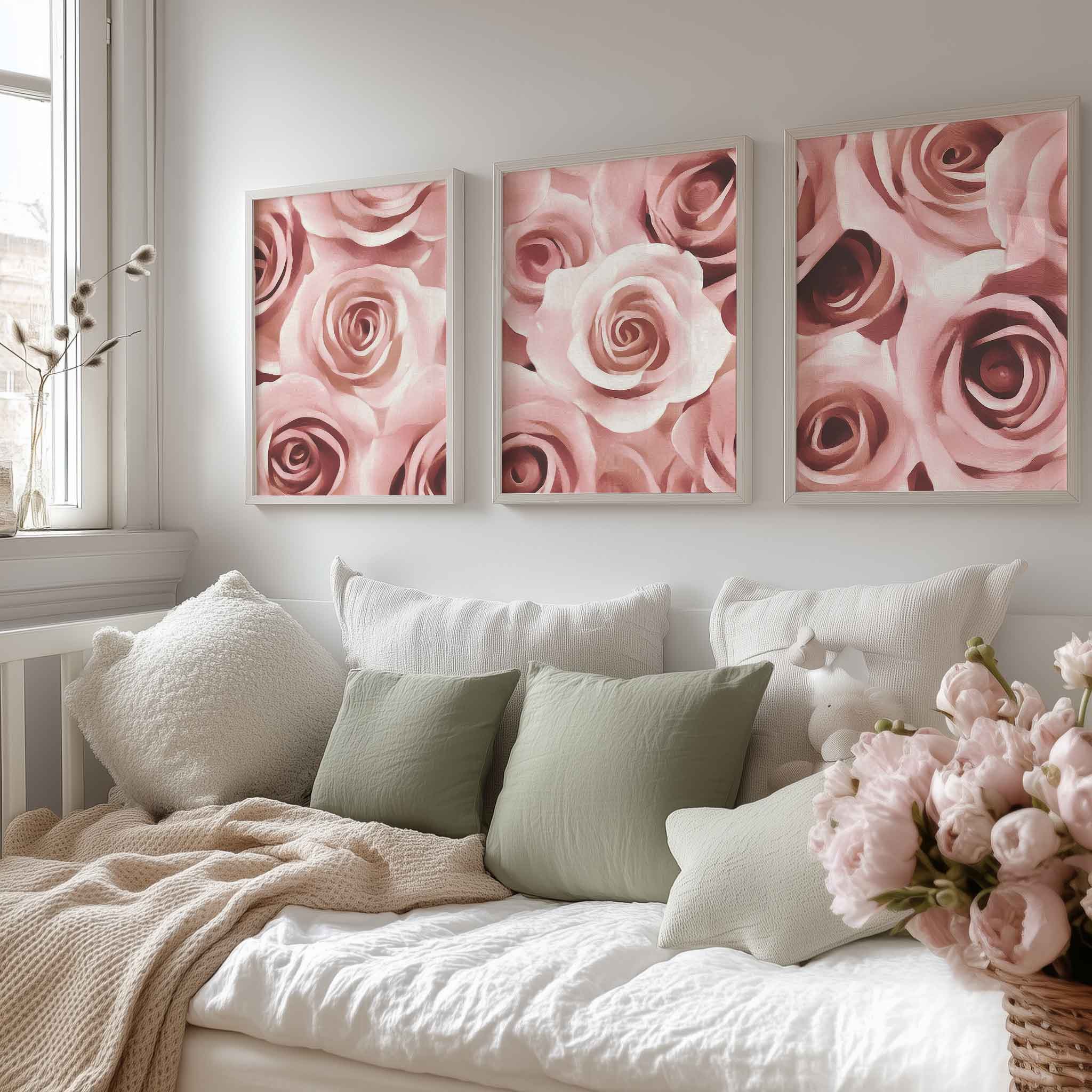 Romantisch Rozenarrangement – Elegante Wanddecoratie in Zacht Roze