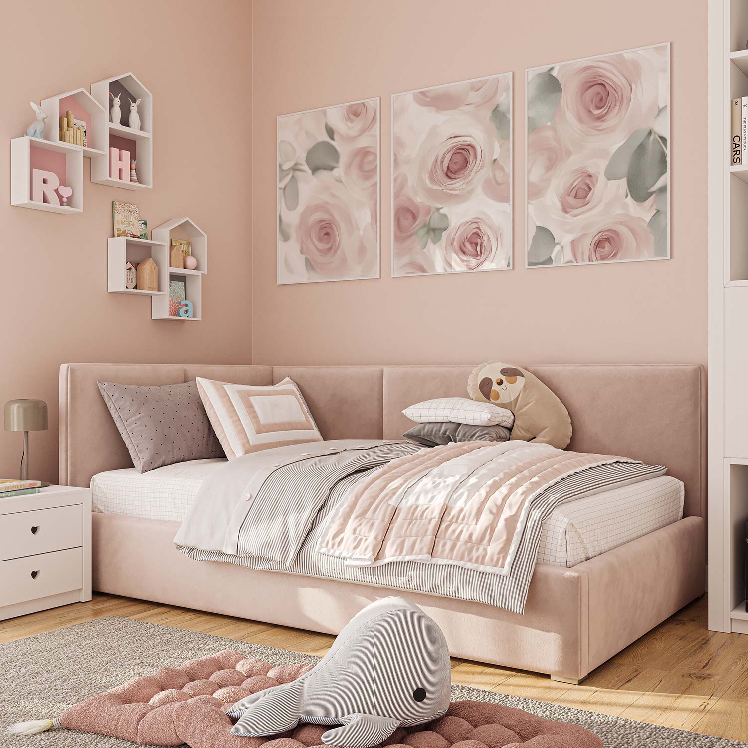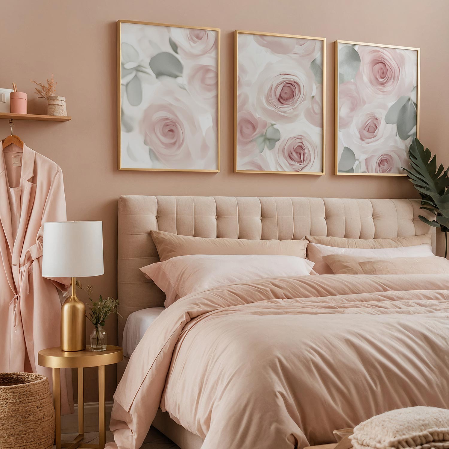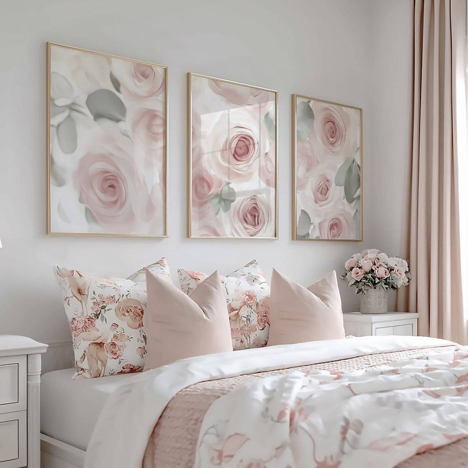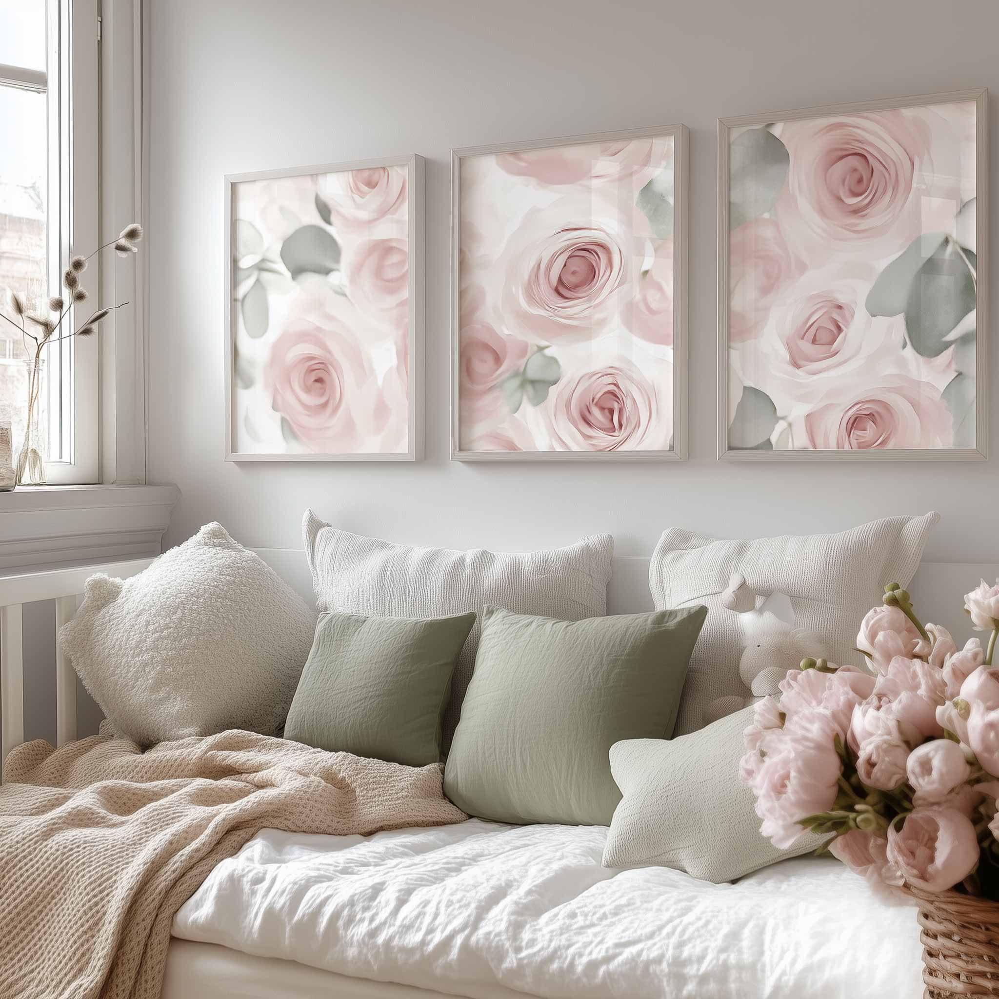 Romantische Rozen: Delicaat Roze en Groen Wanddecor