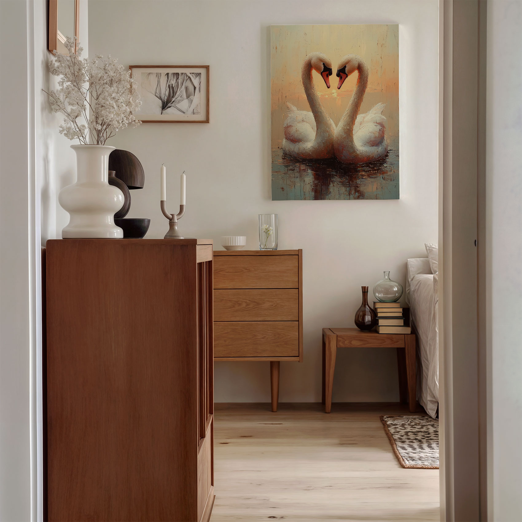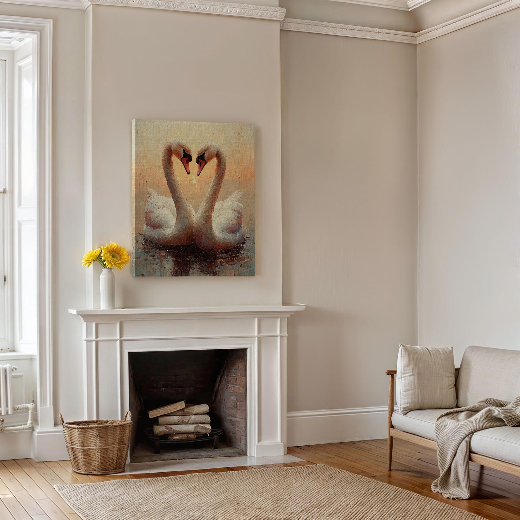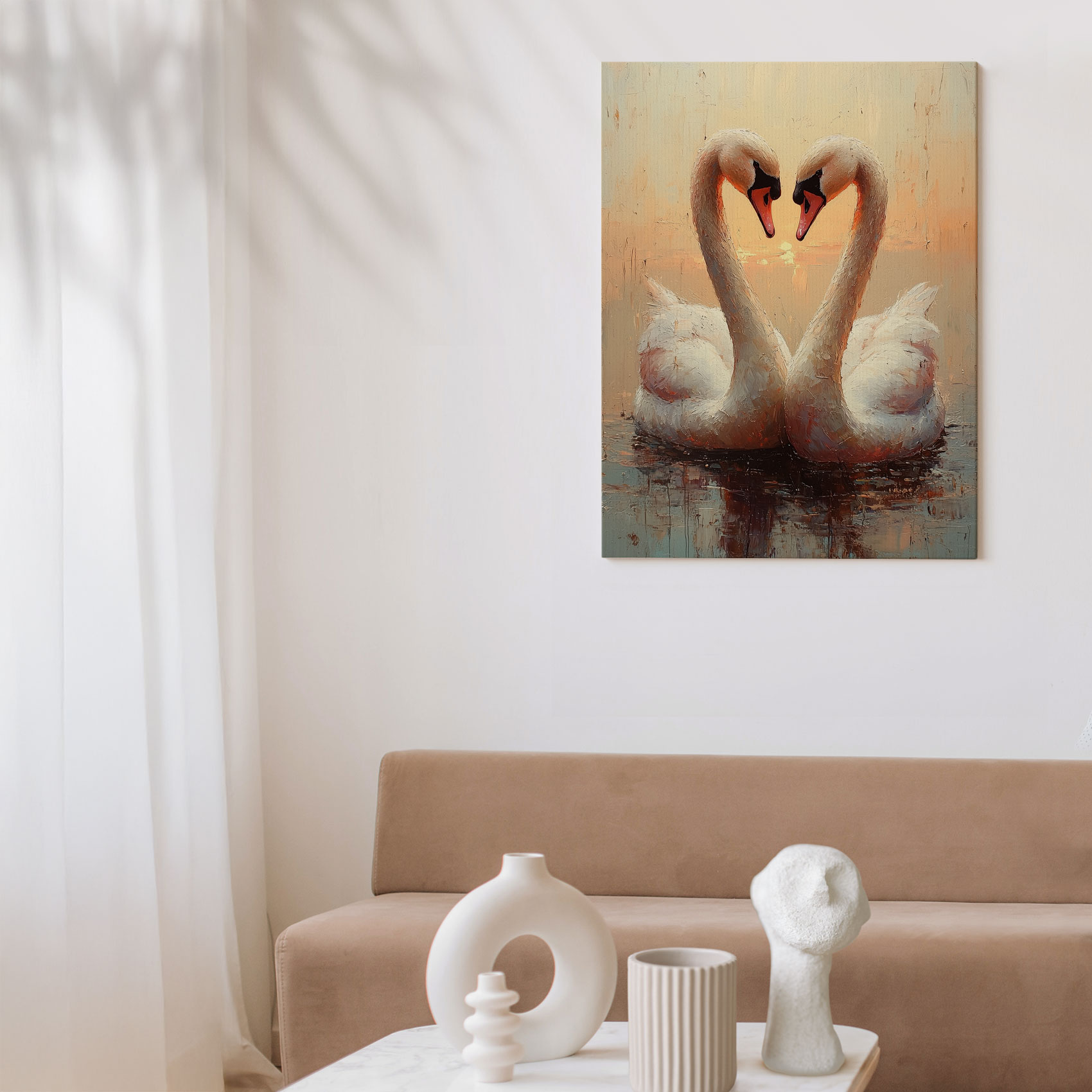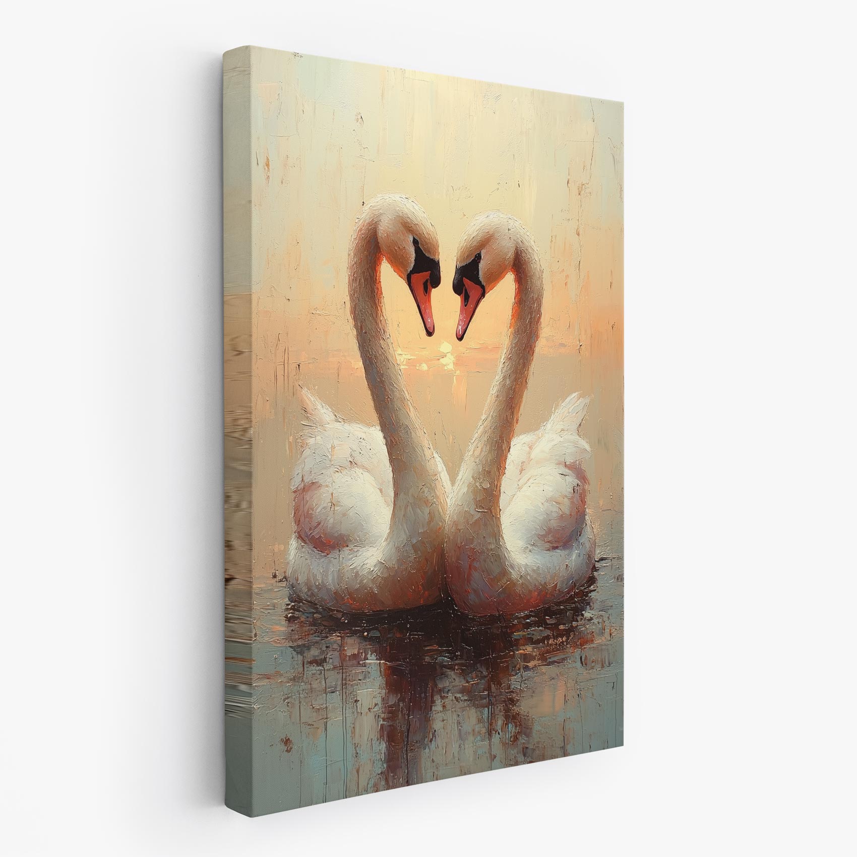 Terug naar collectie Canvas Romantische zwanen in hartvorm