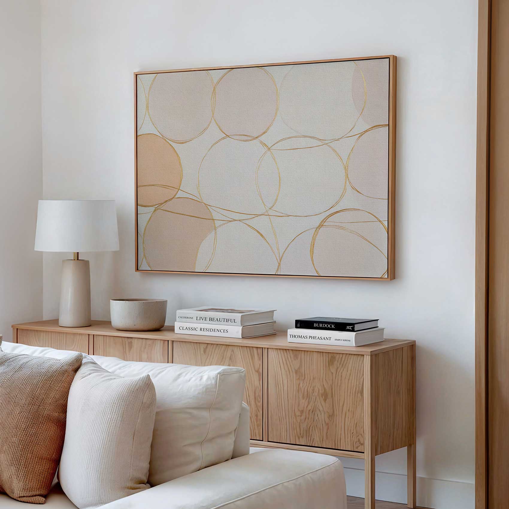 Terug naar collectie Canvas Roze-beige cirkelpatroon met goud