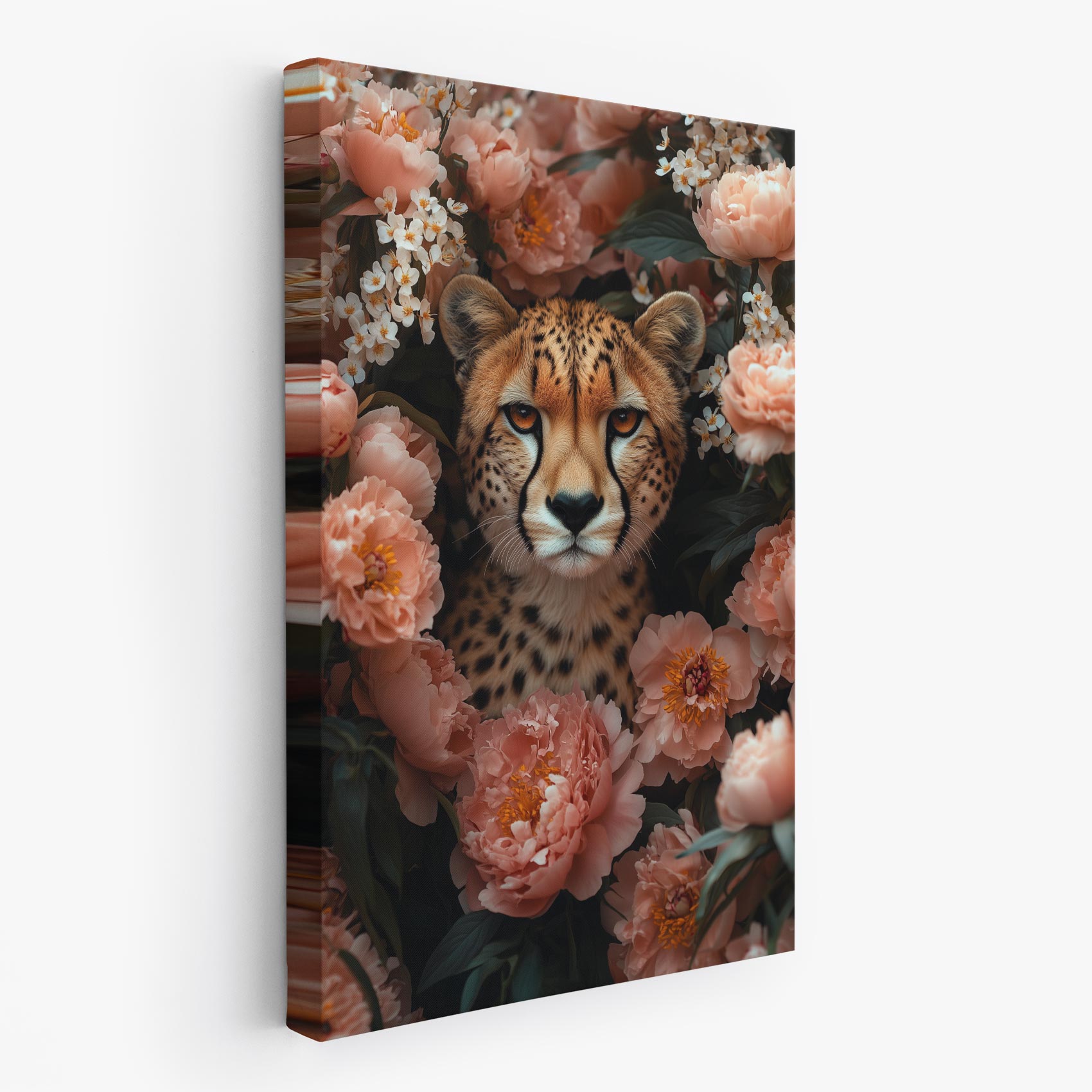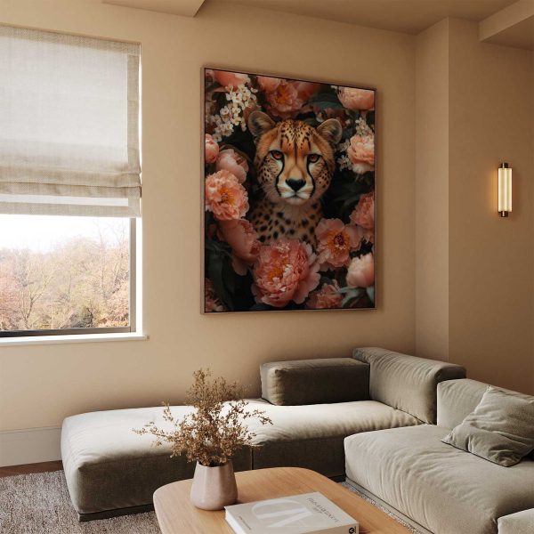 Terug naar collectie Canvas Roze bloemen met cheeta