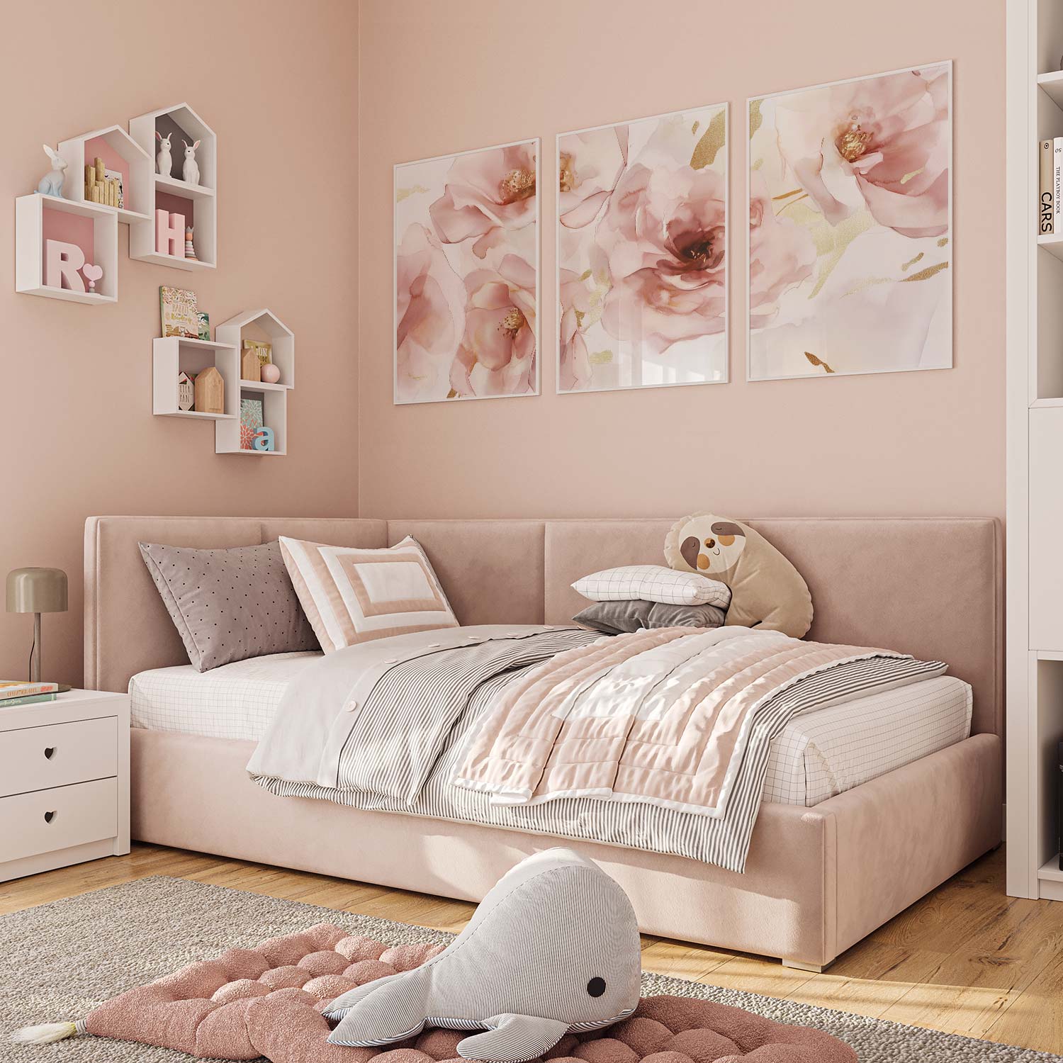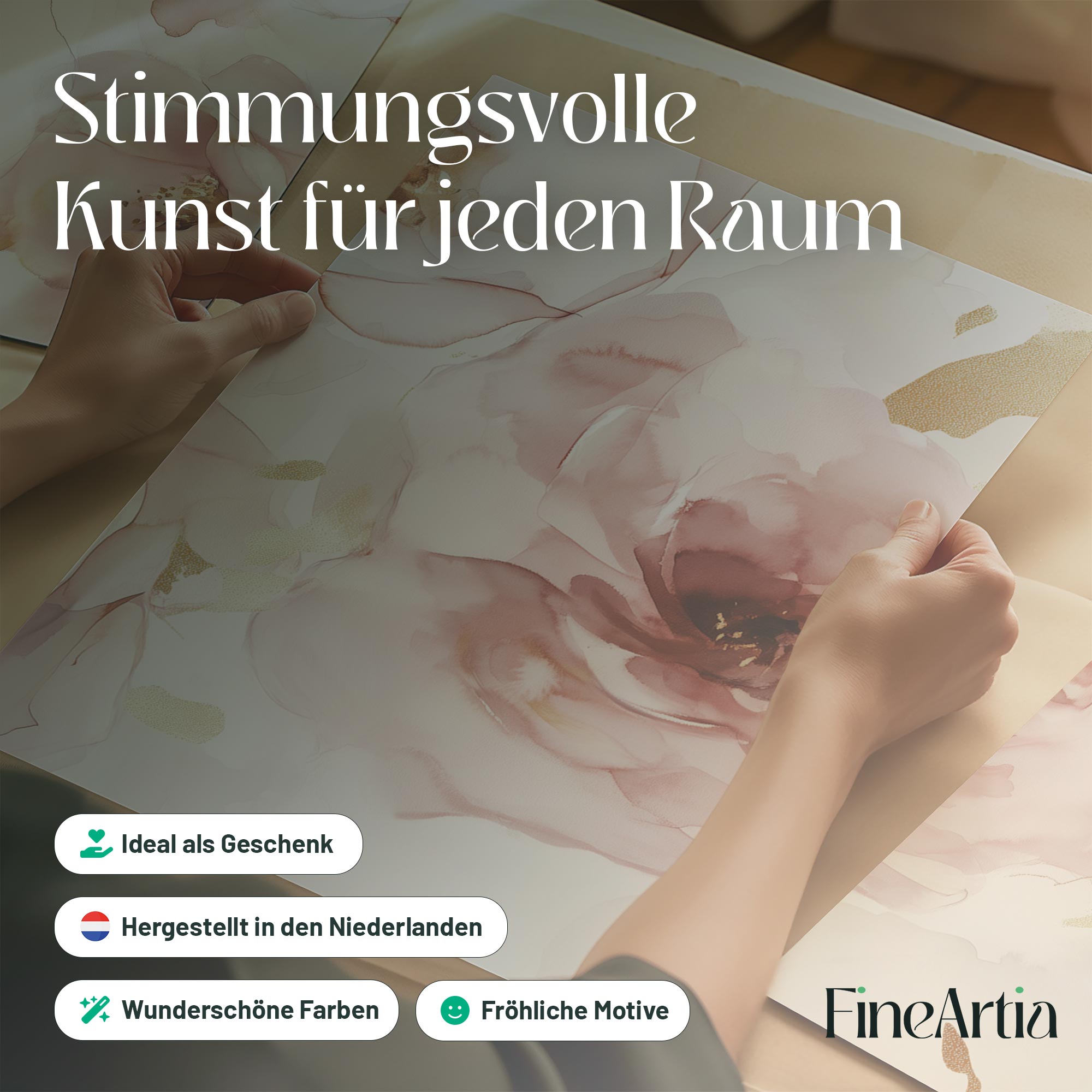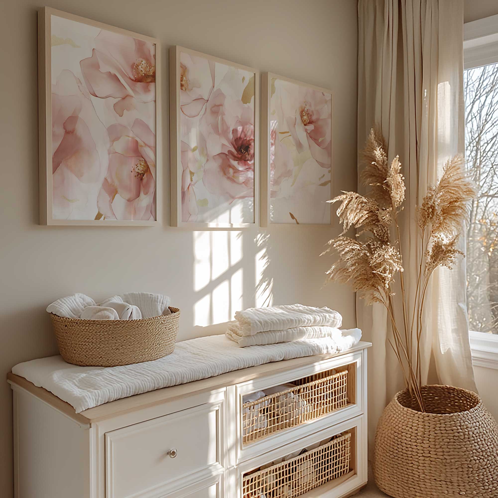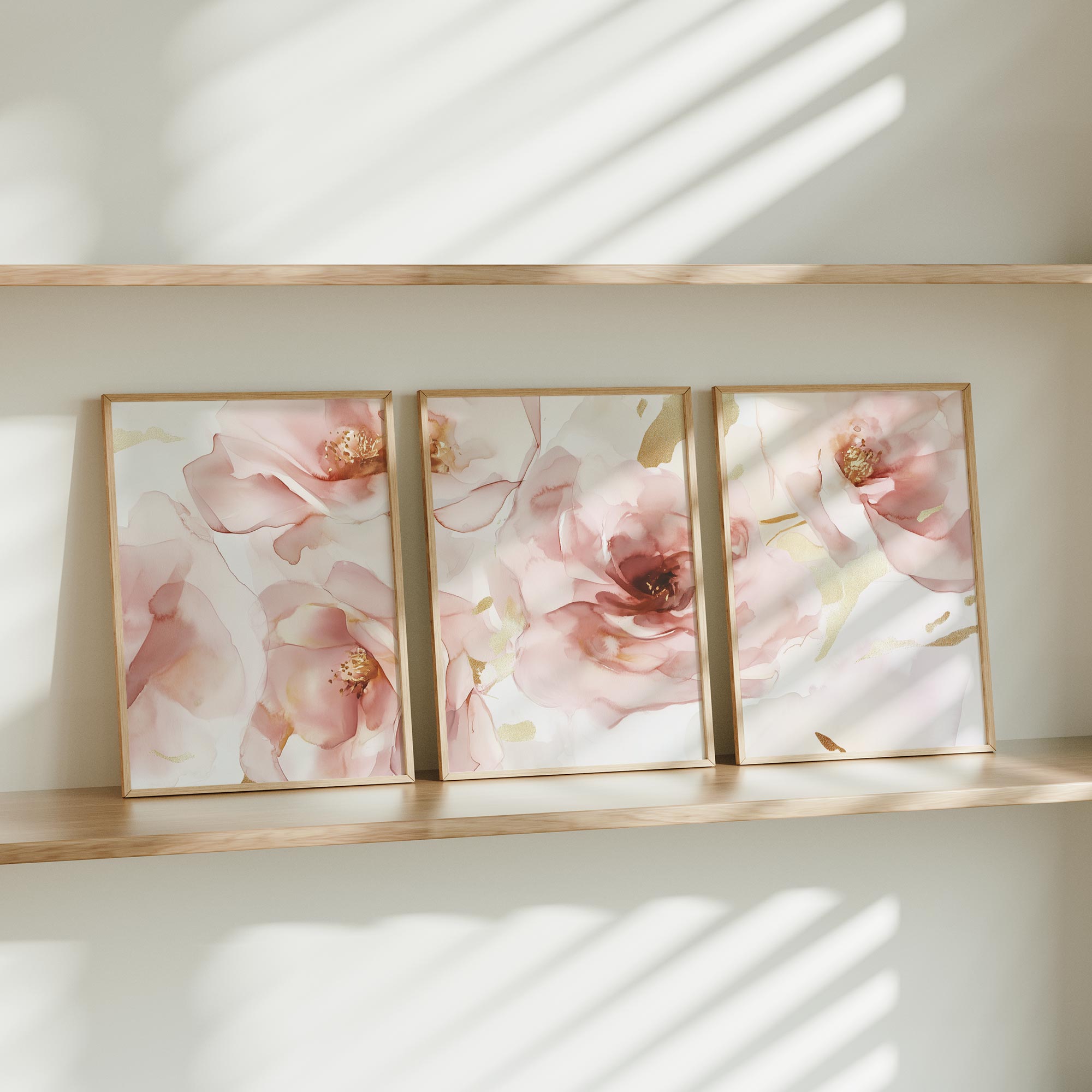 Roze Bloemen met Gouden Accenten – Stijlvolle Wanddecoratie