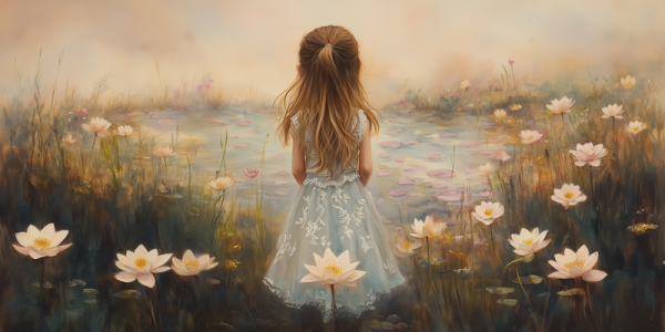 Terug naar collectie Posters Roze Dromen: Meisje bij Bloemenvijver