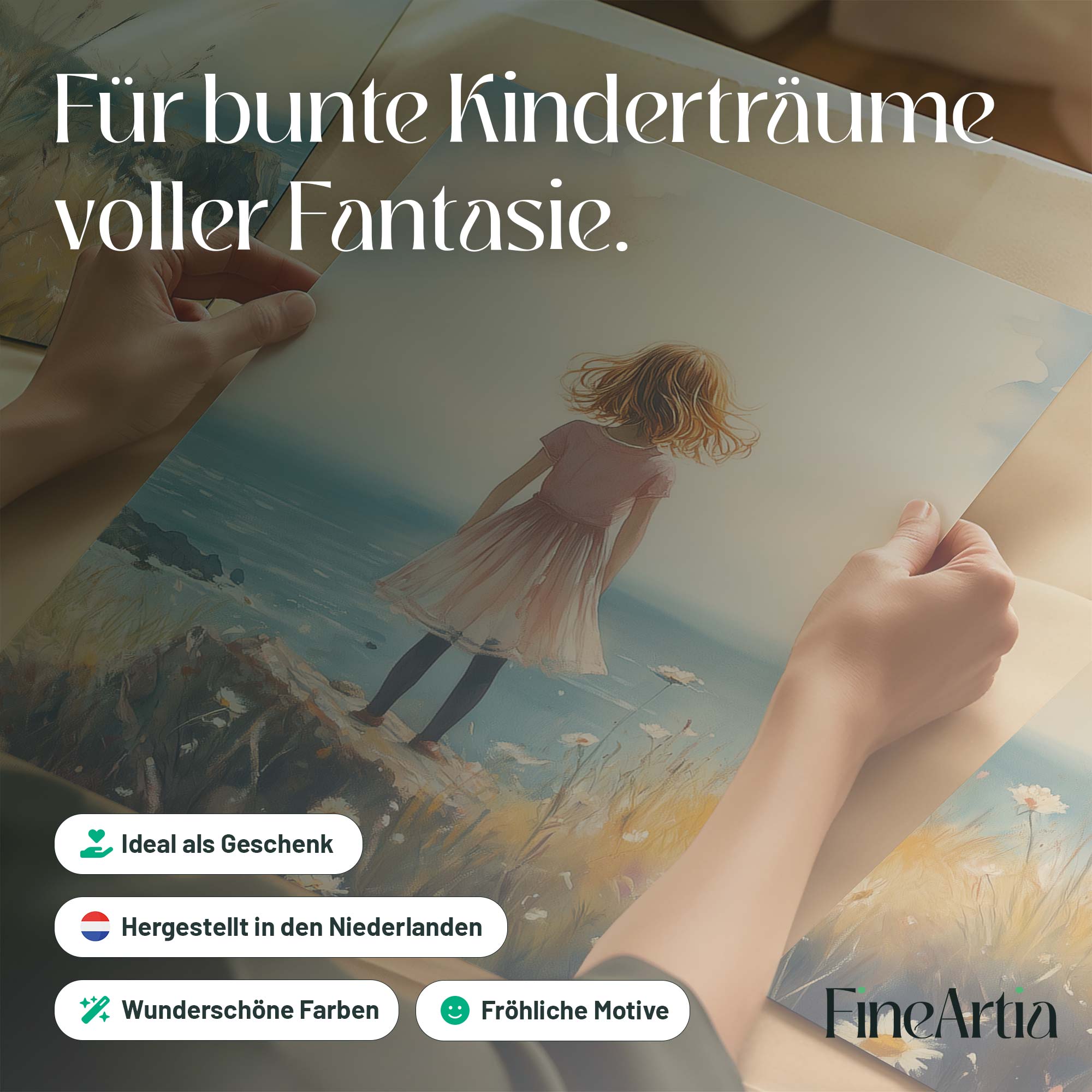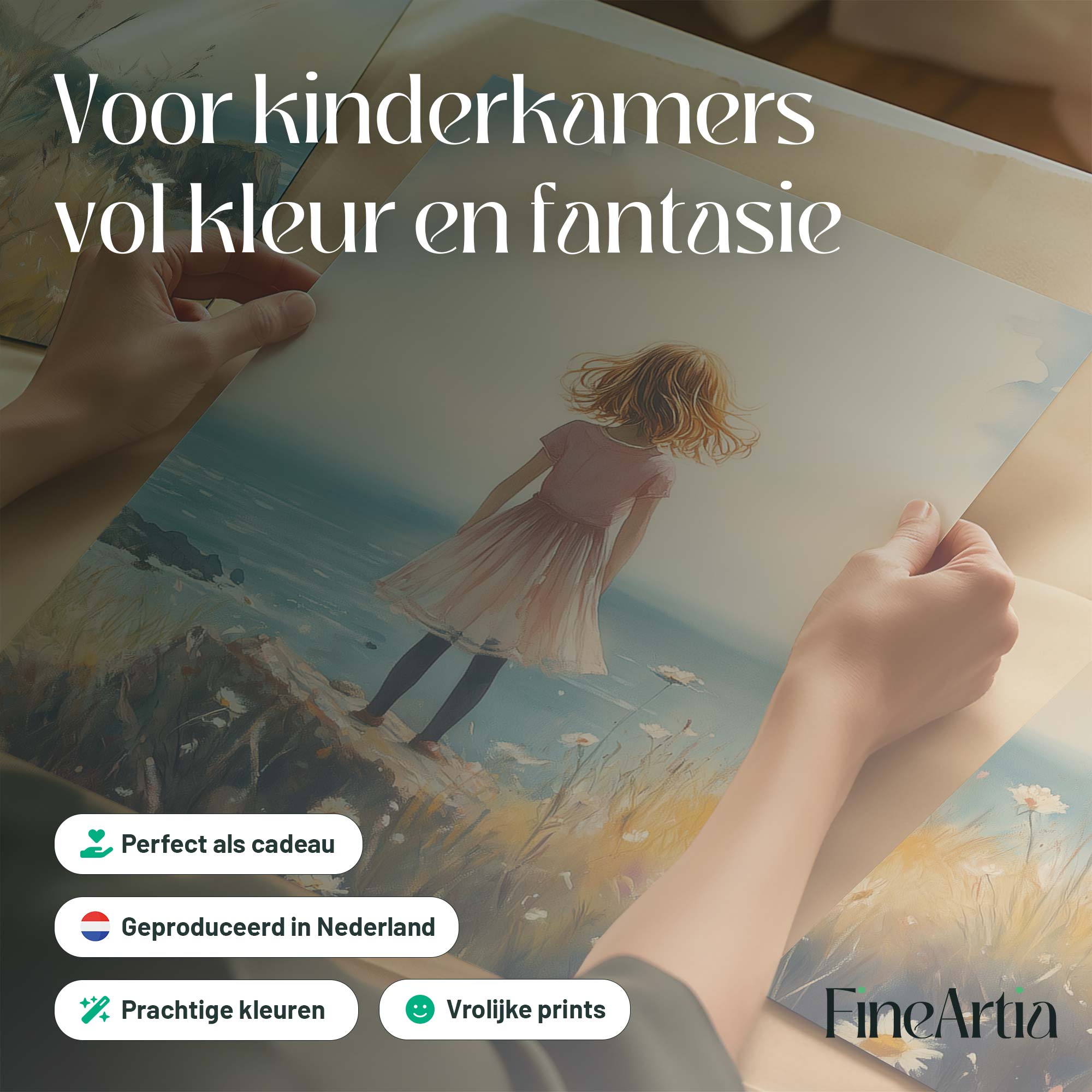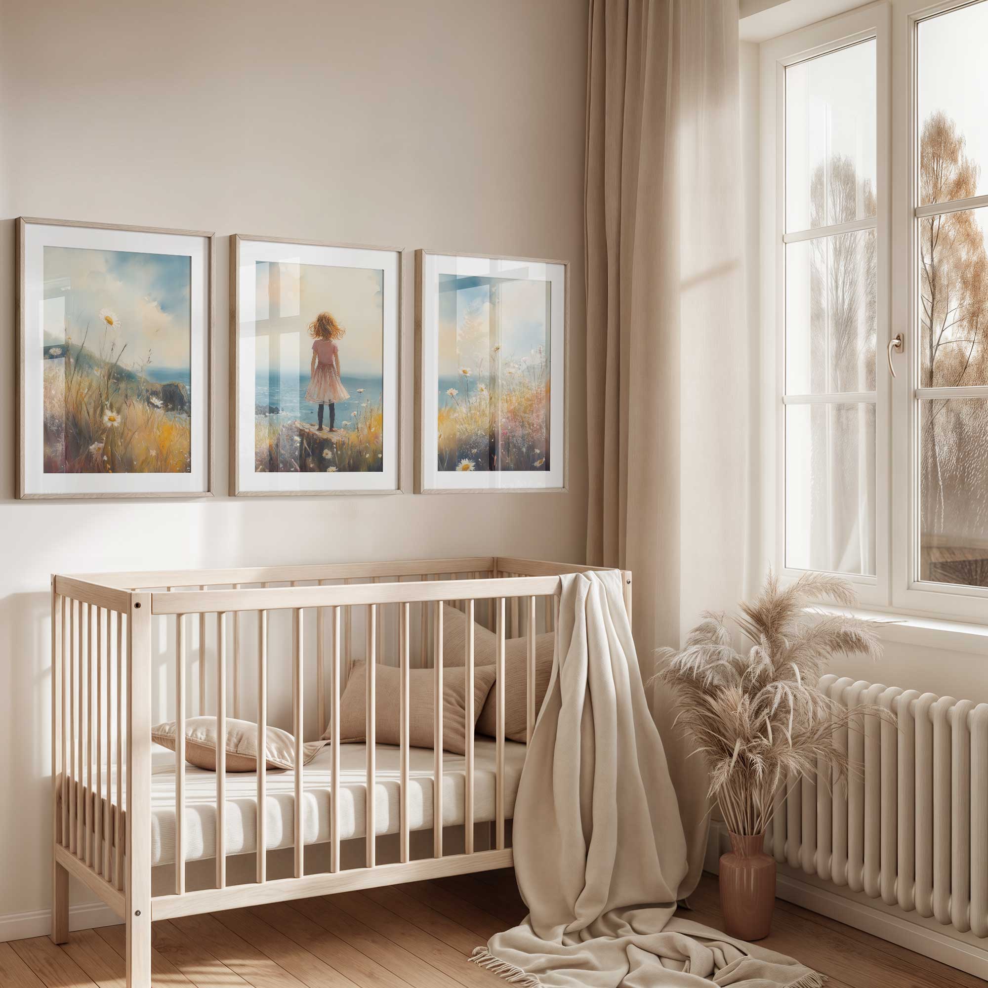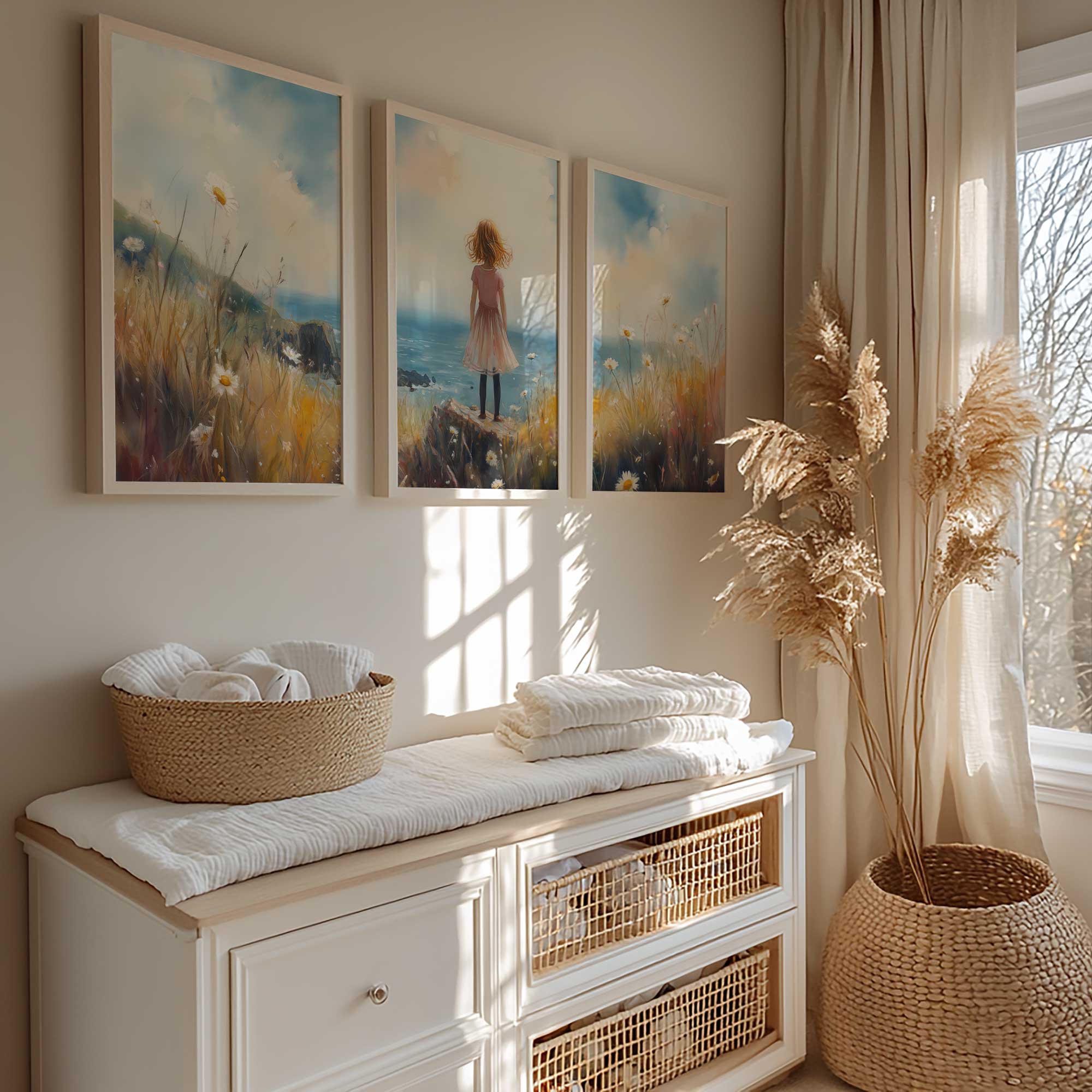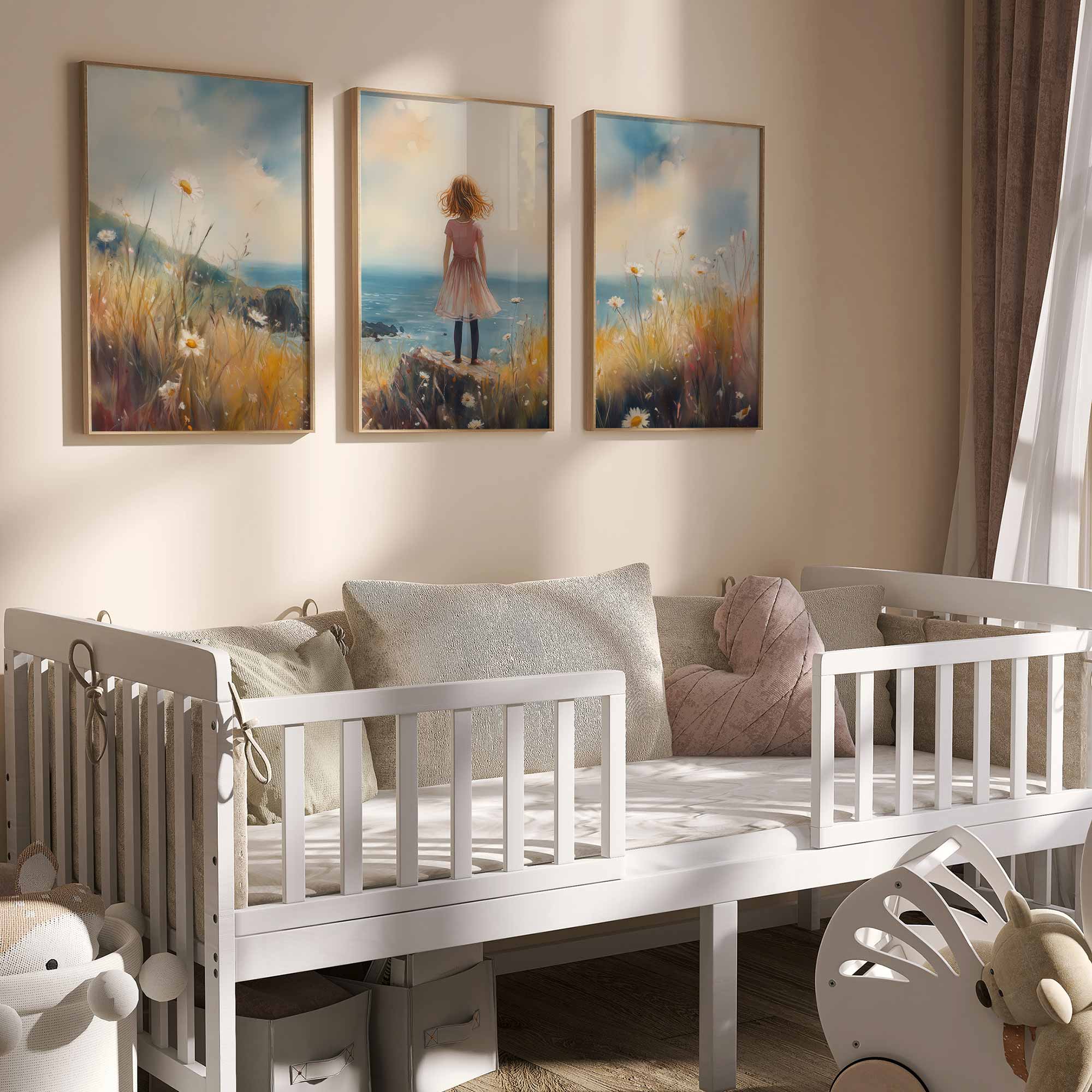 Roze Dromen: Meisje in Bloemenveld bij de Zee