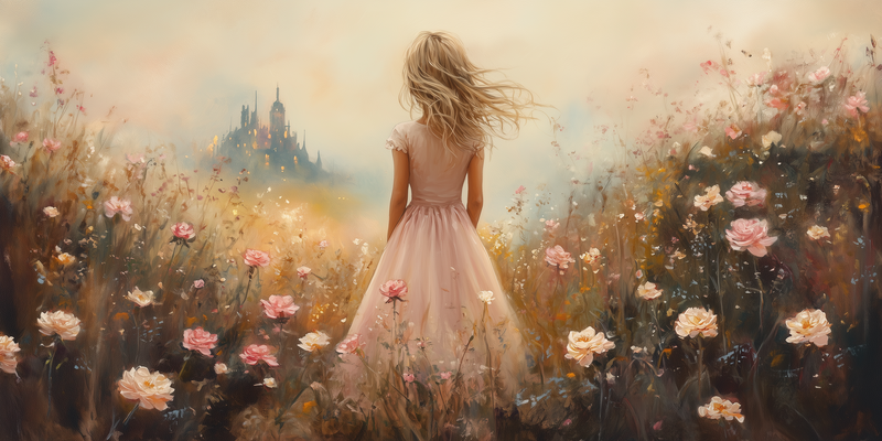 Roze Droom in Bloemenveld met Kasteel