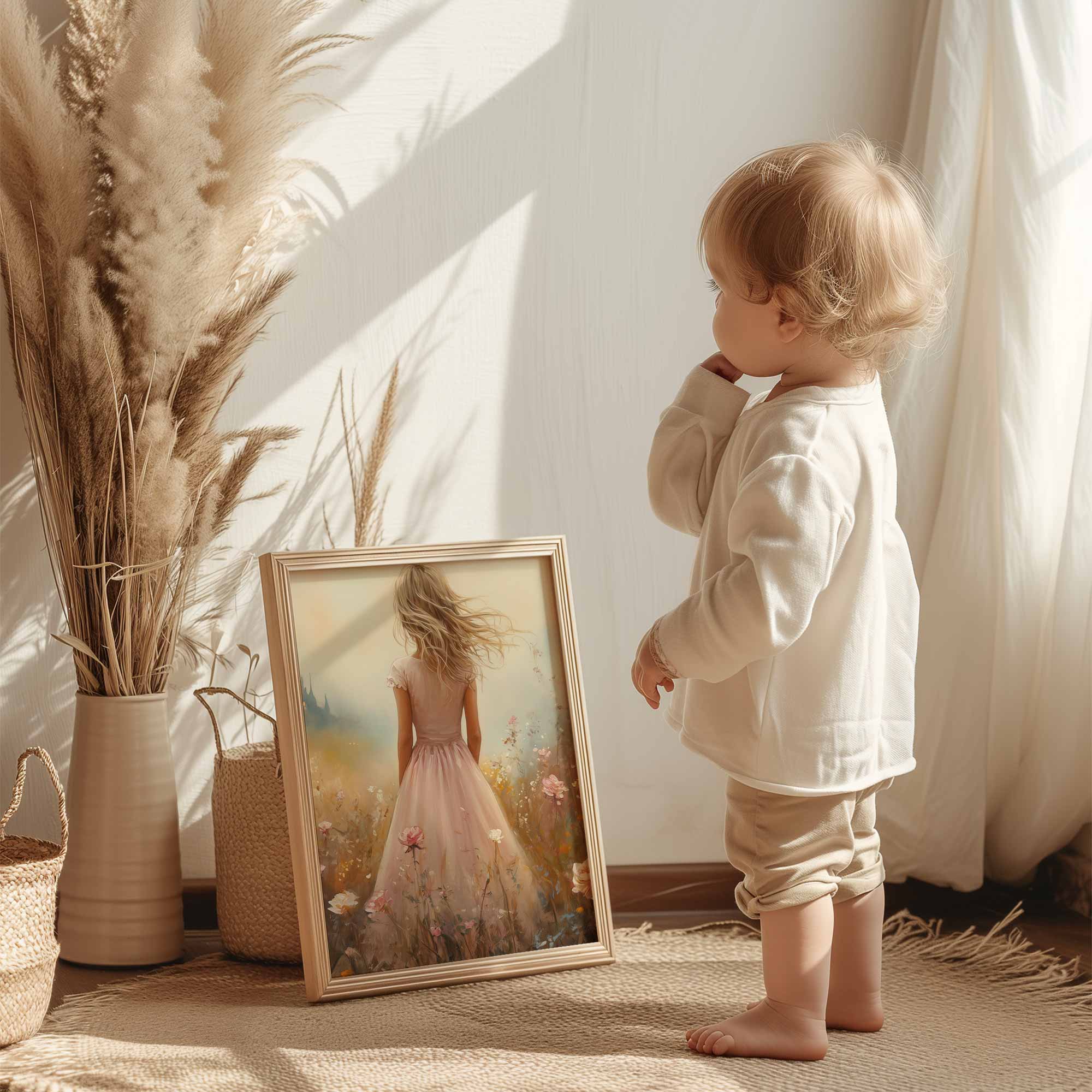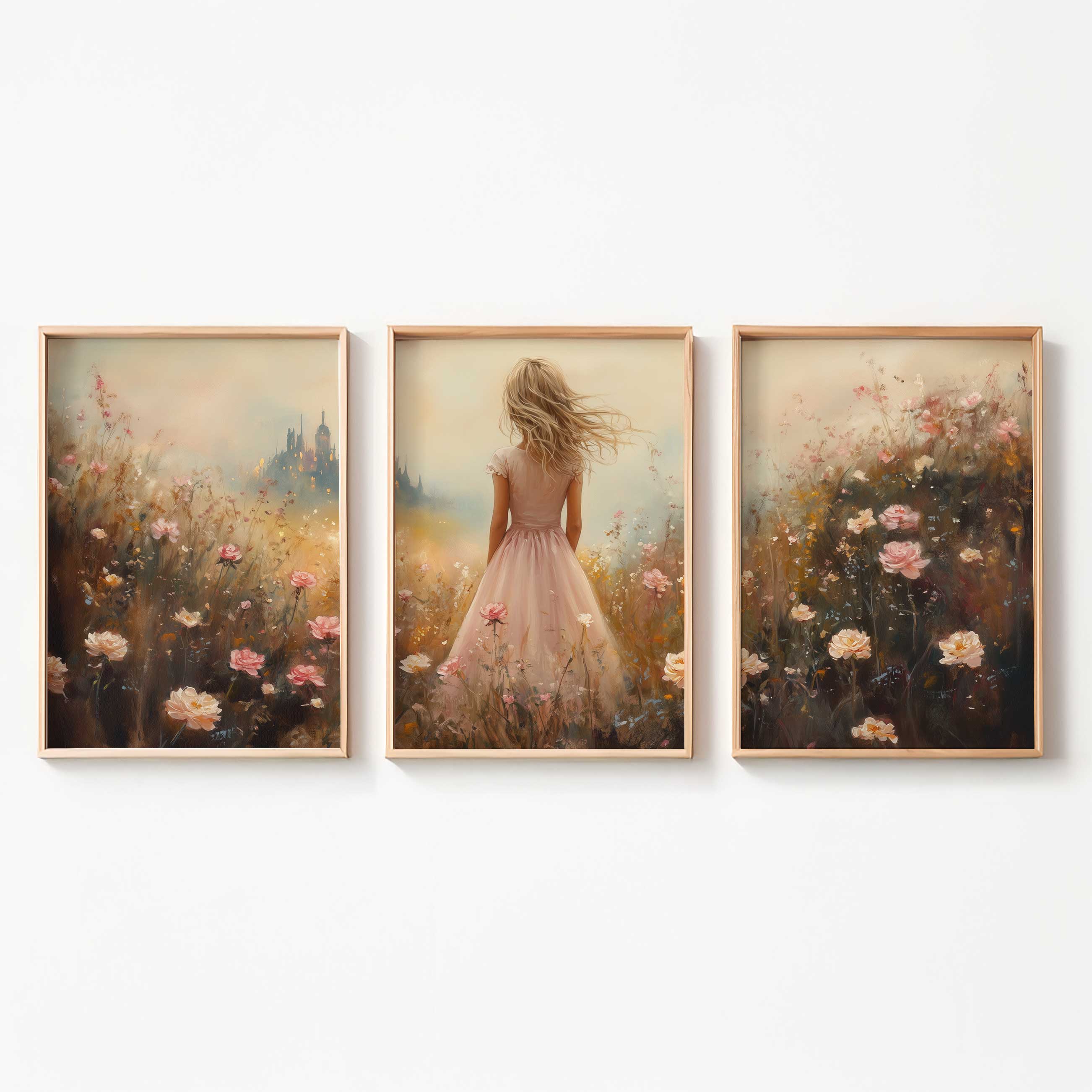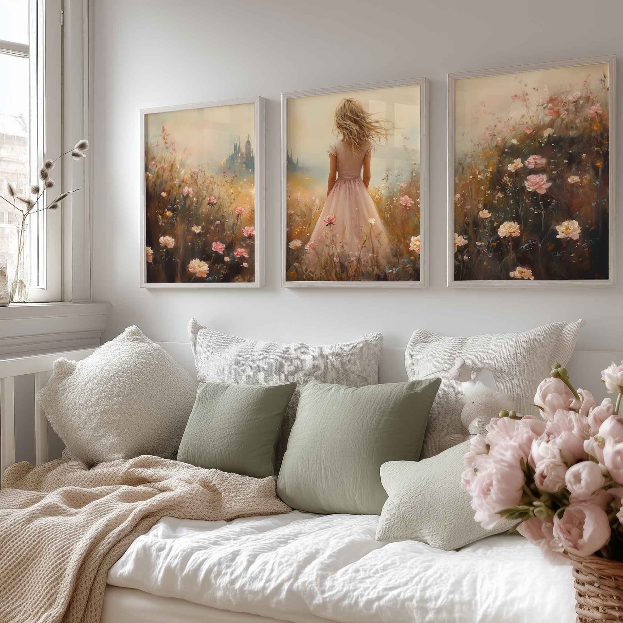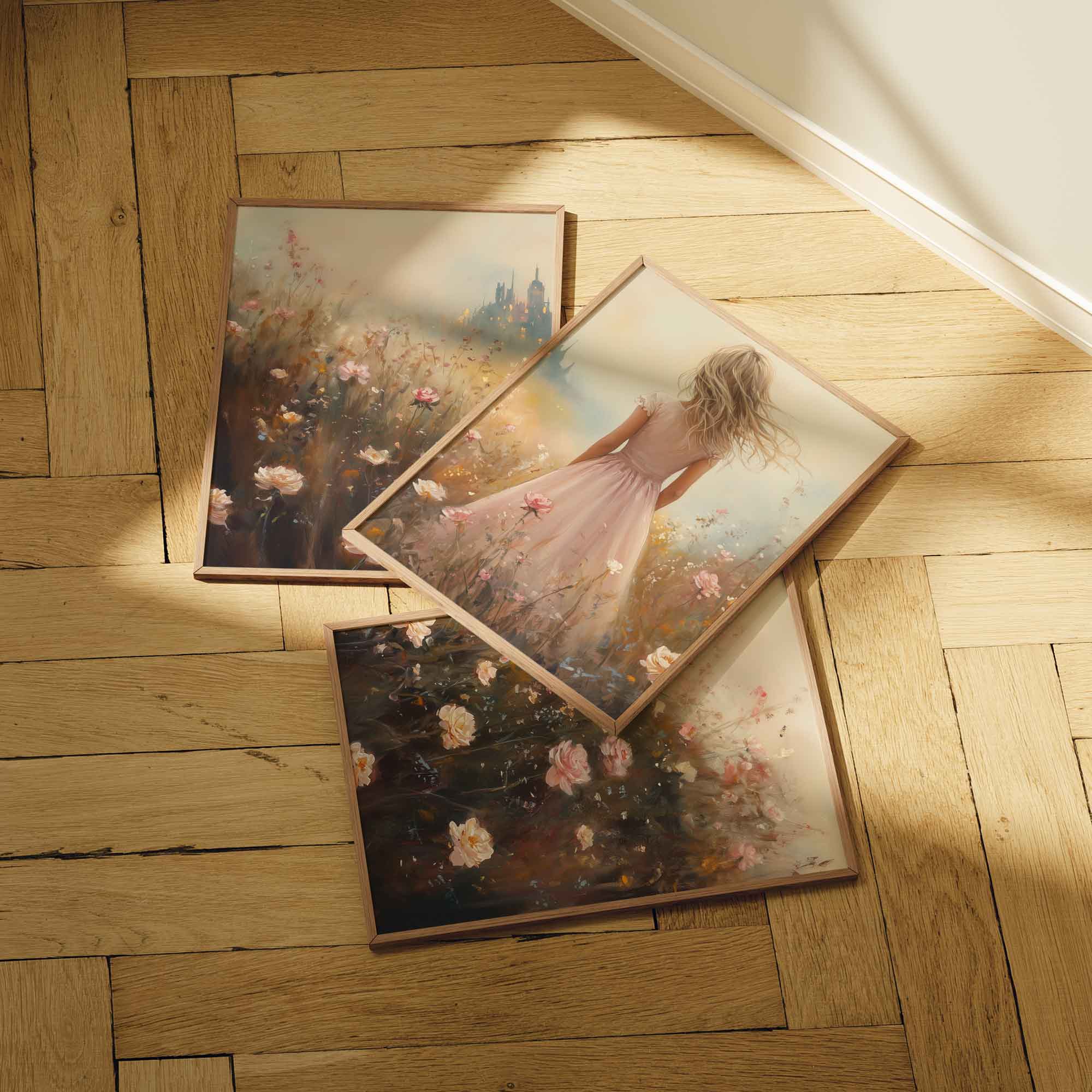 Terug naar collectie Posters Roze Droom in Bloemenveld met Kasteel