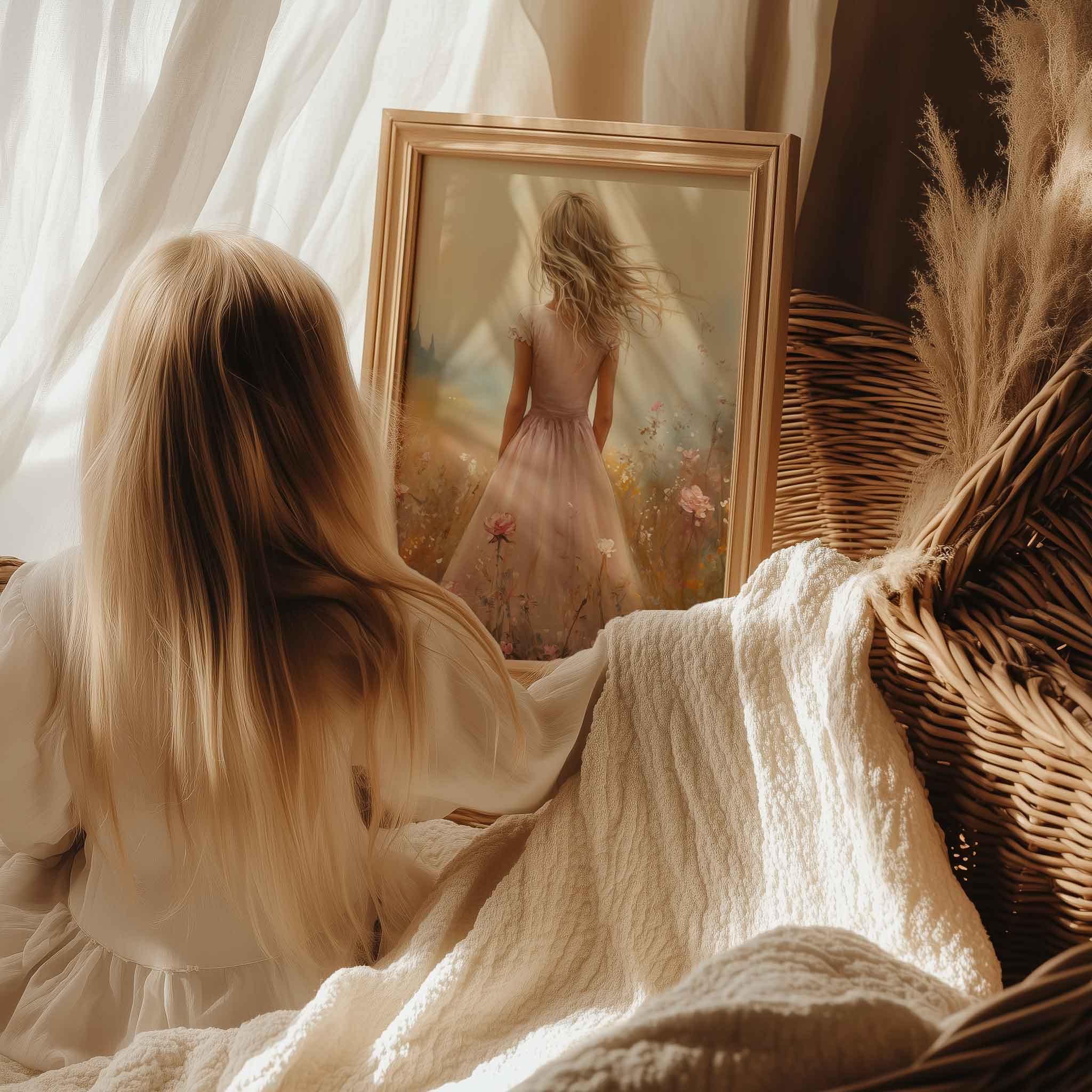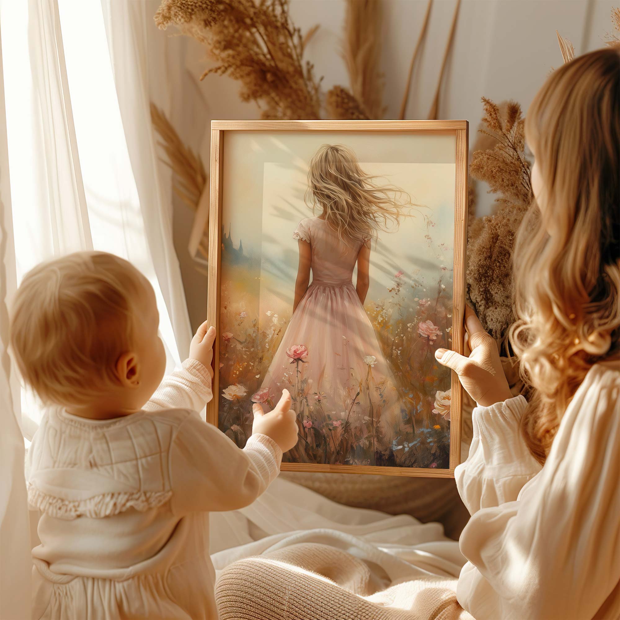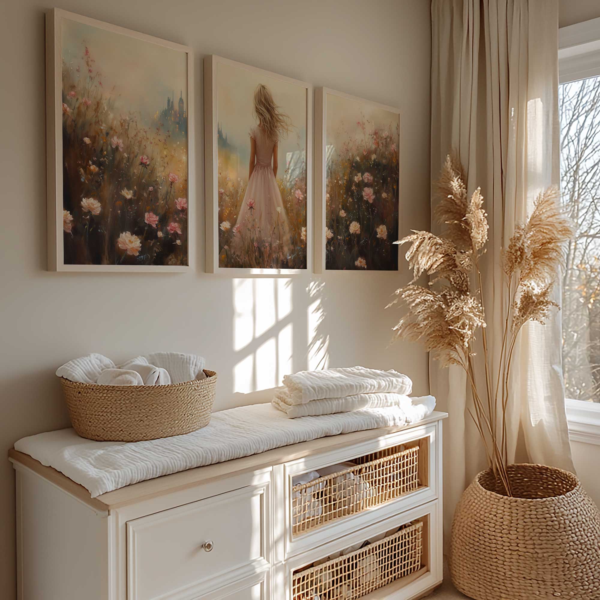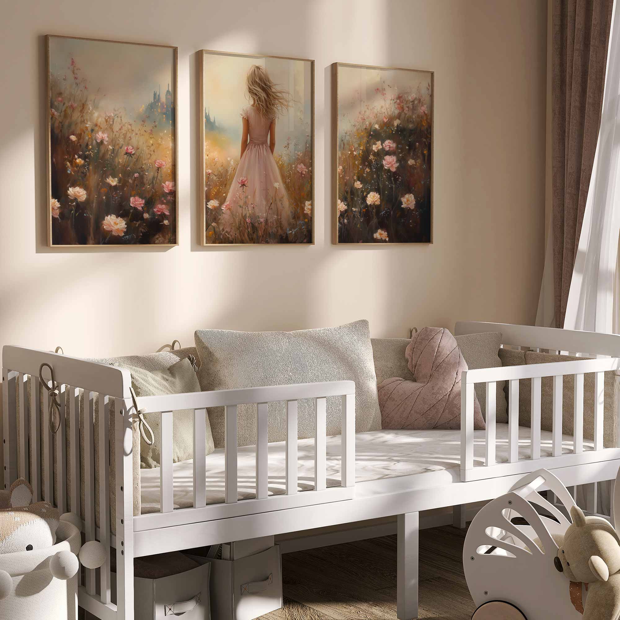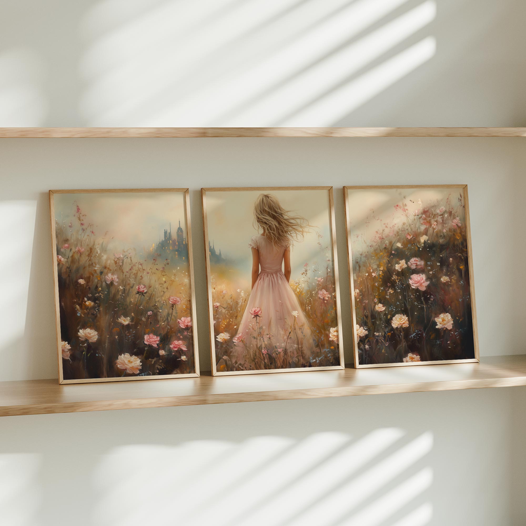 Terug naar collectie Posters Roze Droom in Bloemenveld met Kasteel