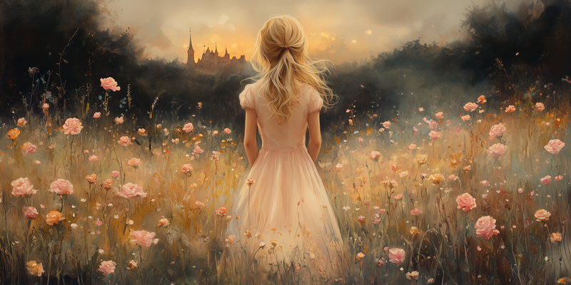 Roze Droom in Bloemenveld met Kasteel