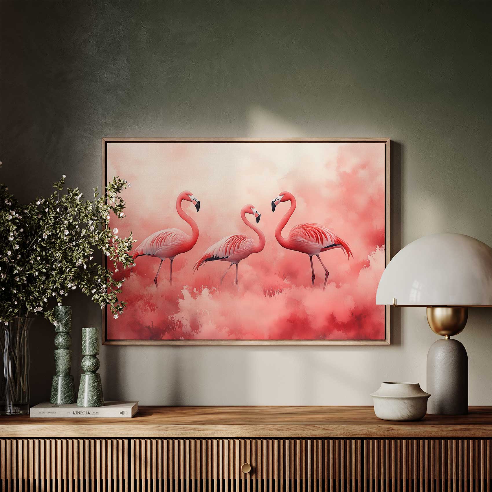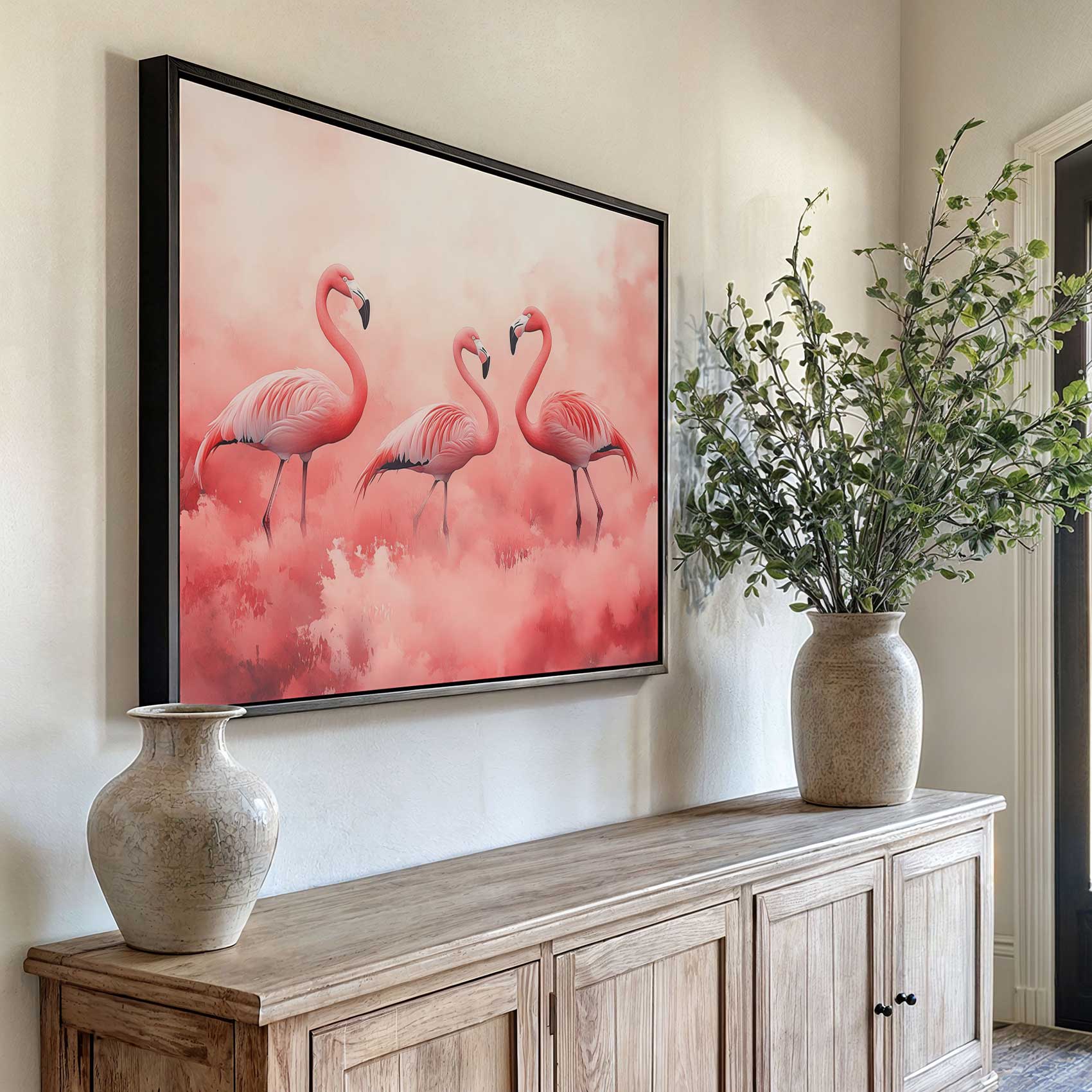 Roze Flamingo’s in Dromerige Mist