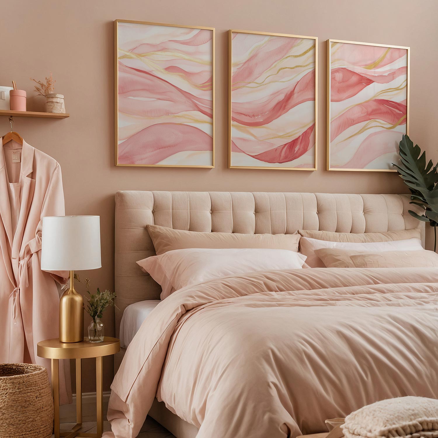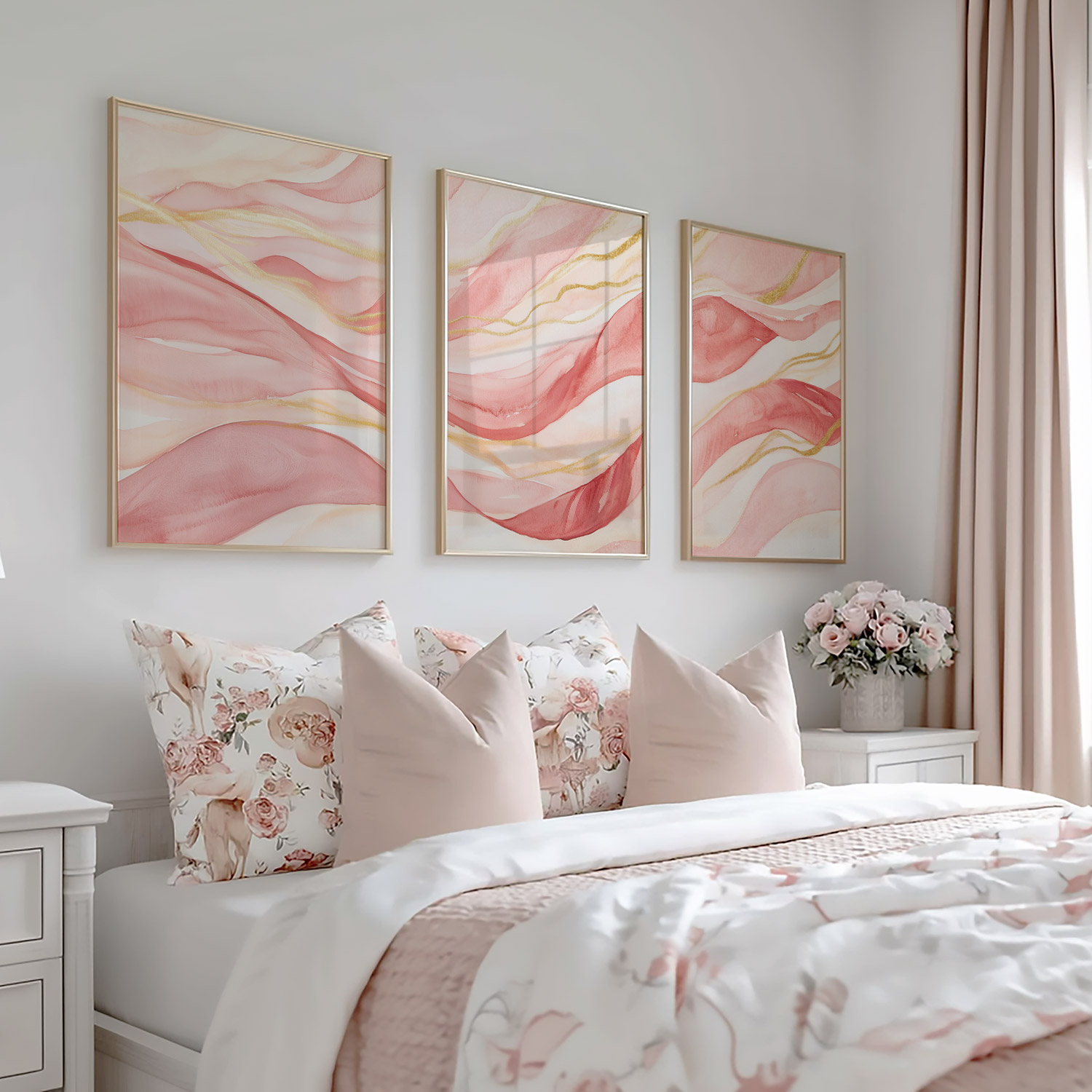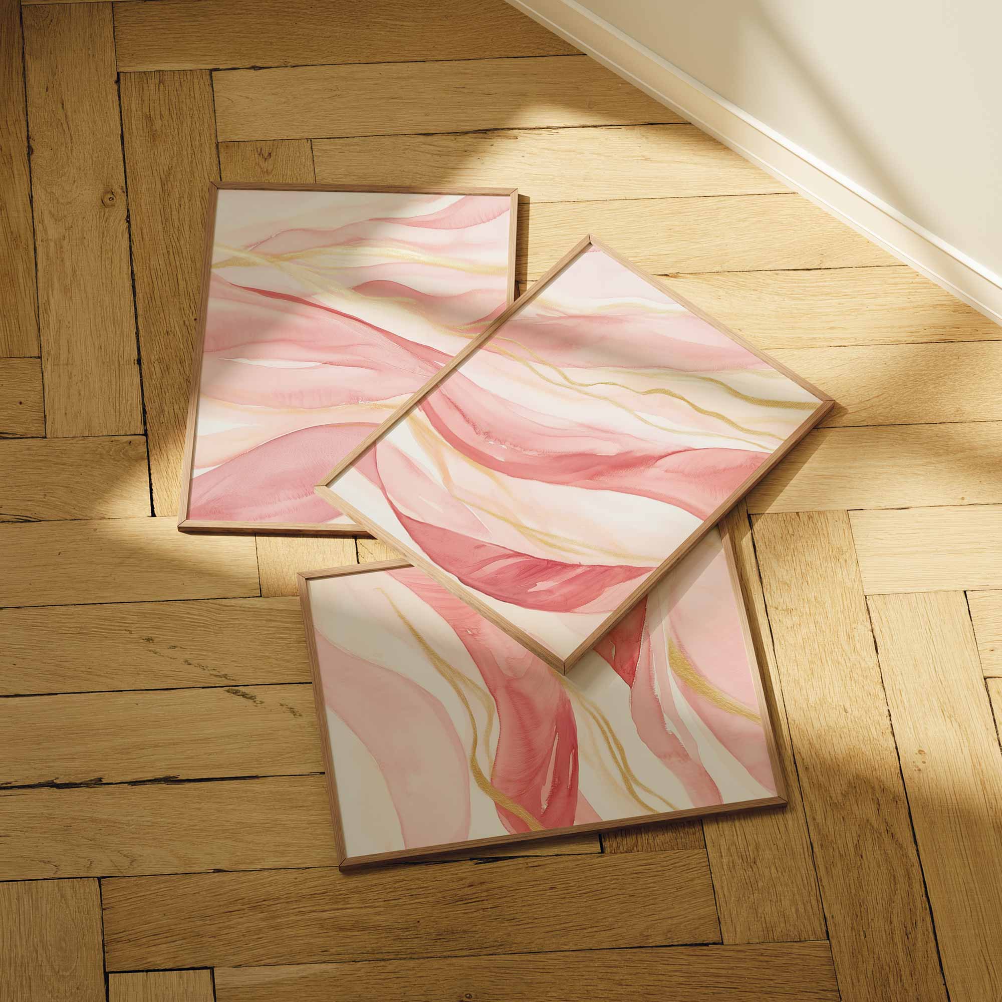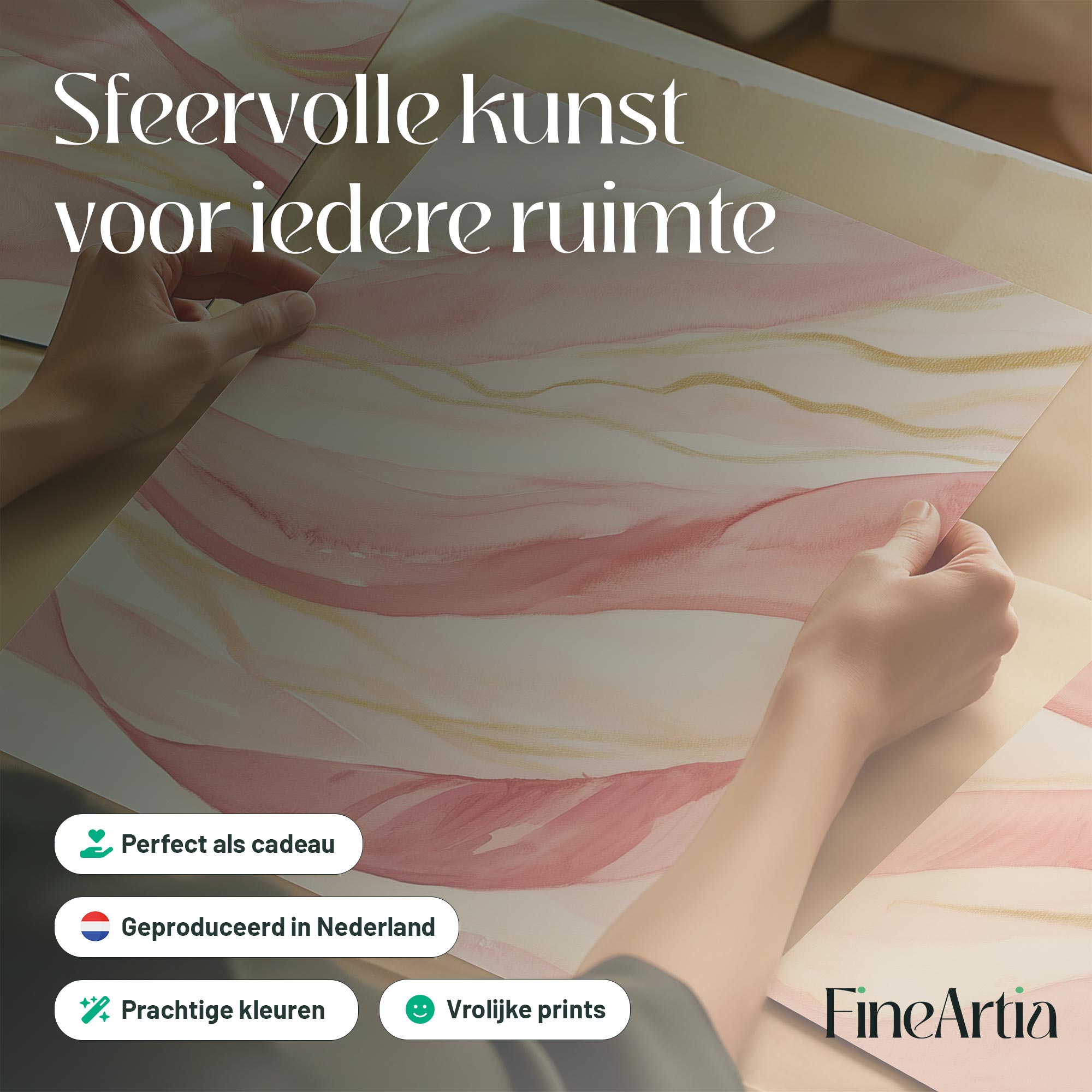 Roze & Gouden Abstracte Vloeiende Vormen – Speels & Stijlvol