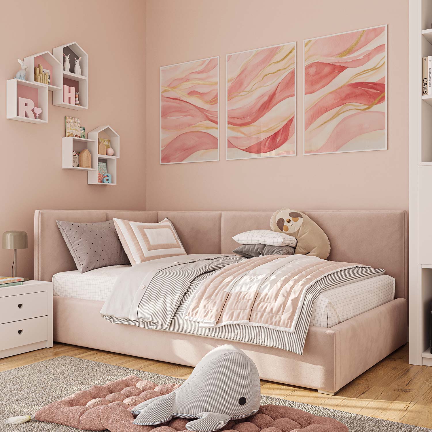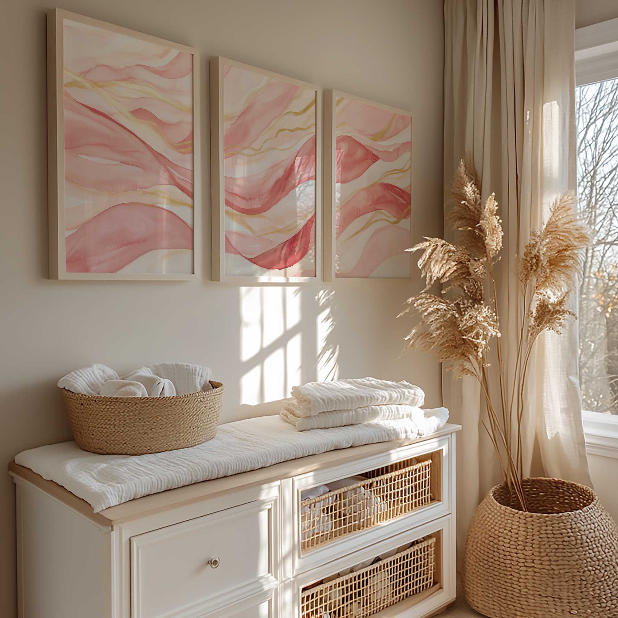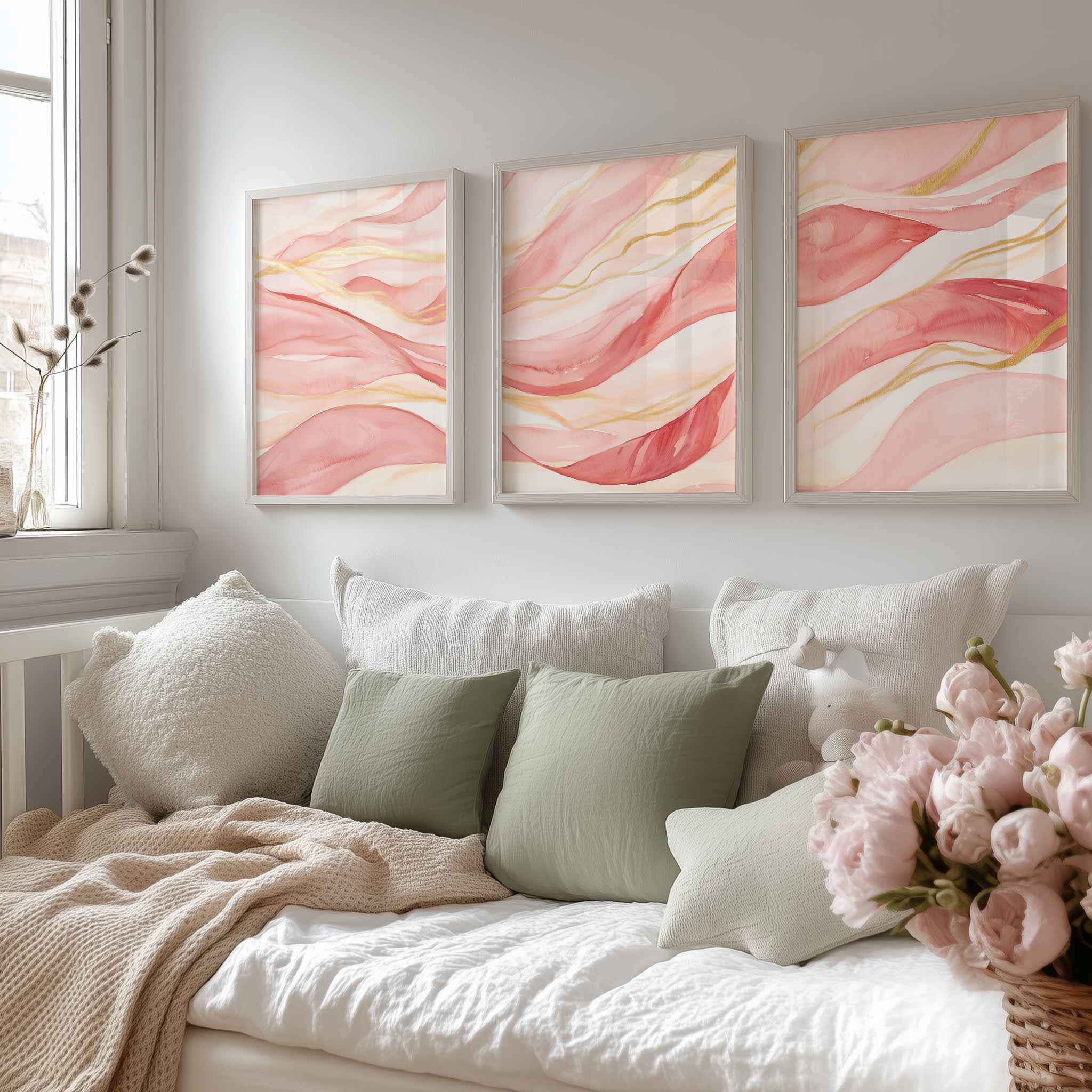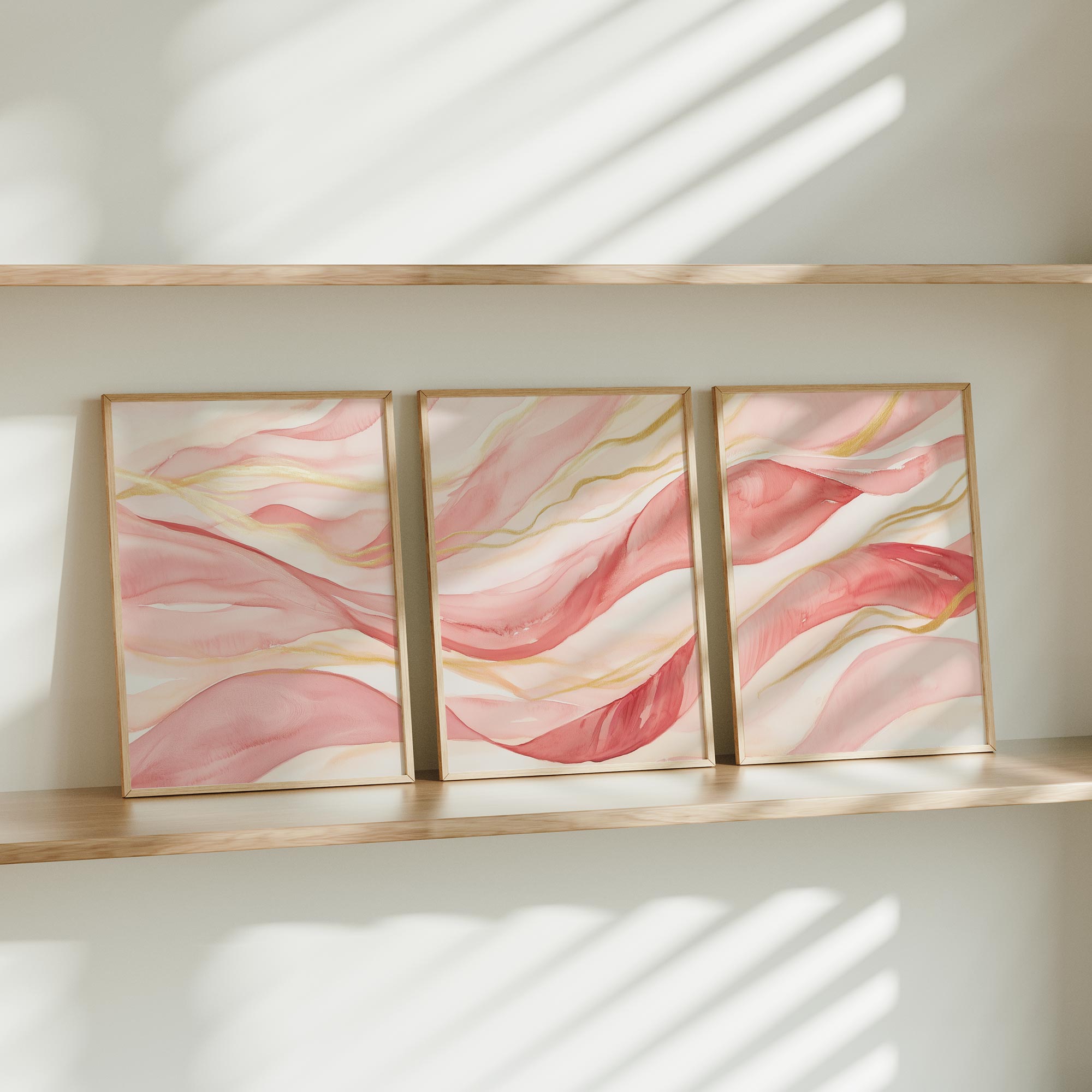Roze & Gouden Abstracte Vloeiende Vormen – Speels & Stijlvol