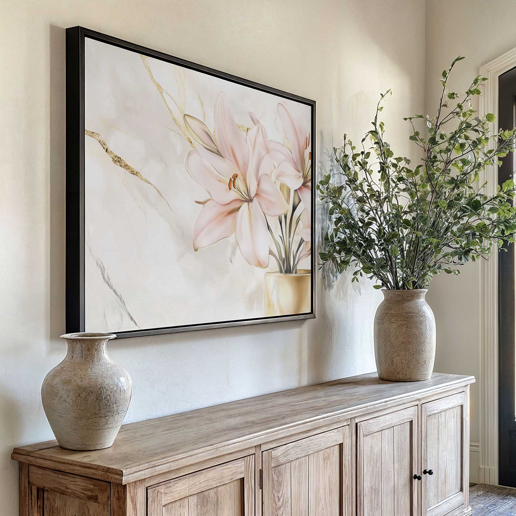 Roze lelies in marmeren vaas