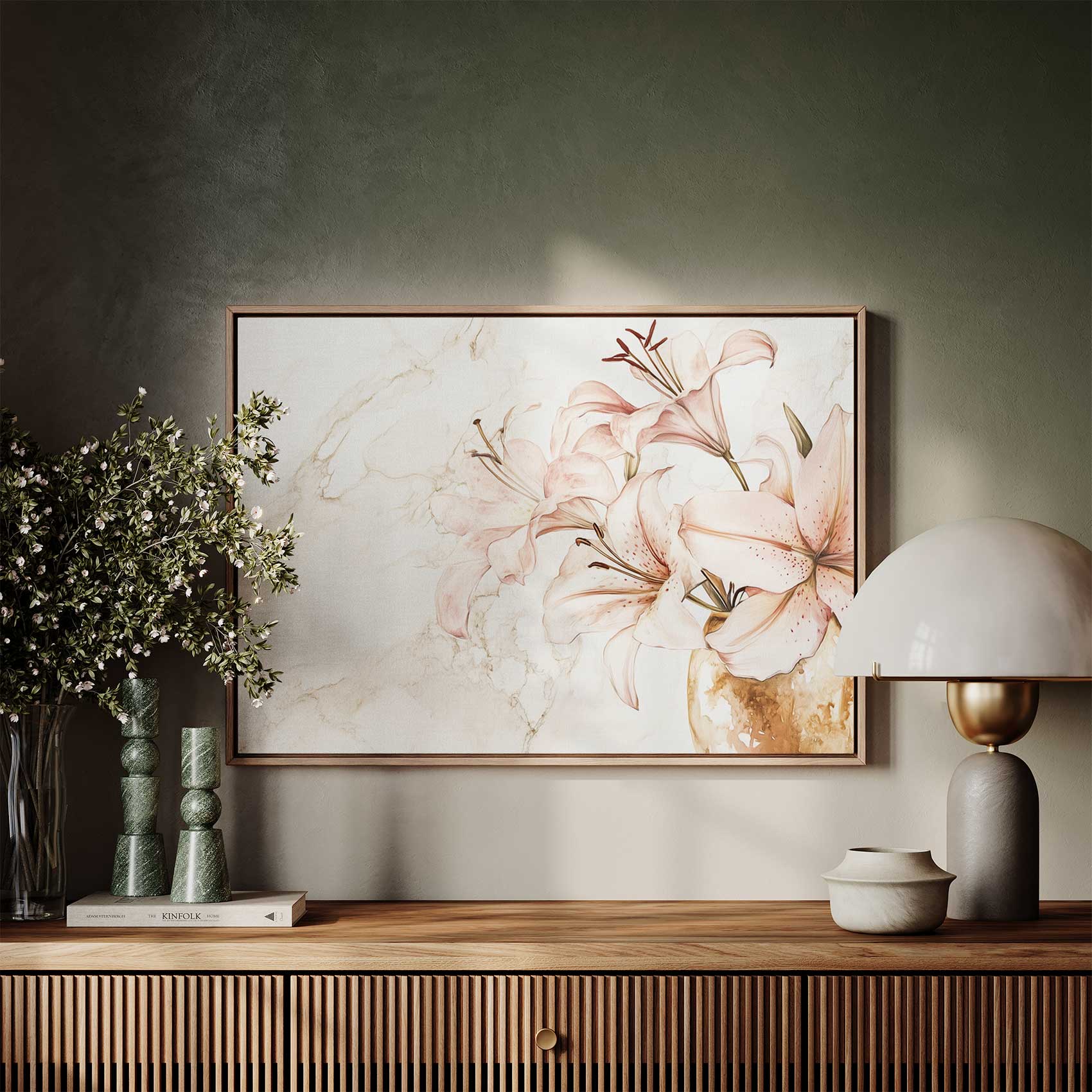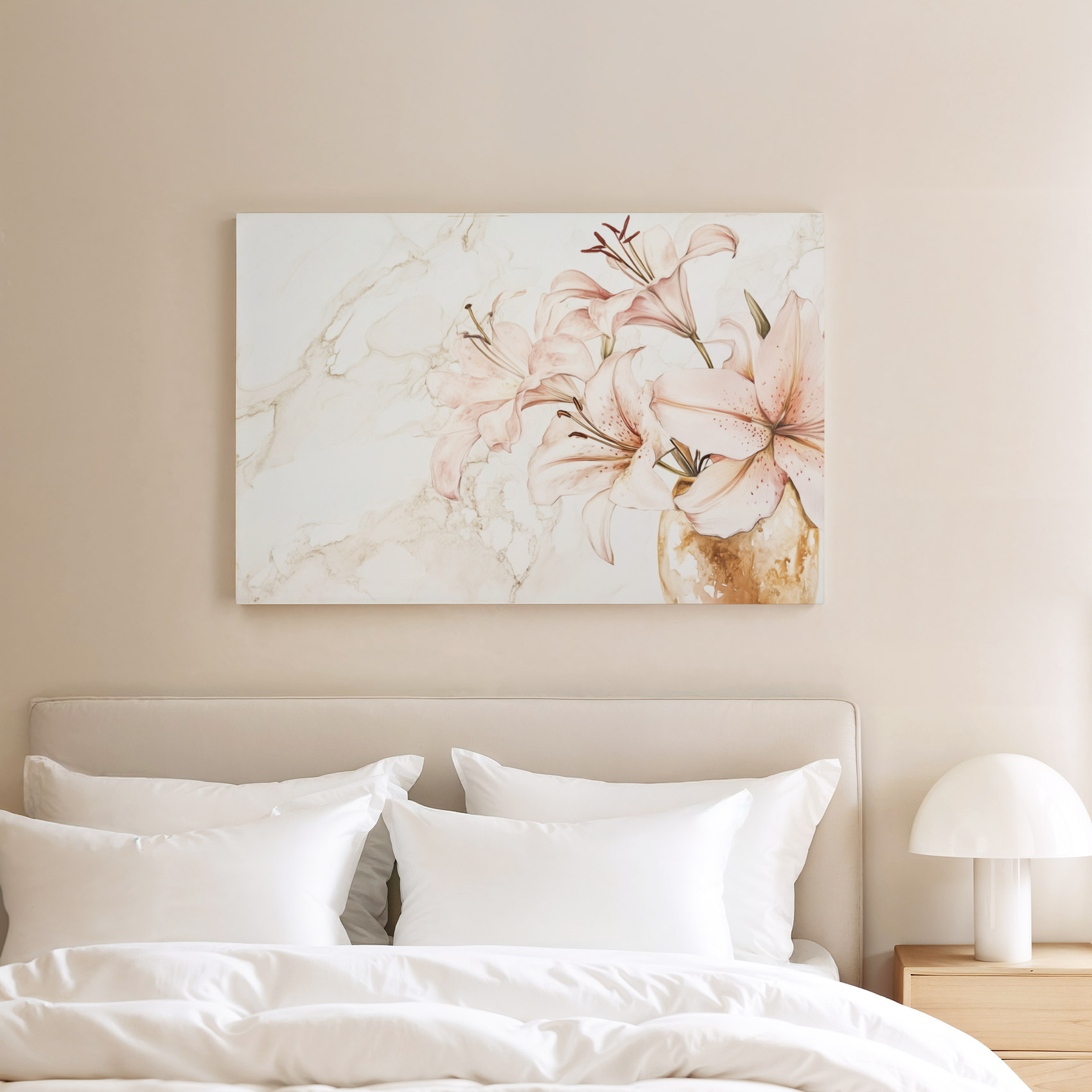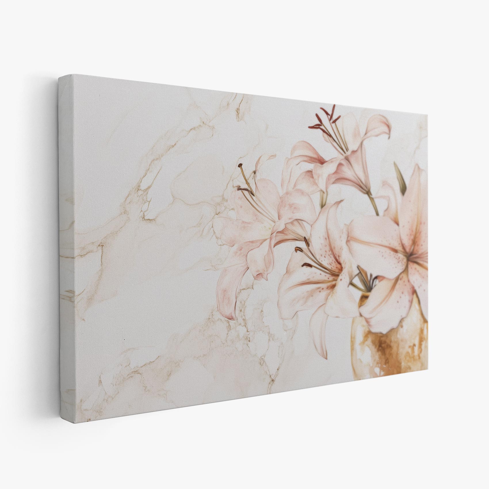 Terug naar collectie Canvas Bloemen Roze lelies in marmeren vaas