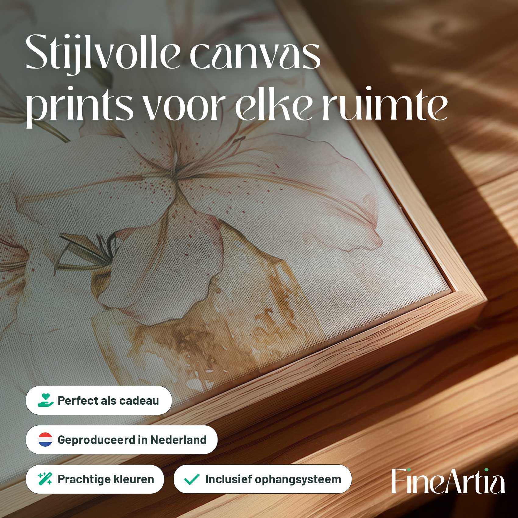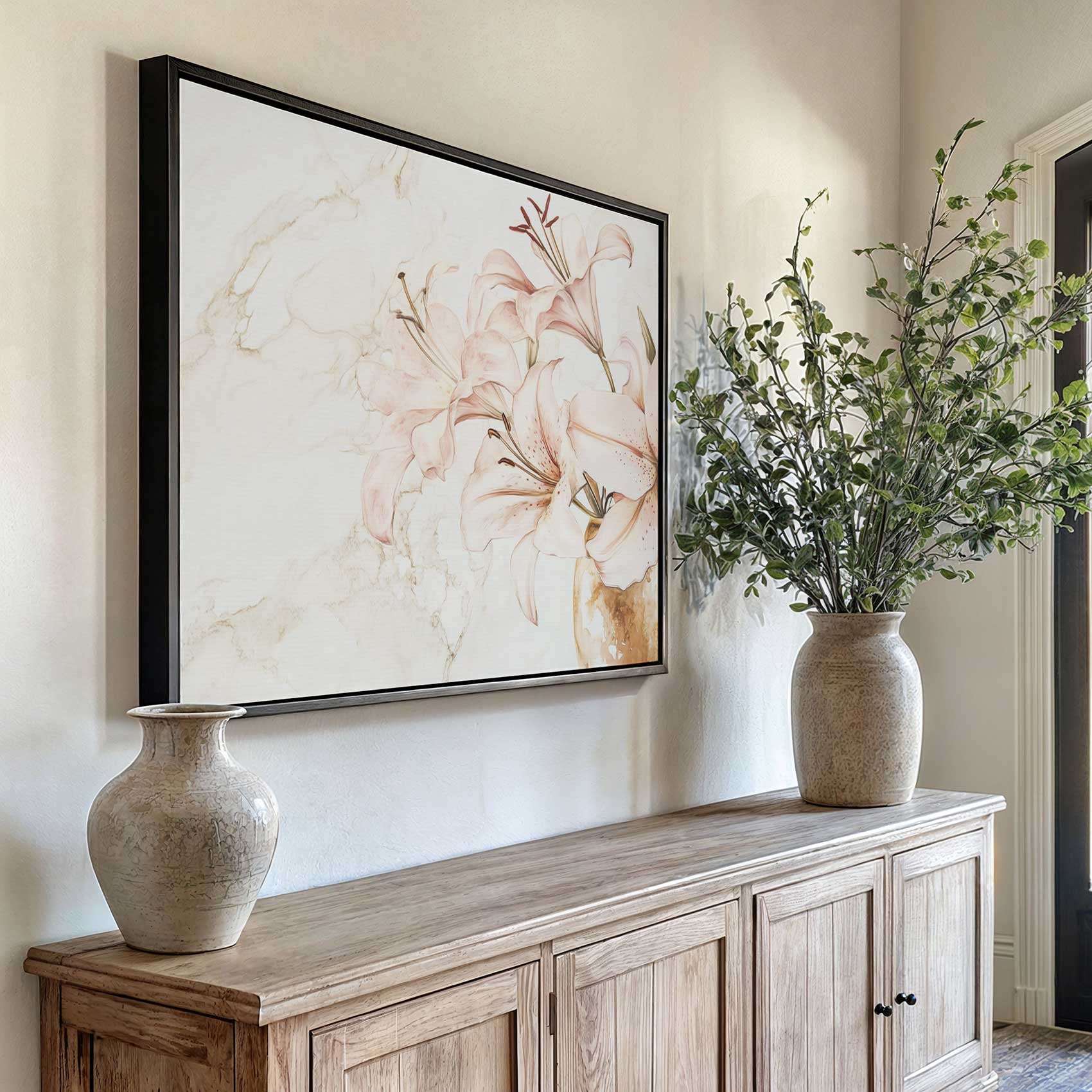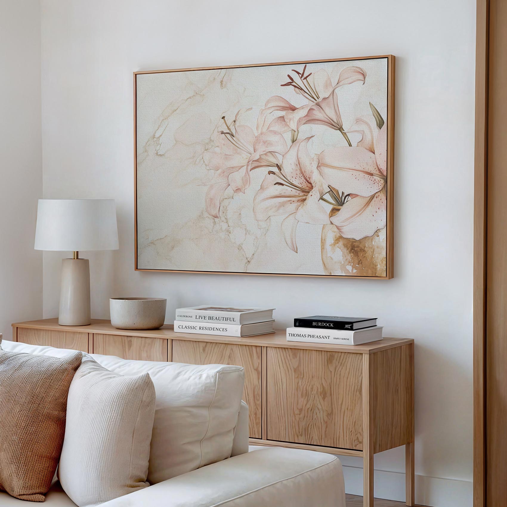 Terug naar collectie Canvas Bloemen Roze lelies in marmeren vaas