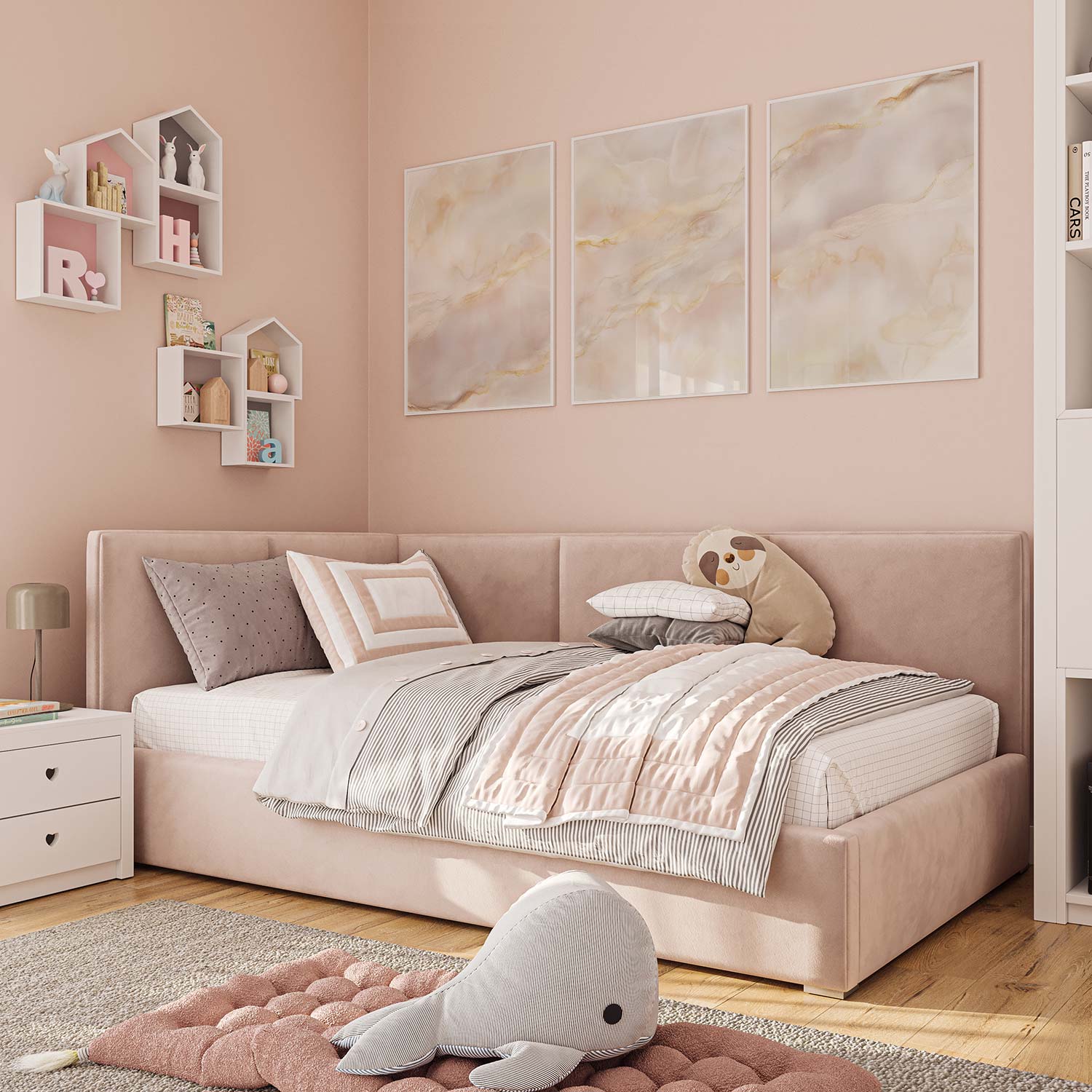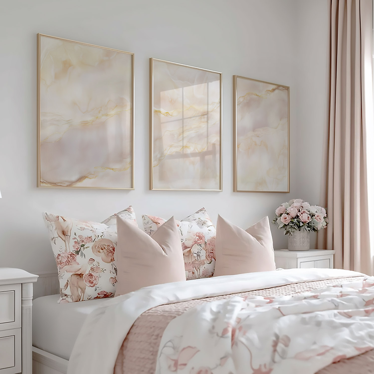 Roze Marmeren Elegance met Gouden Sierlijke Lijnen