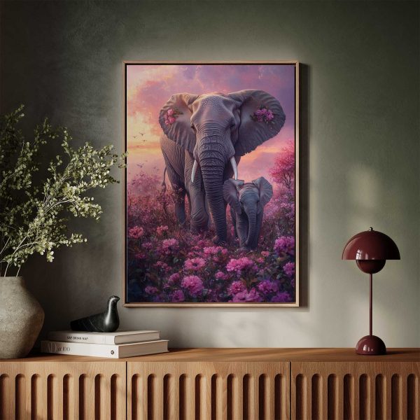 Roze olifantenmoeder en kind
