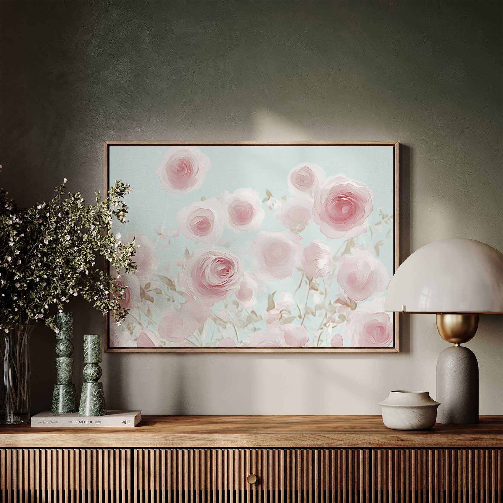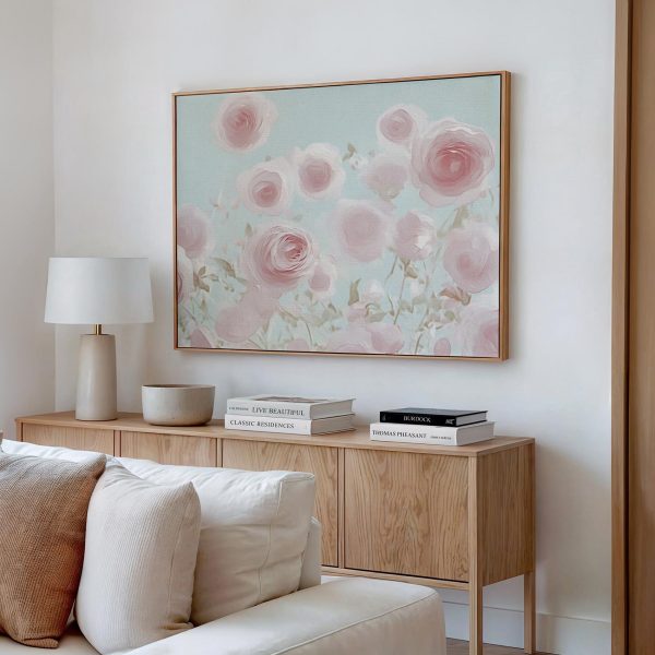 Roze rozenveld in bloei