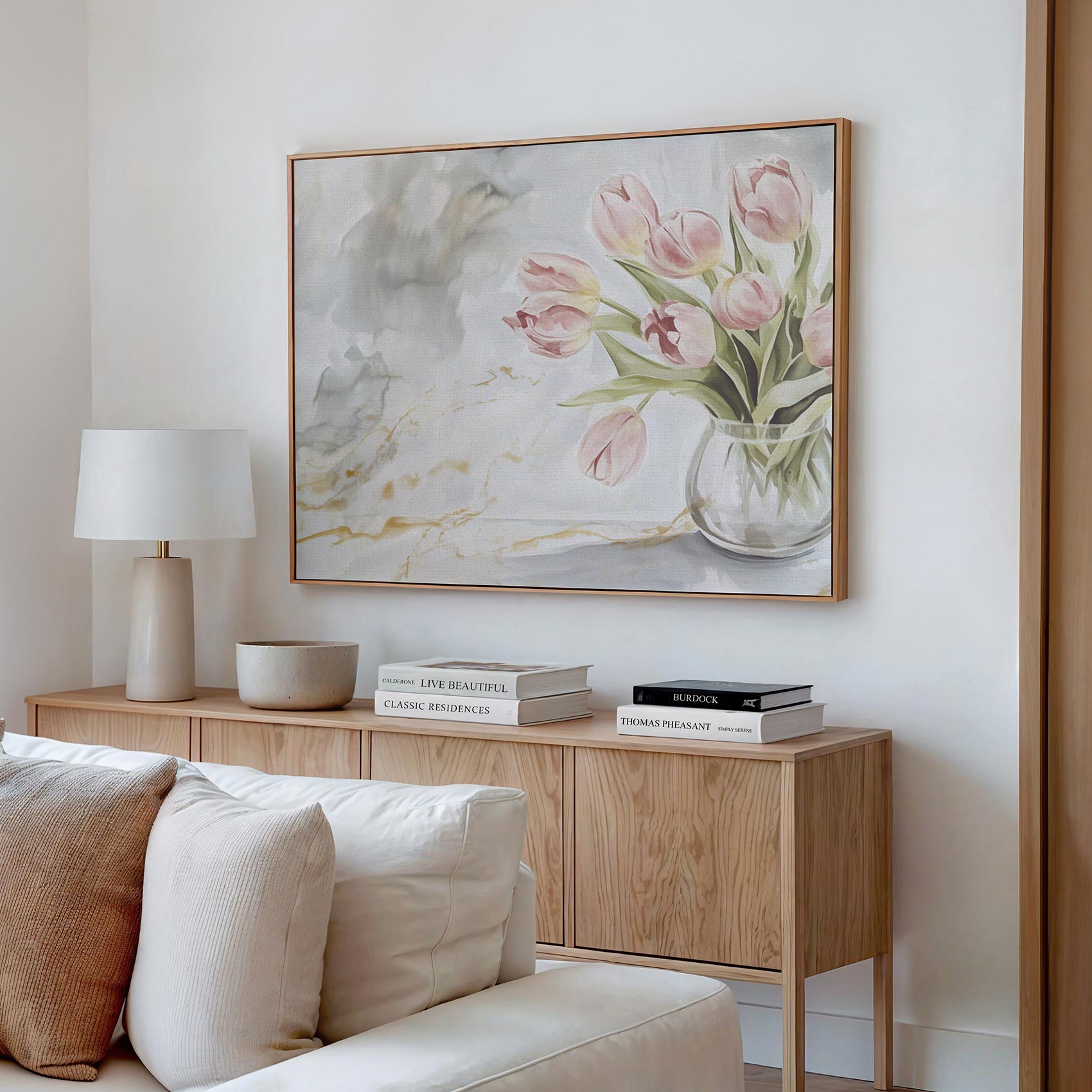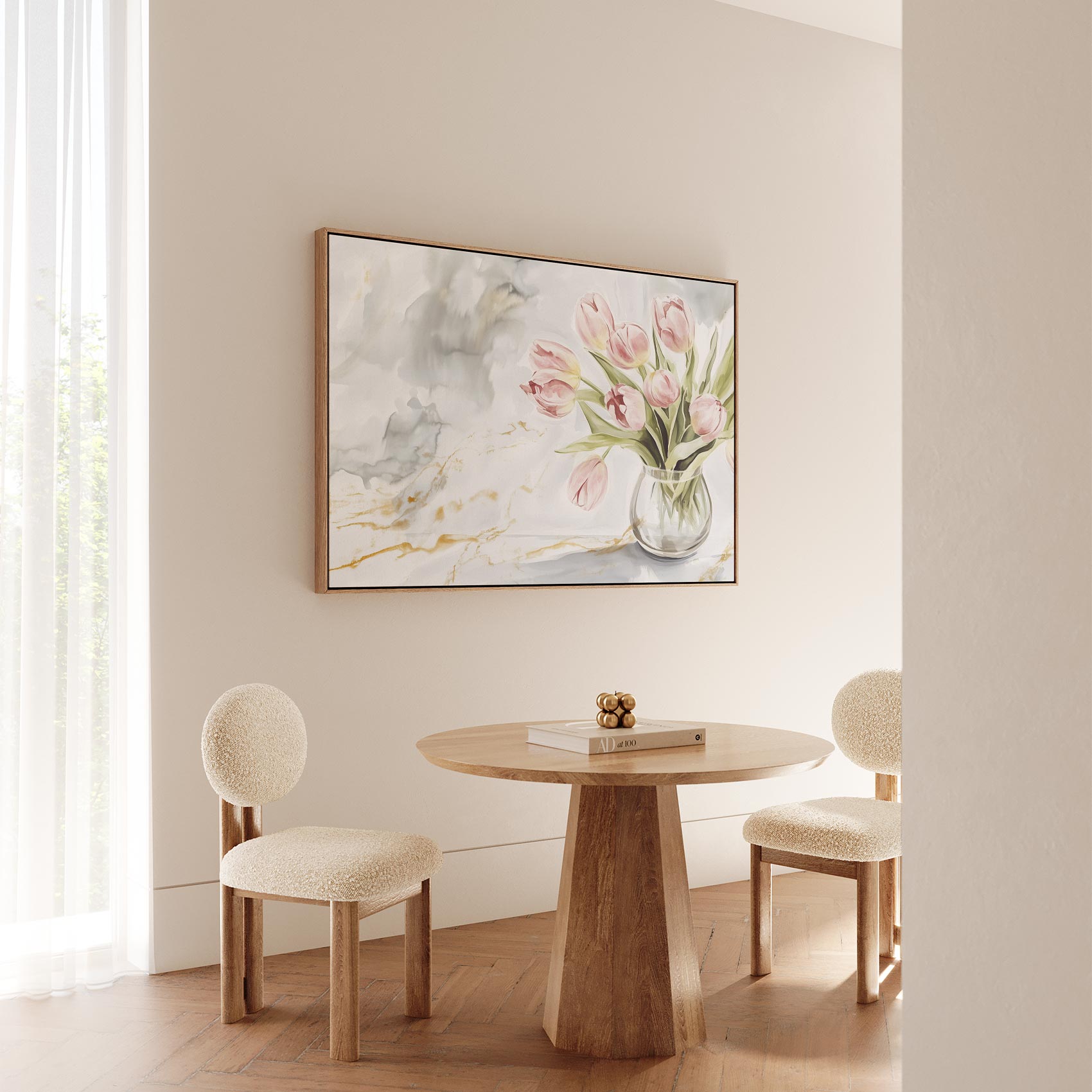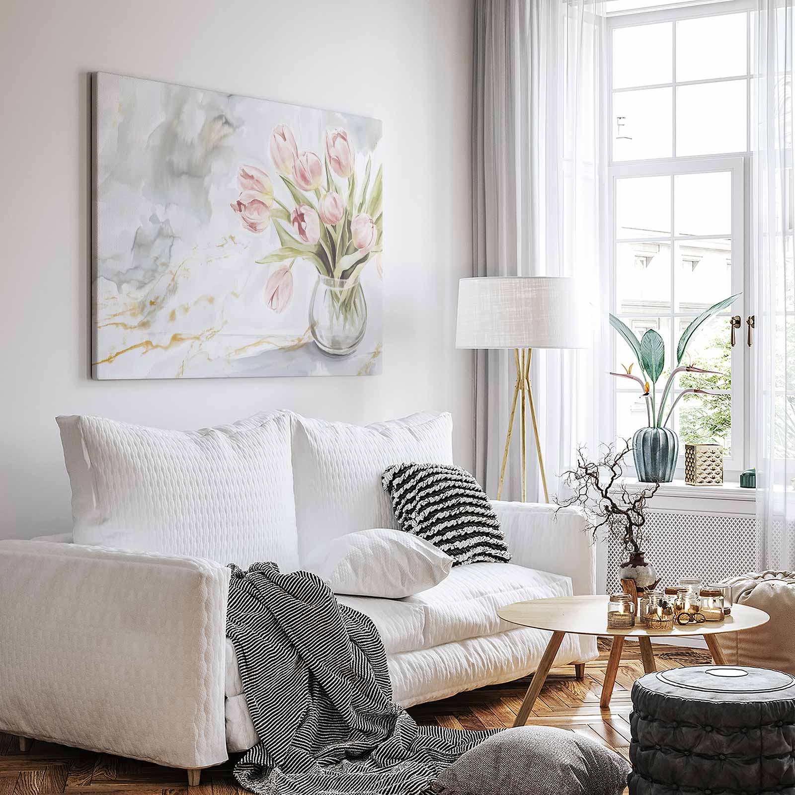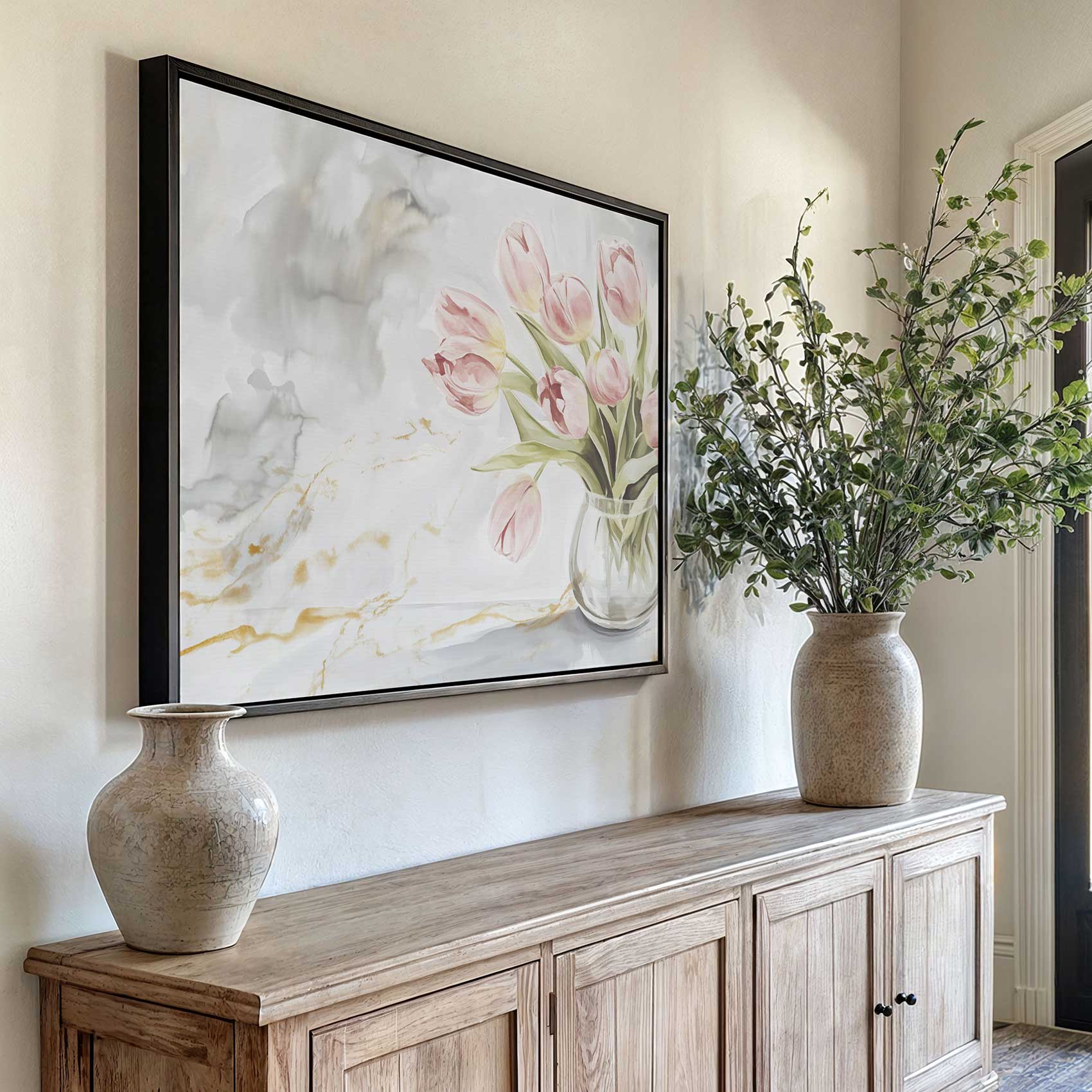 Roze tulpen in marmeren vaas
