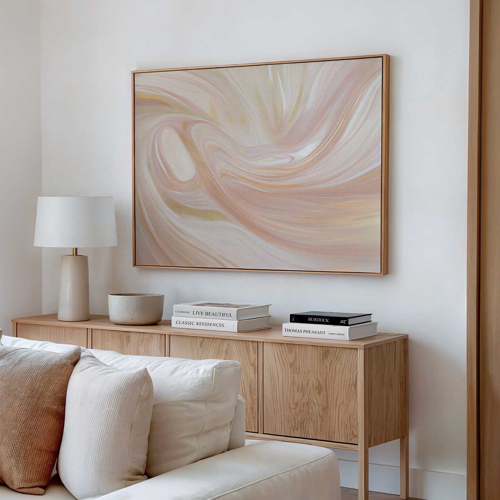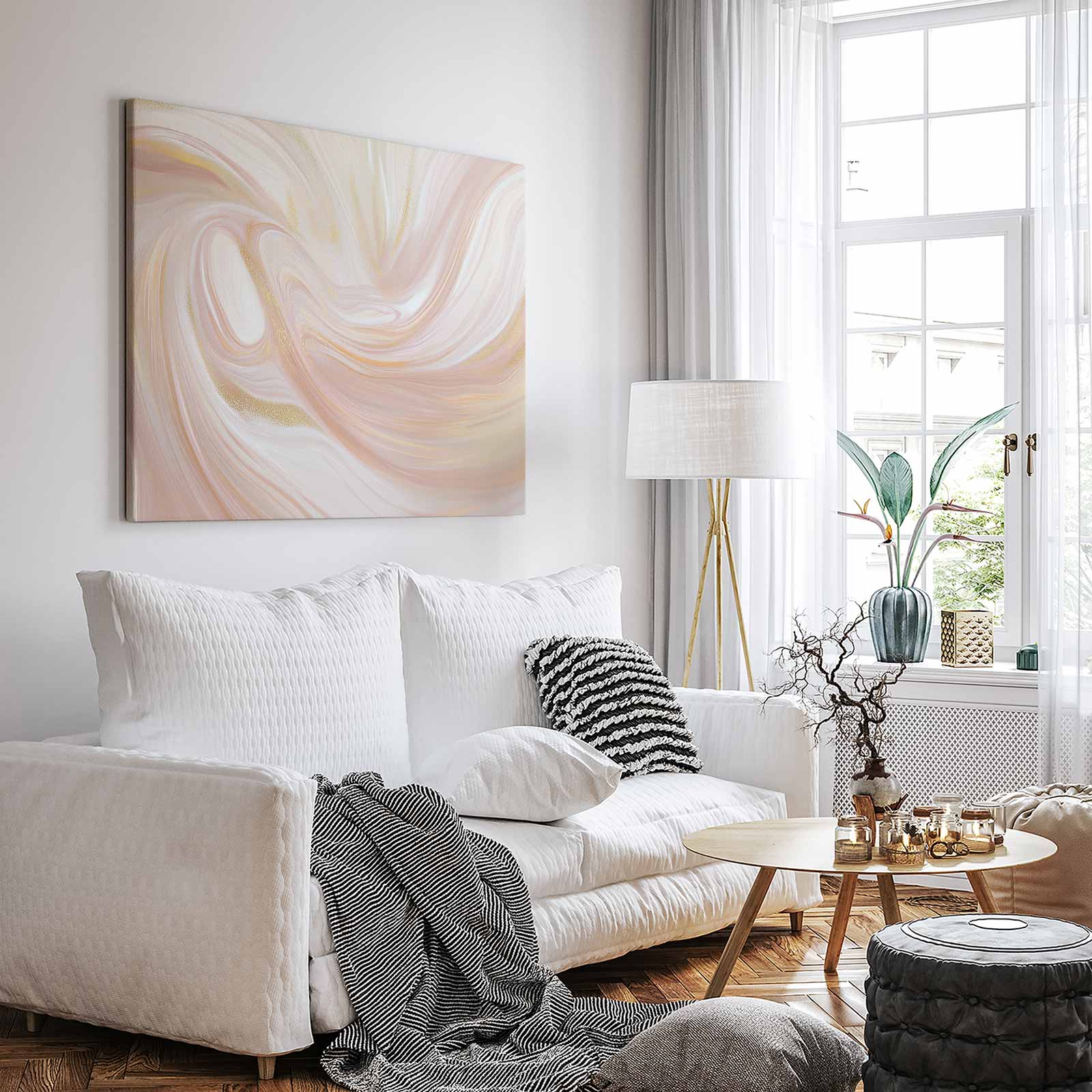 Terug naar collectie Canvas Roze-witte abstracte swirl