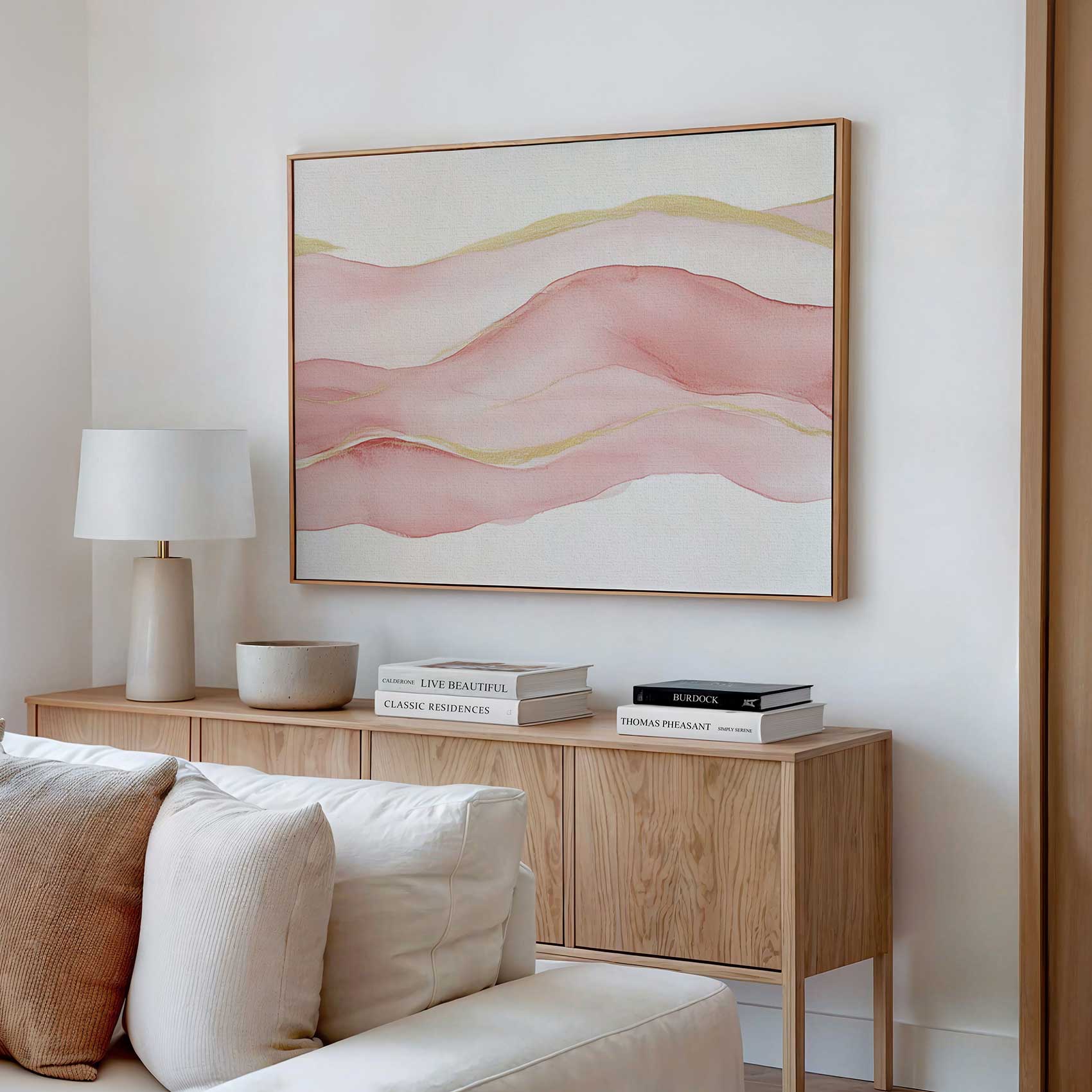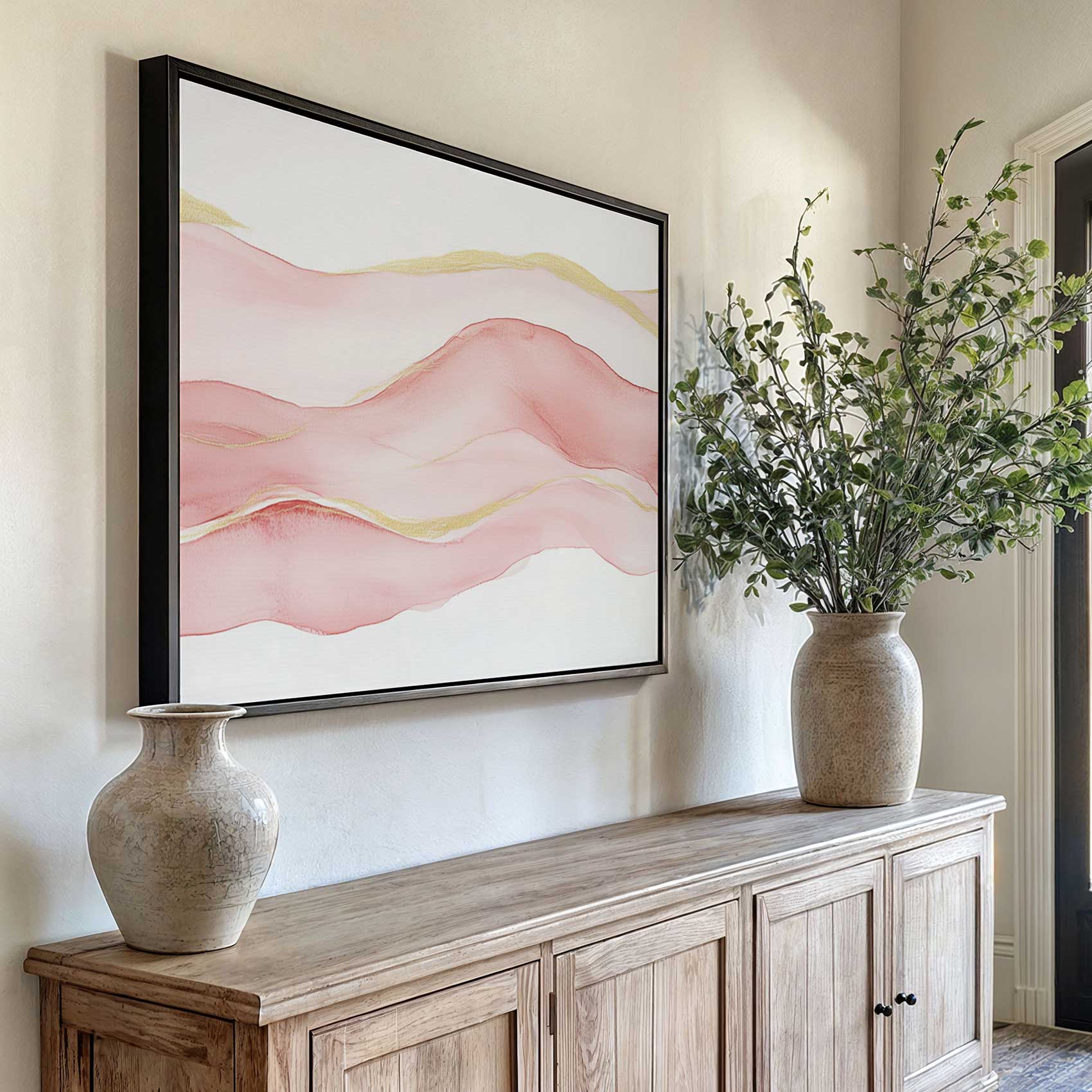 Terug naar collectie Canvas Roze-witte abstracte waterverfkunst