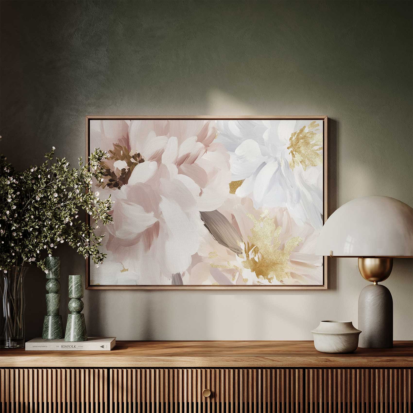 Terug naar collectie Canvas Bloemen Roze-witte bloemen met goud