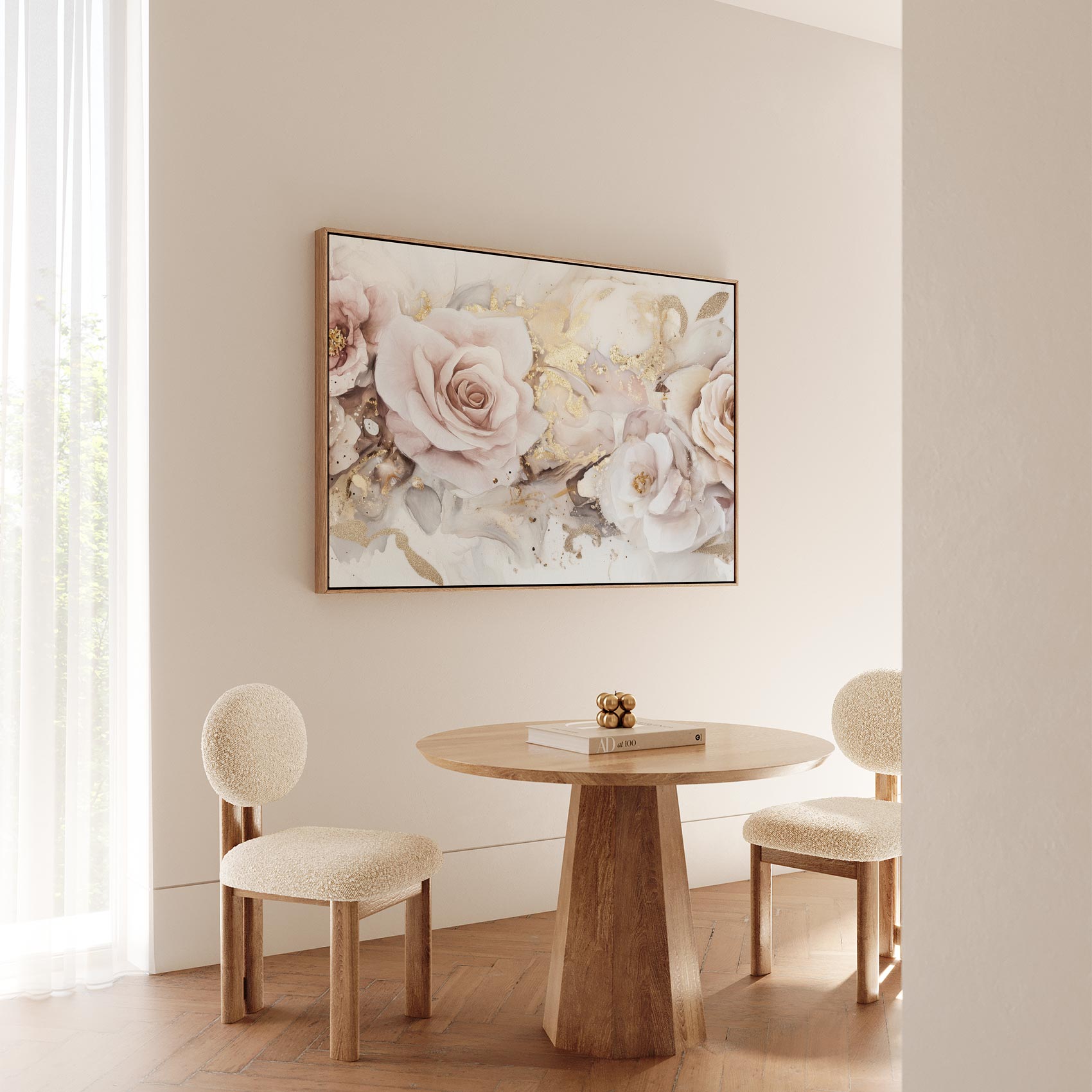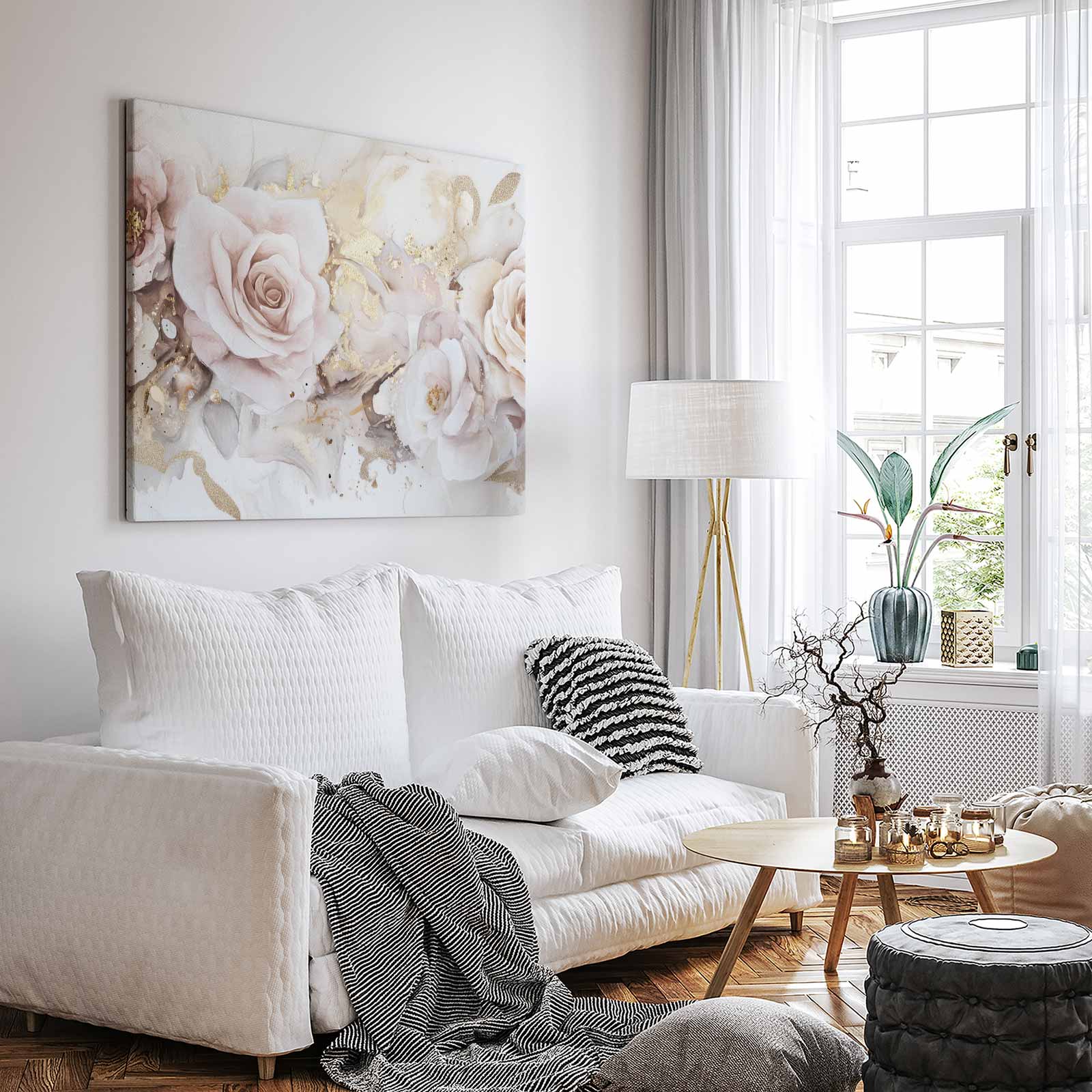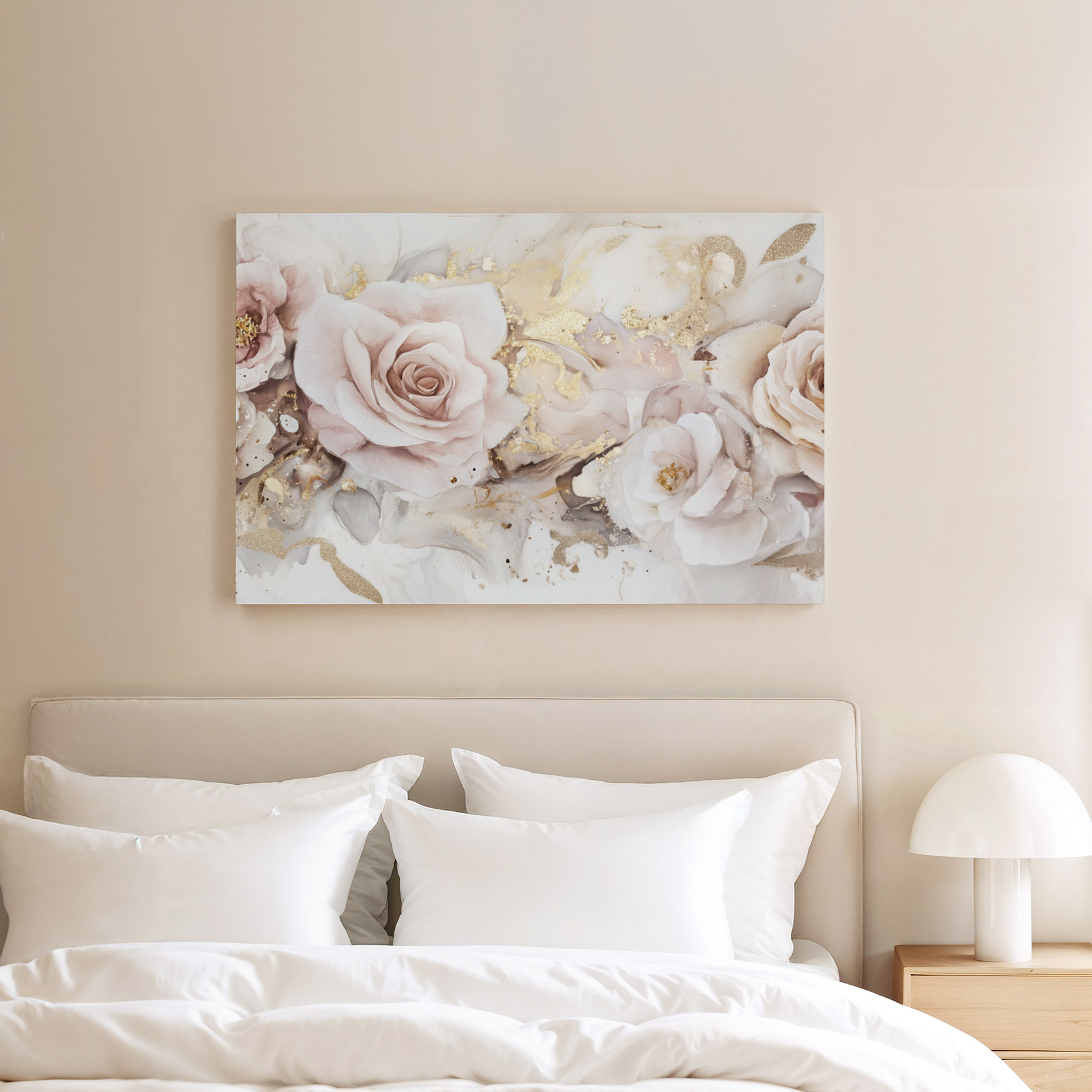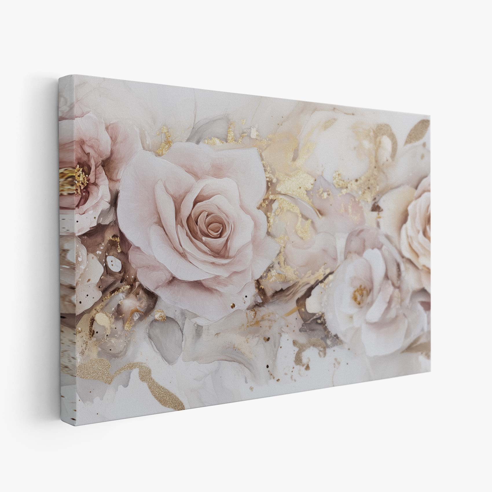 Terug naar collectie Canvas Bloemen Roze-witte rozen met goud