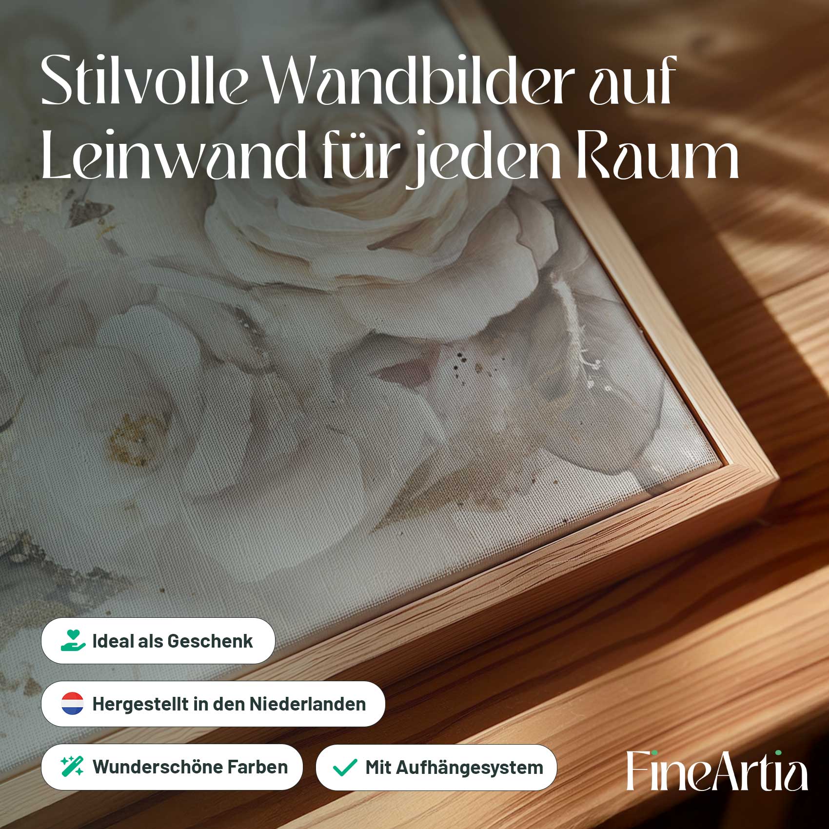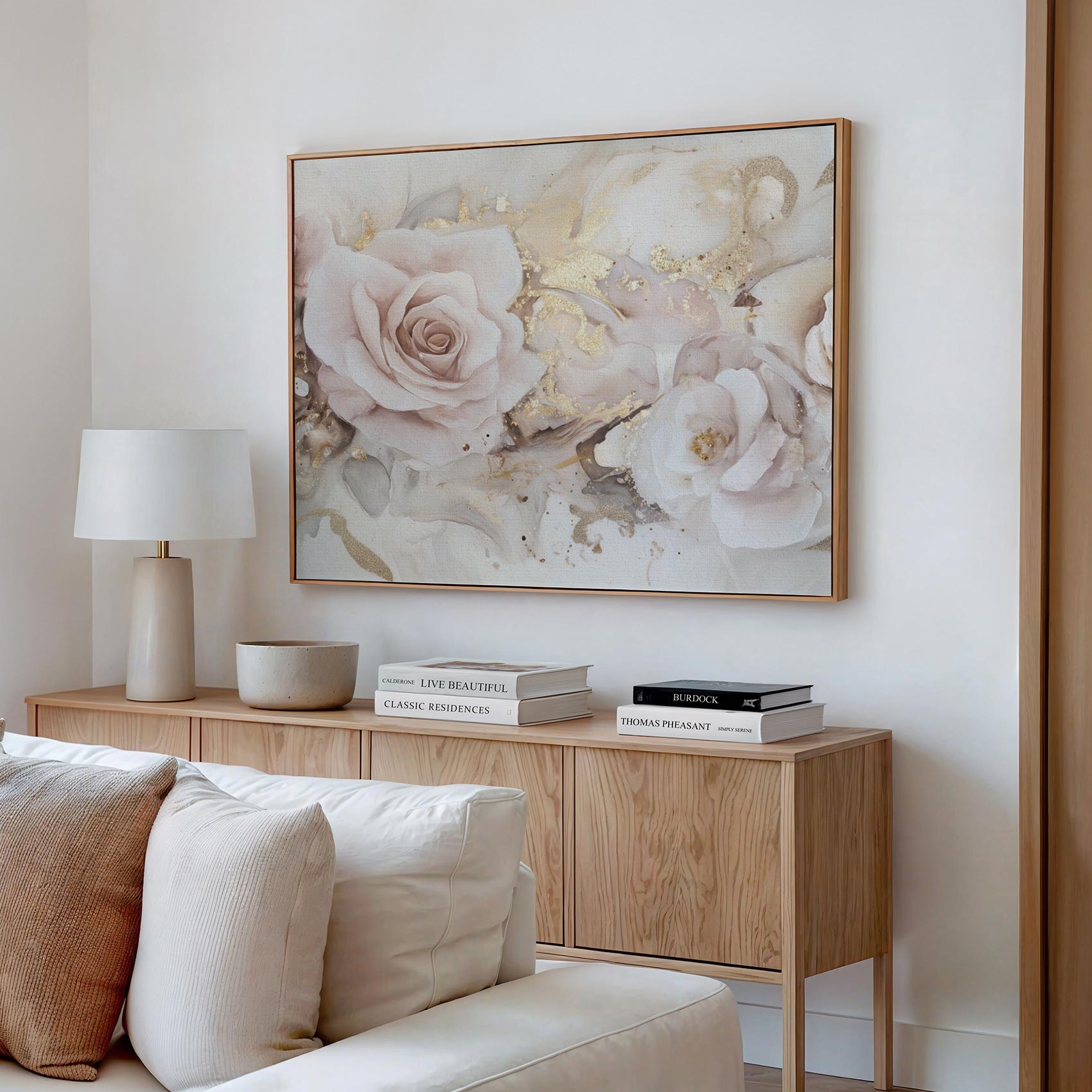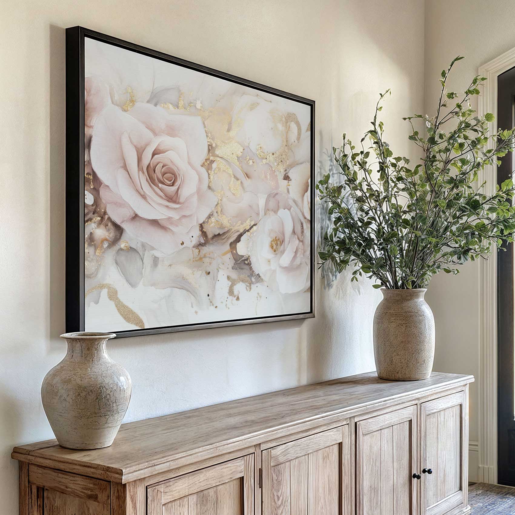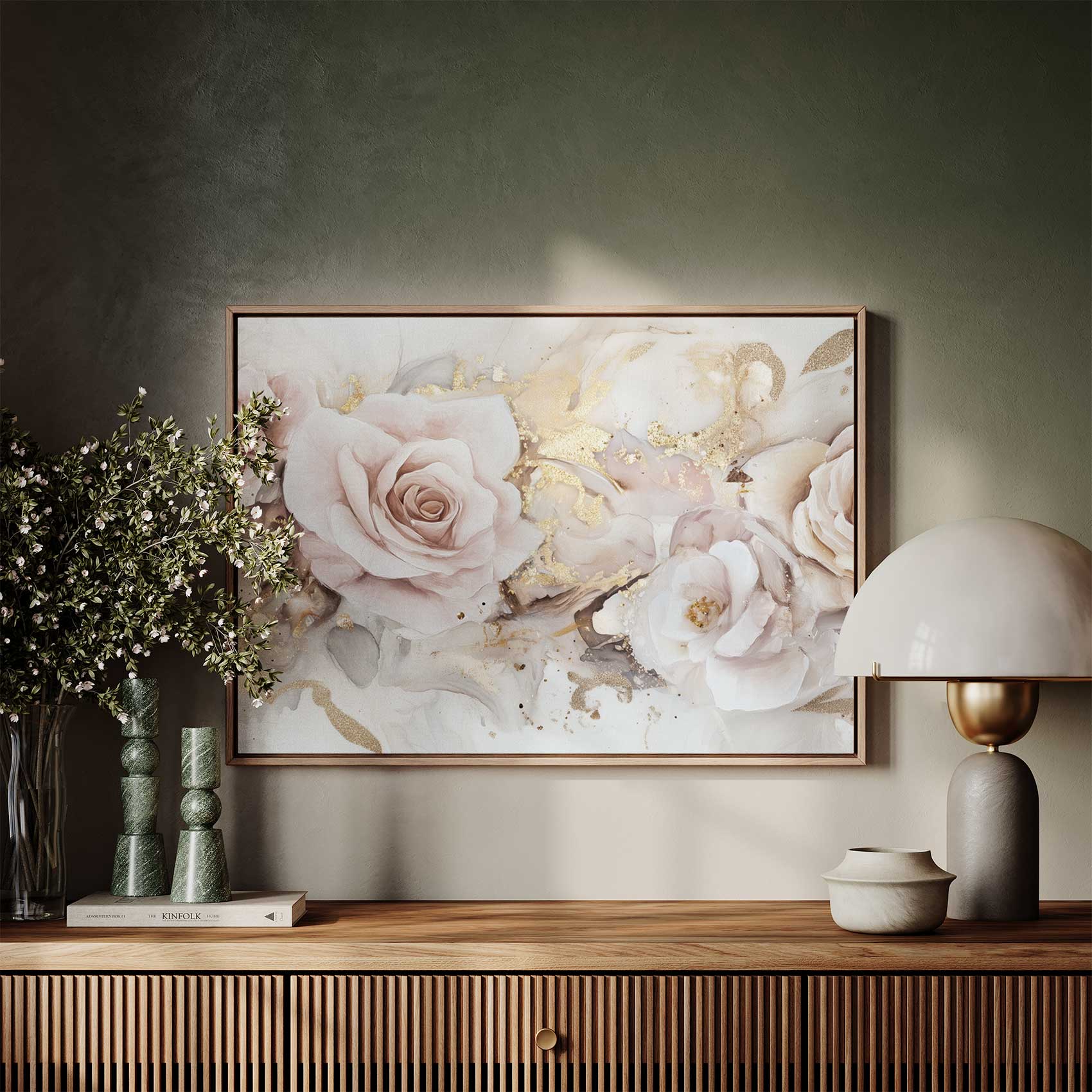 Terug naar collectie Canvas Bloemen Roze-witte rozen met goud