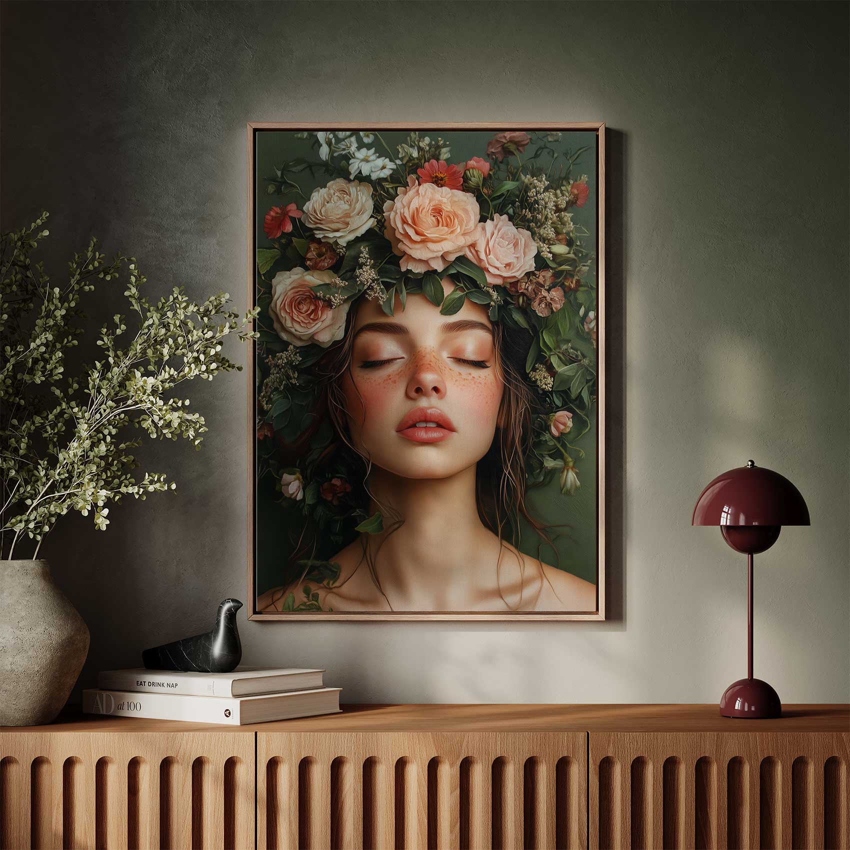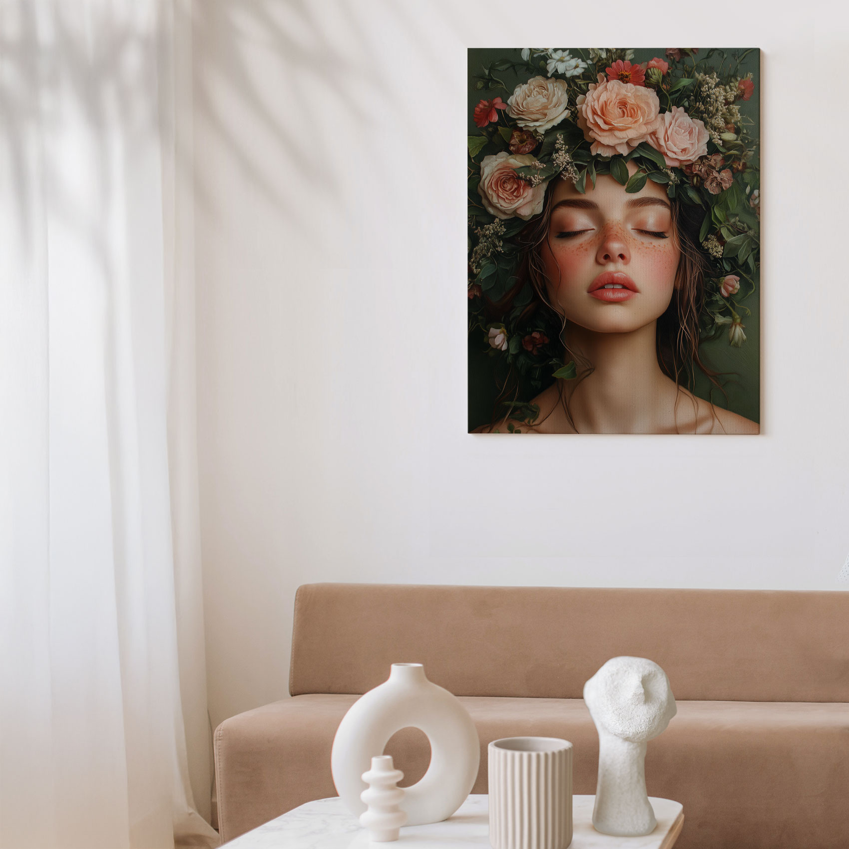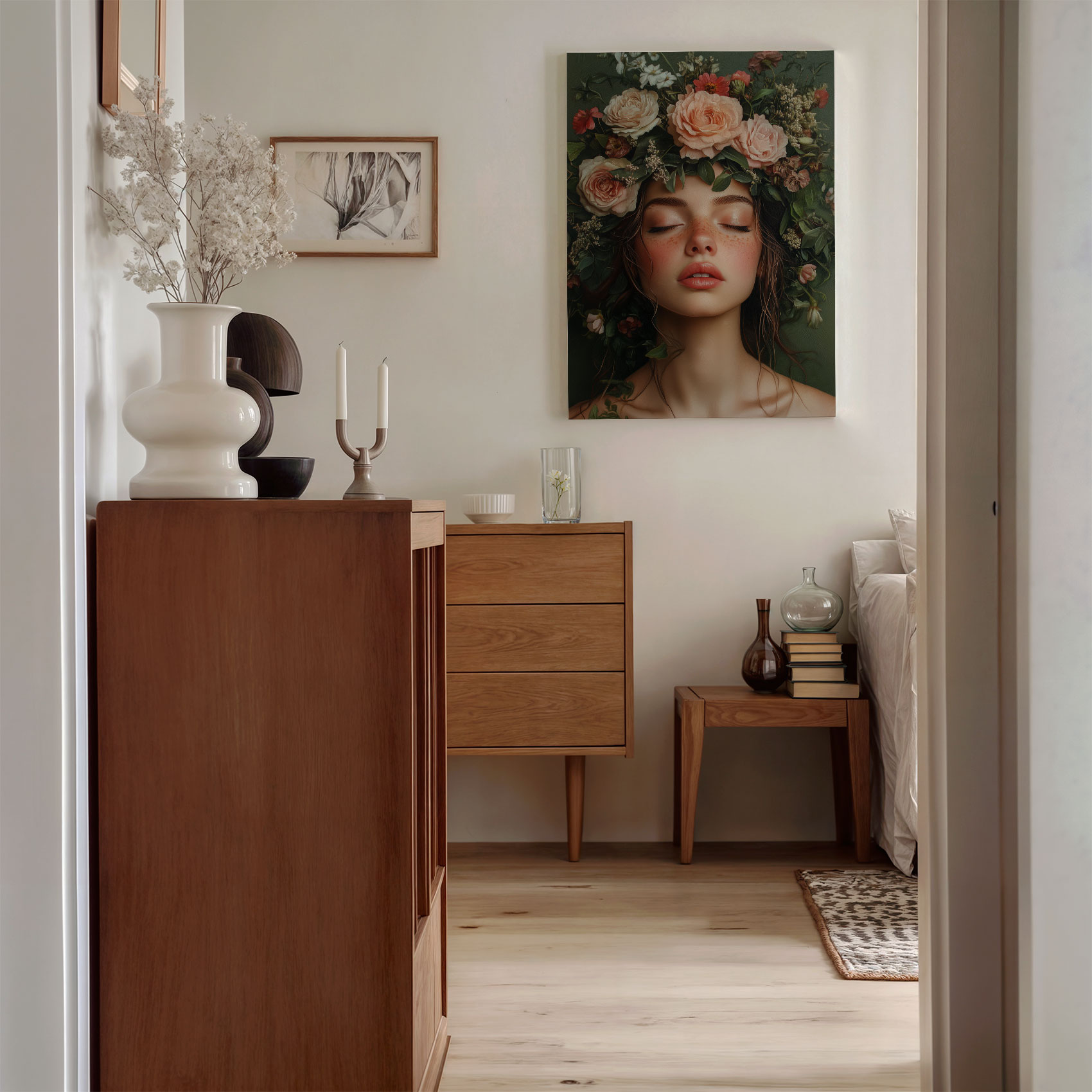Terug naar collectie Canvas Rozenkrans met Serene Vrouw
