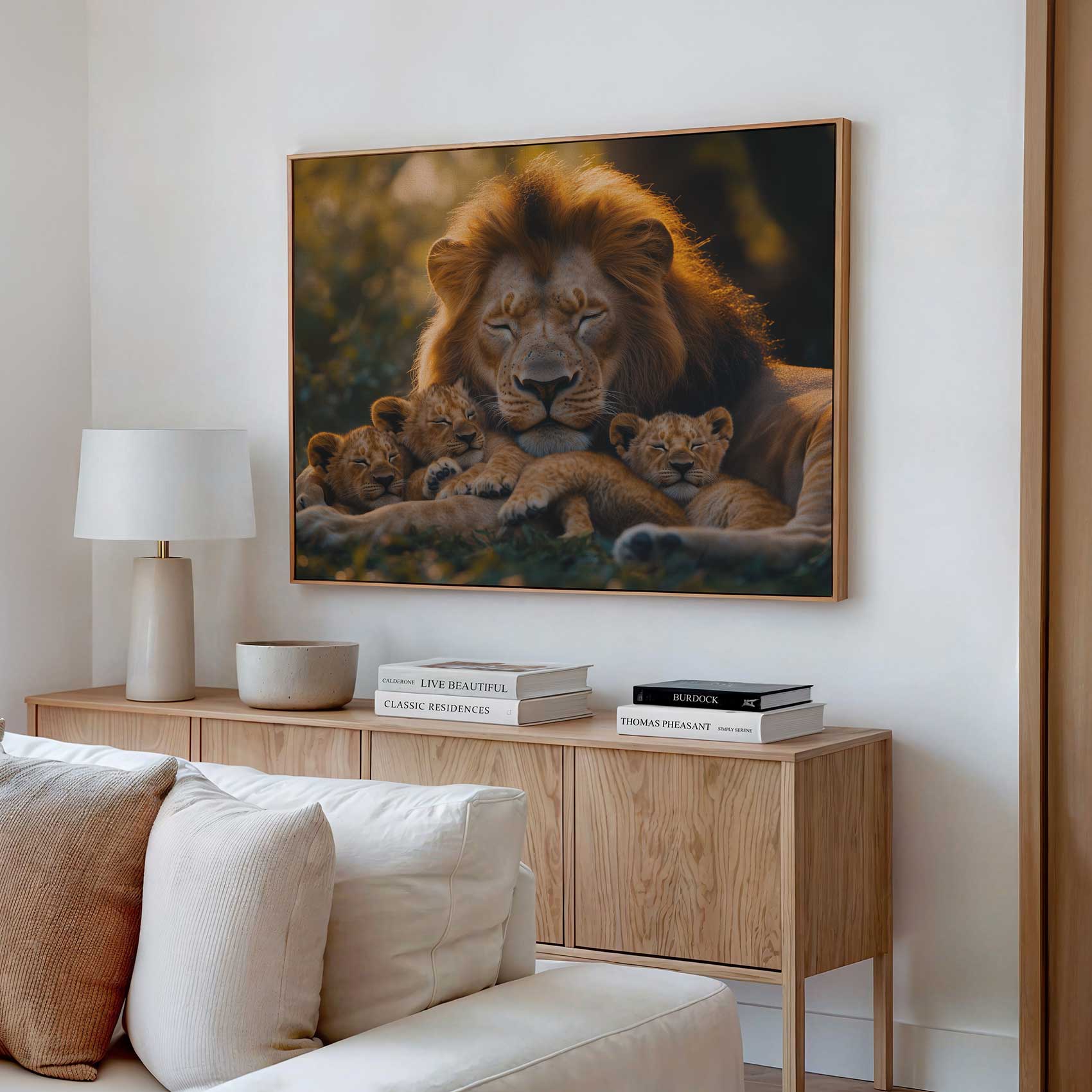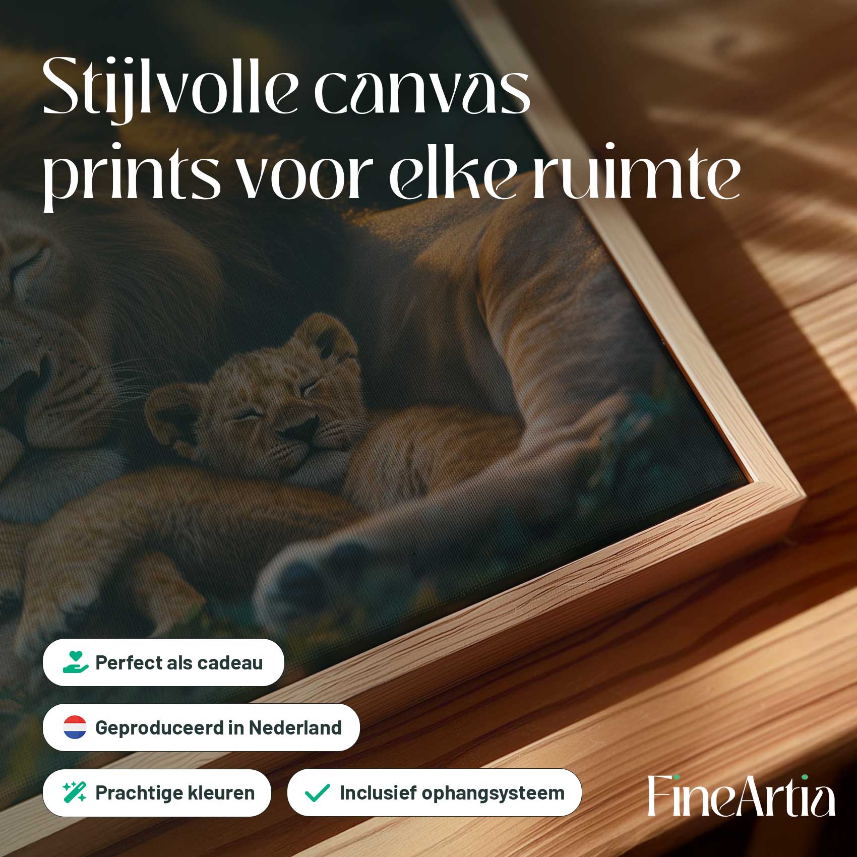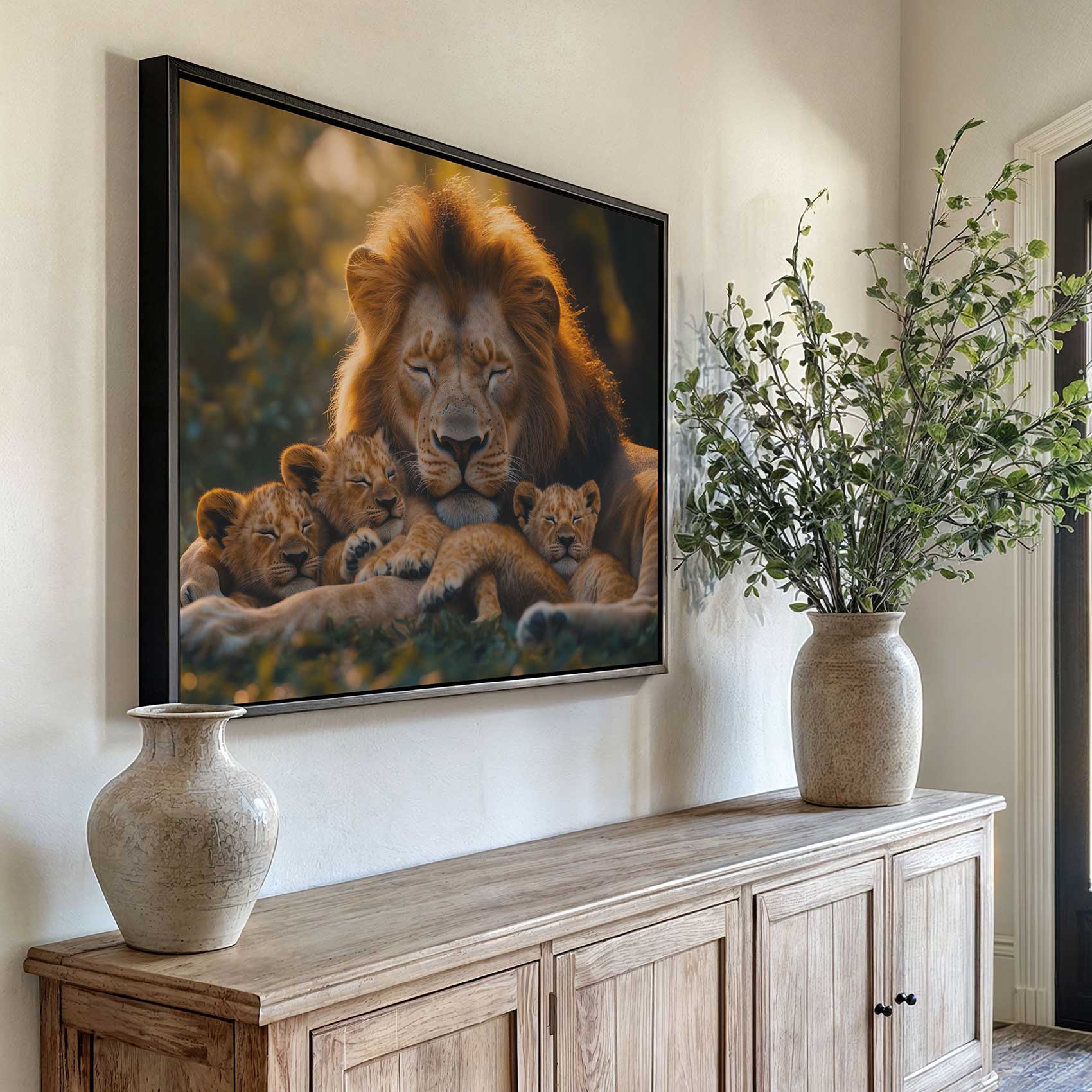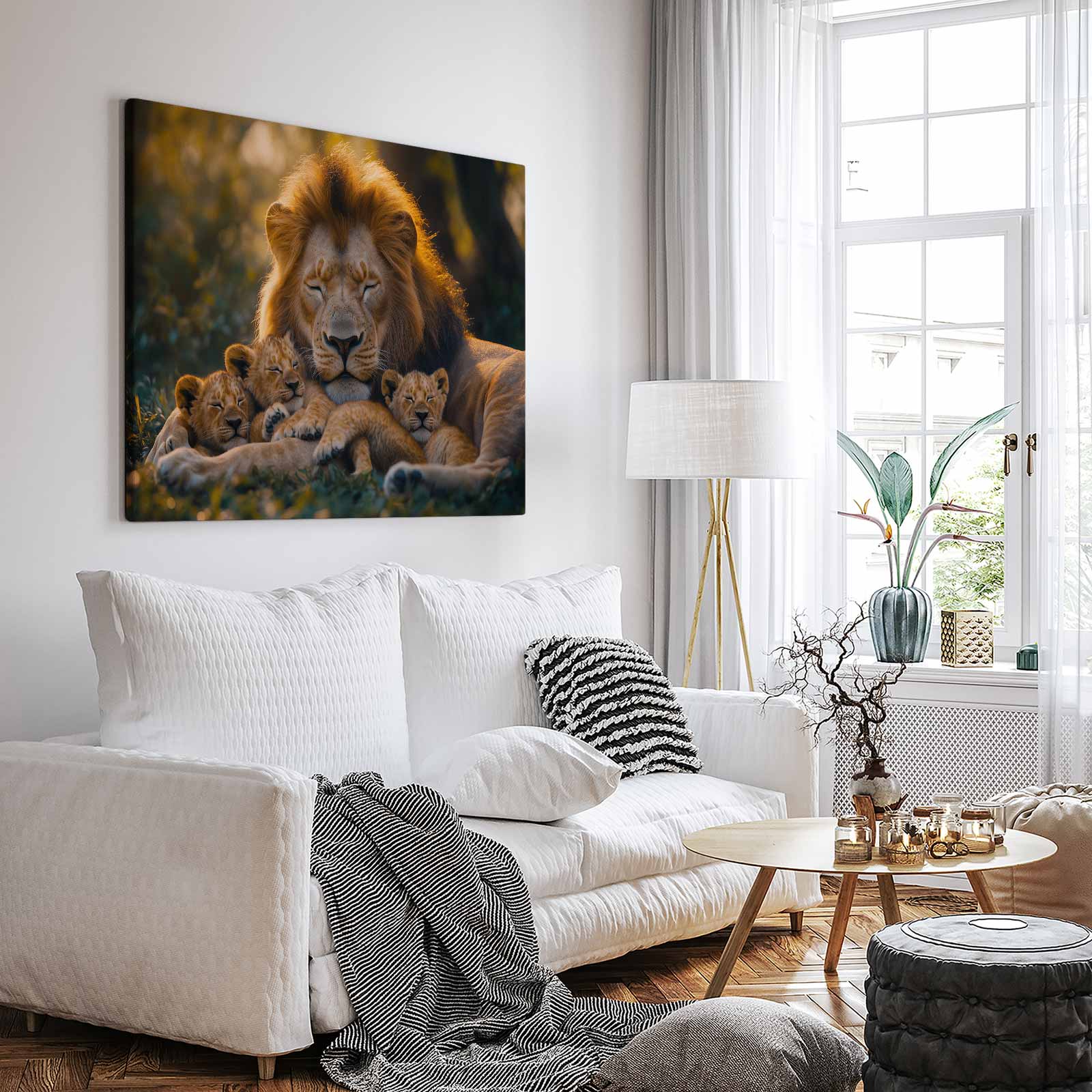Terug naar collectie Canvas Rustende leeuw met welpen