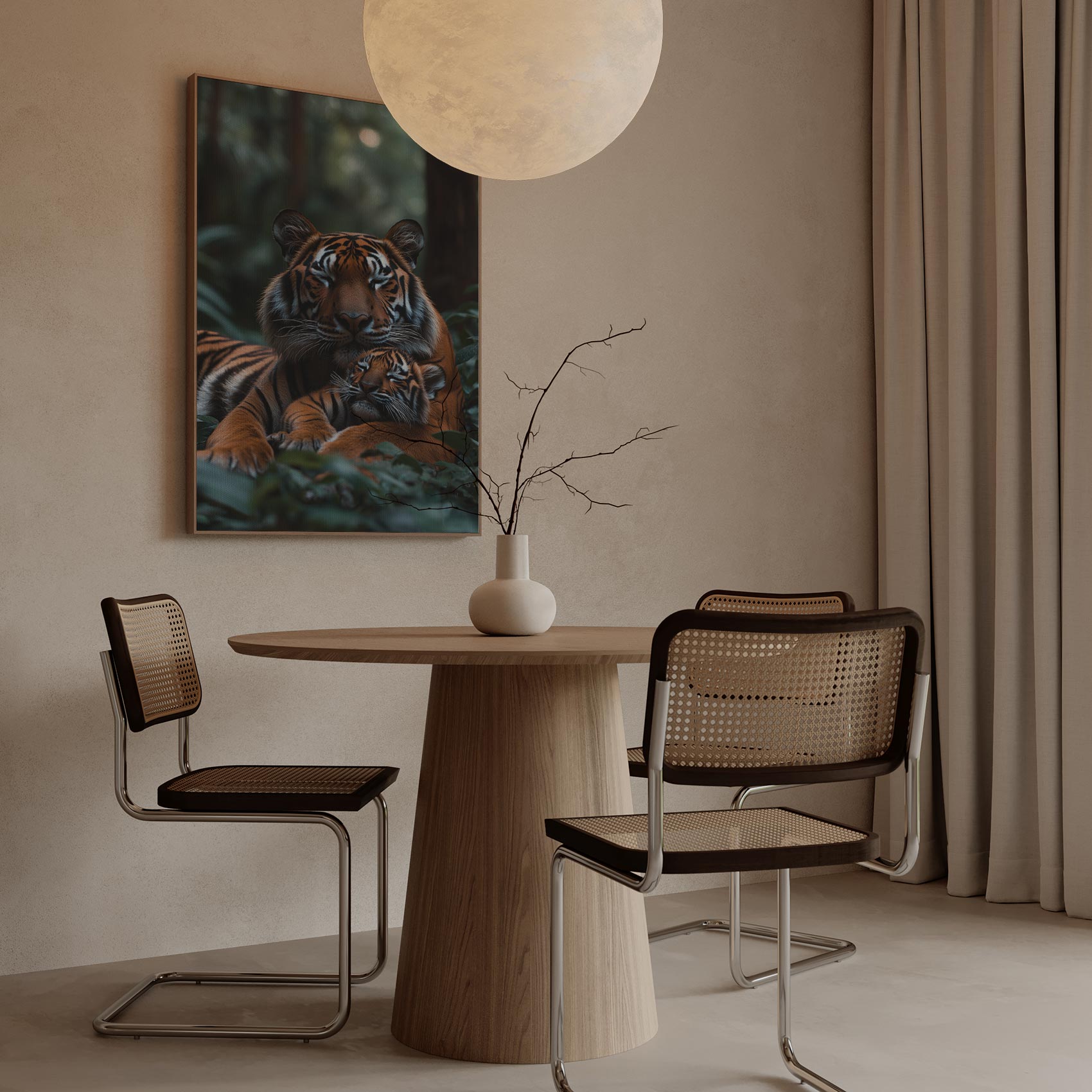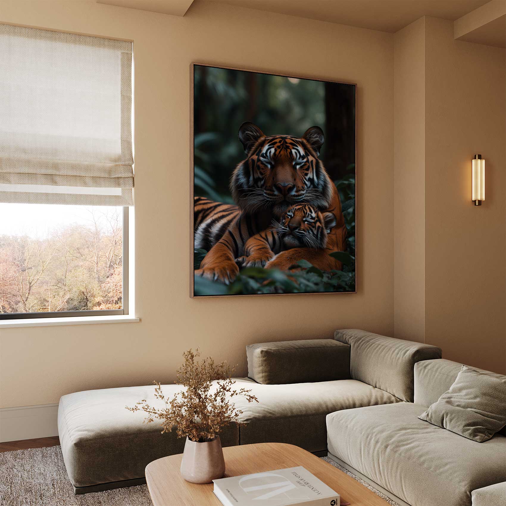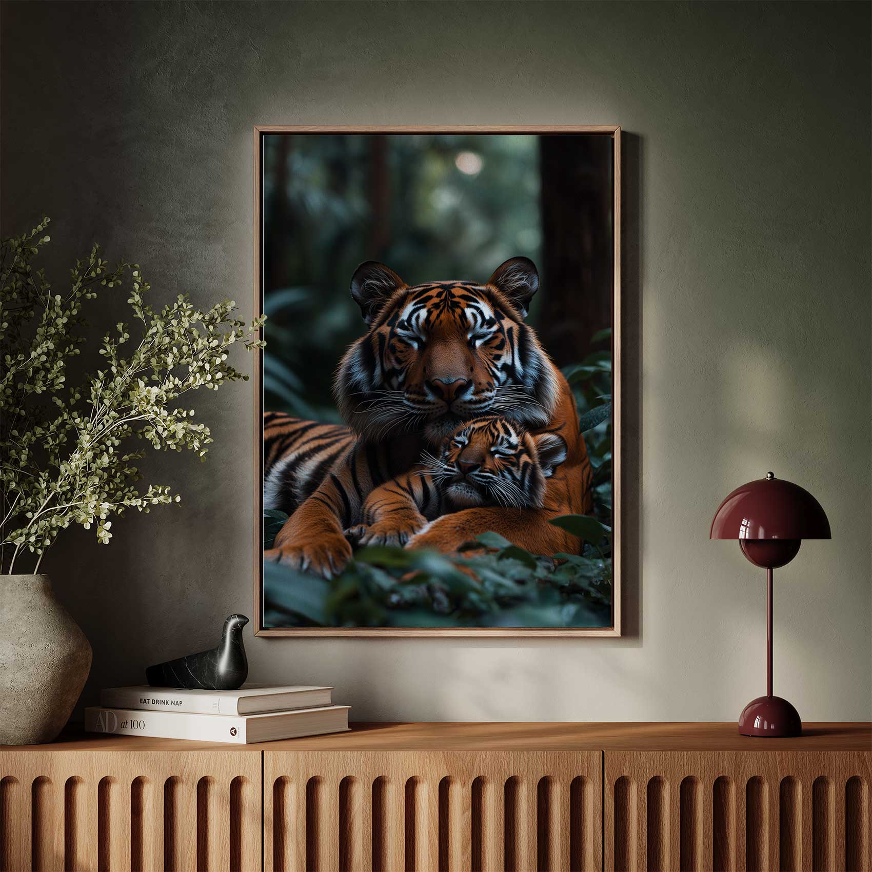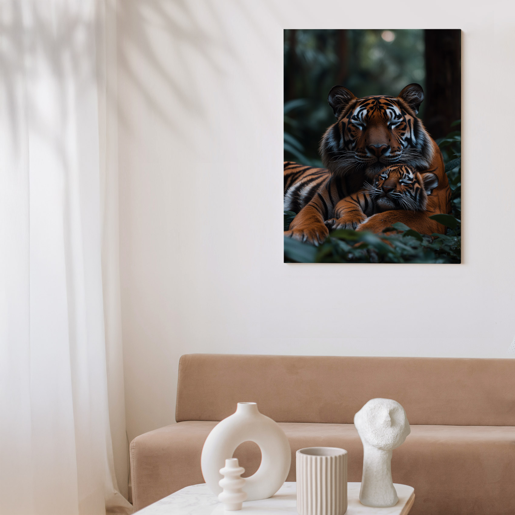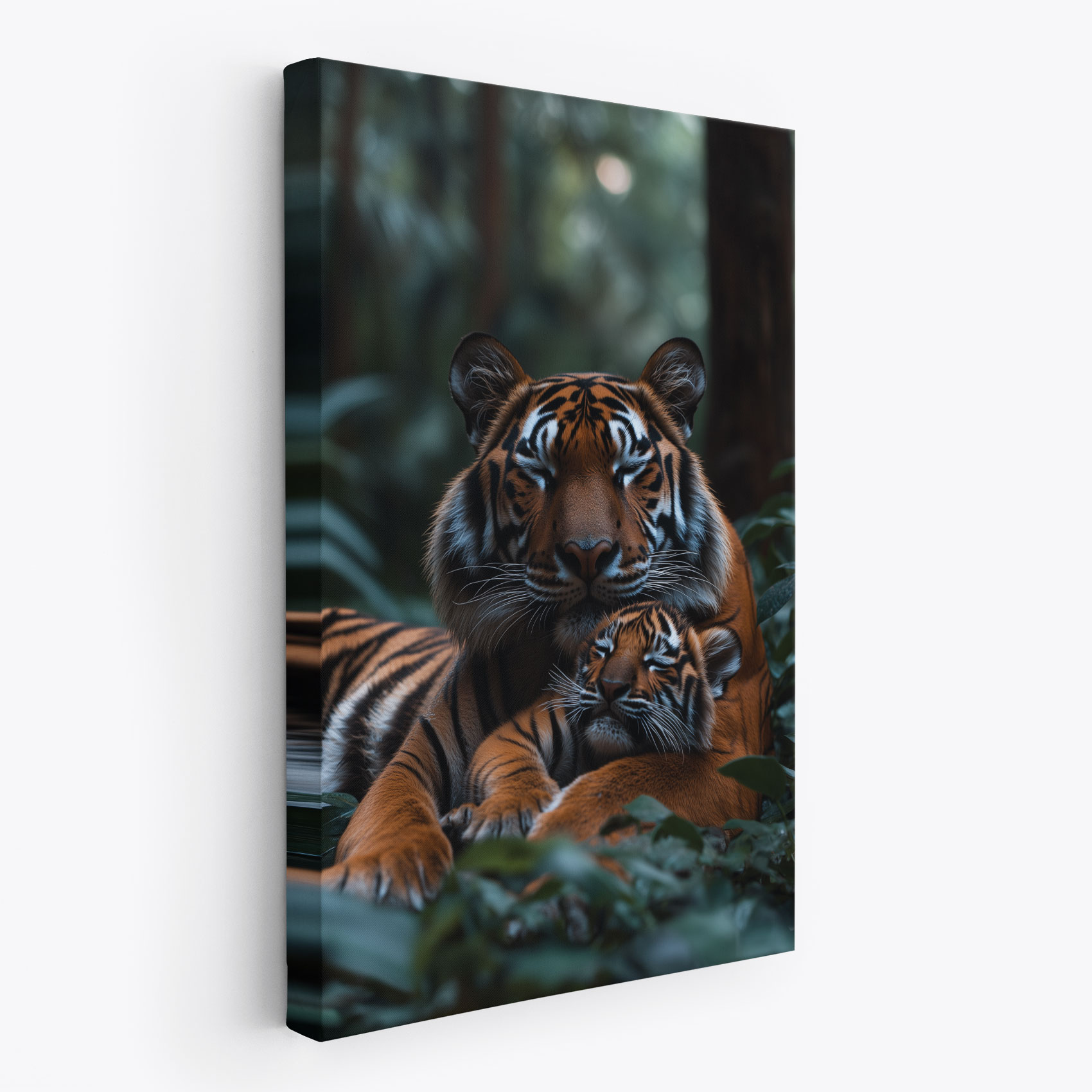Rustende tijgermoeder en welp
