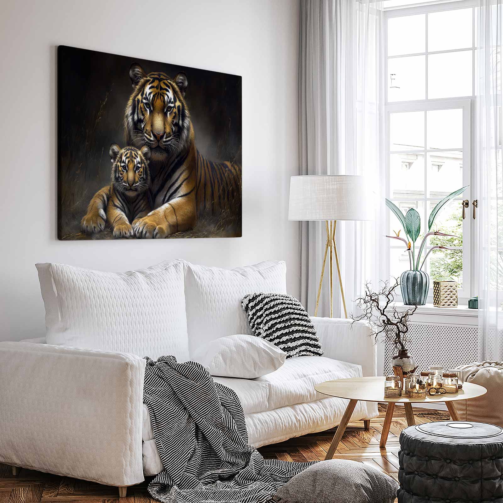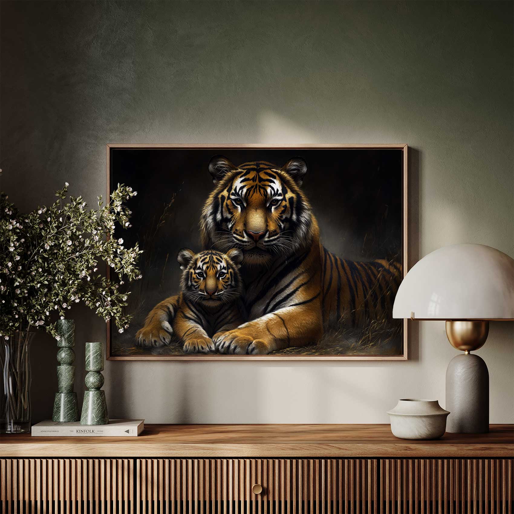Terug naar collectie Canvas Rustende tijgermoeder met welp