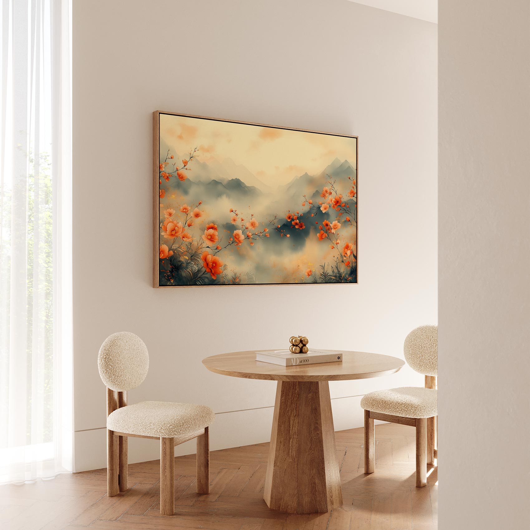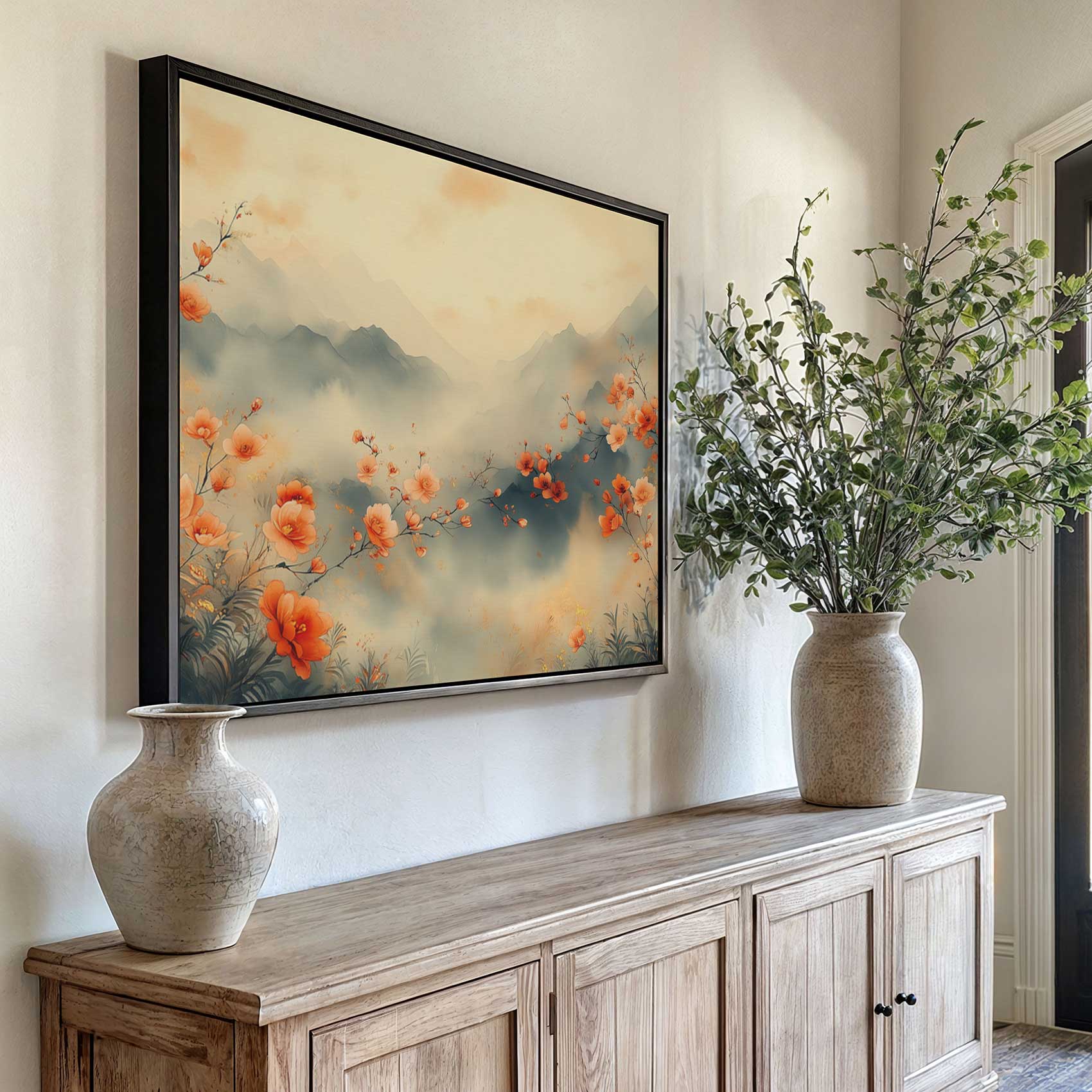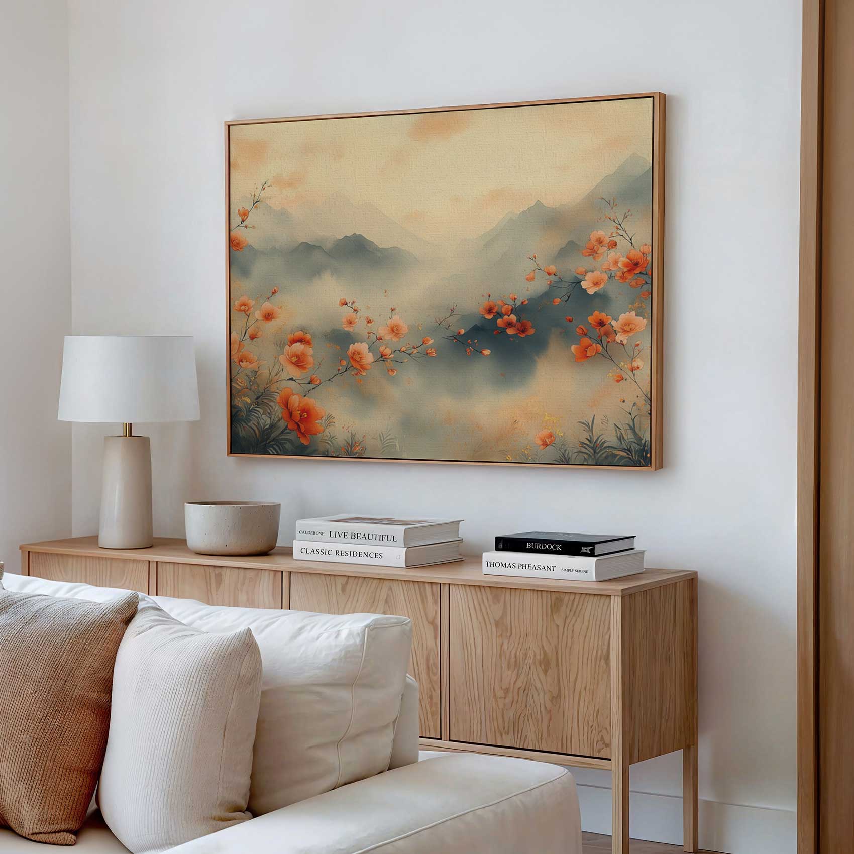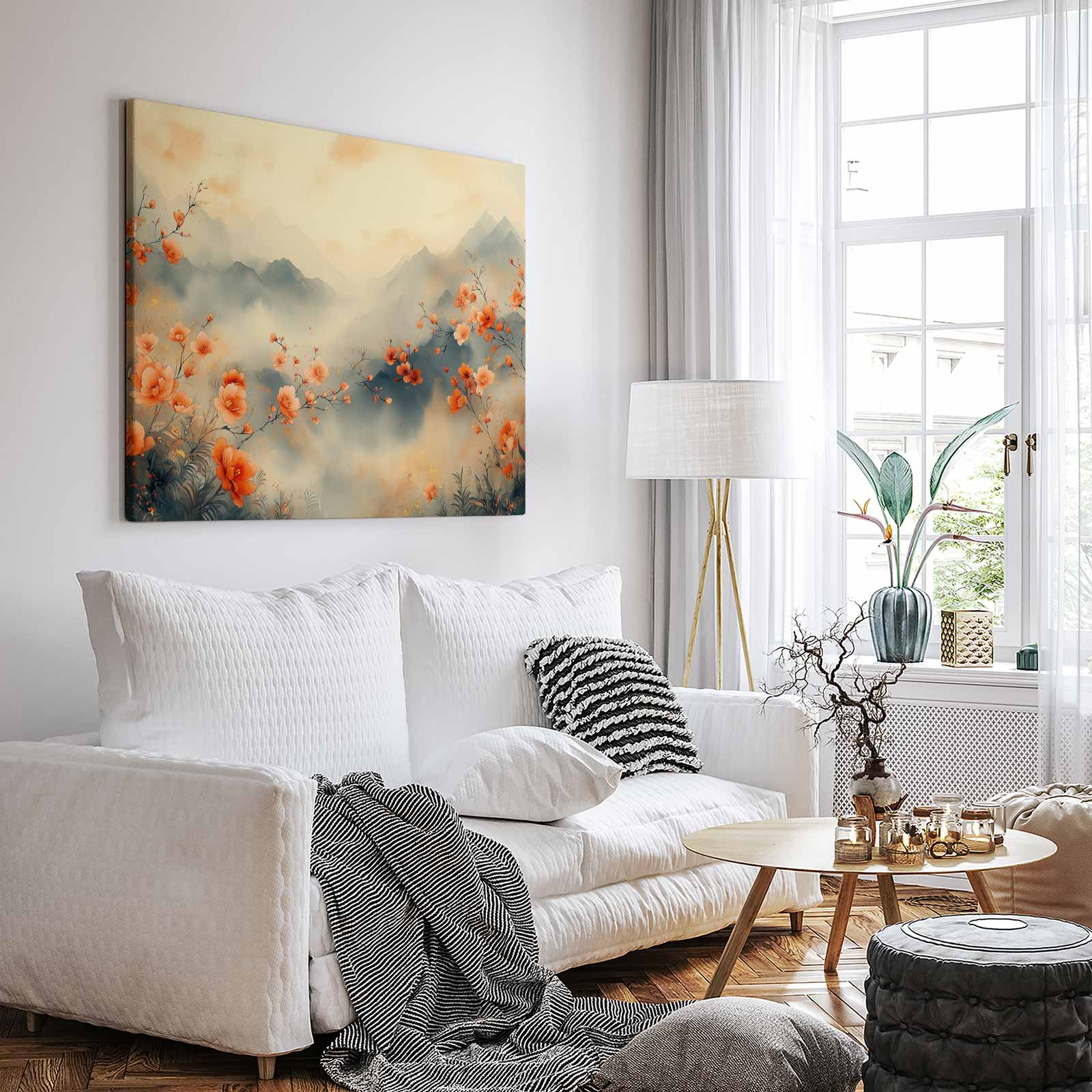 Rustig bloemenveld met bergen