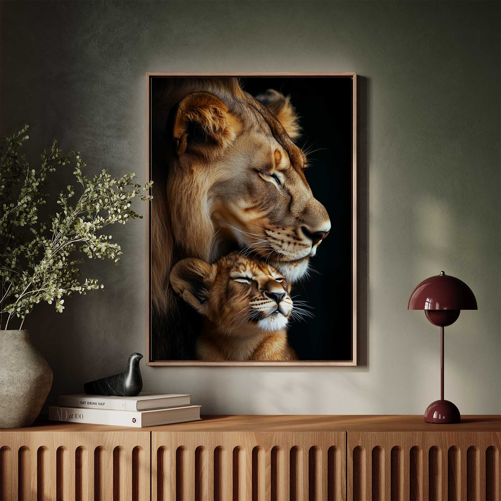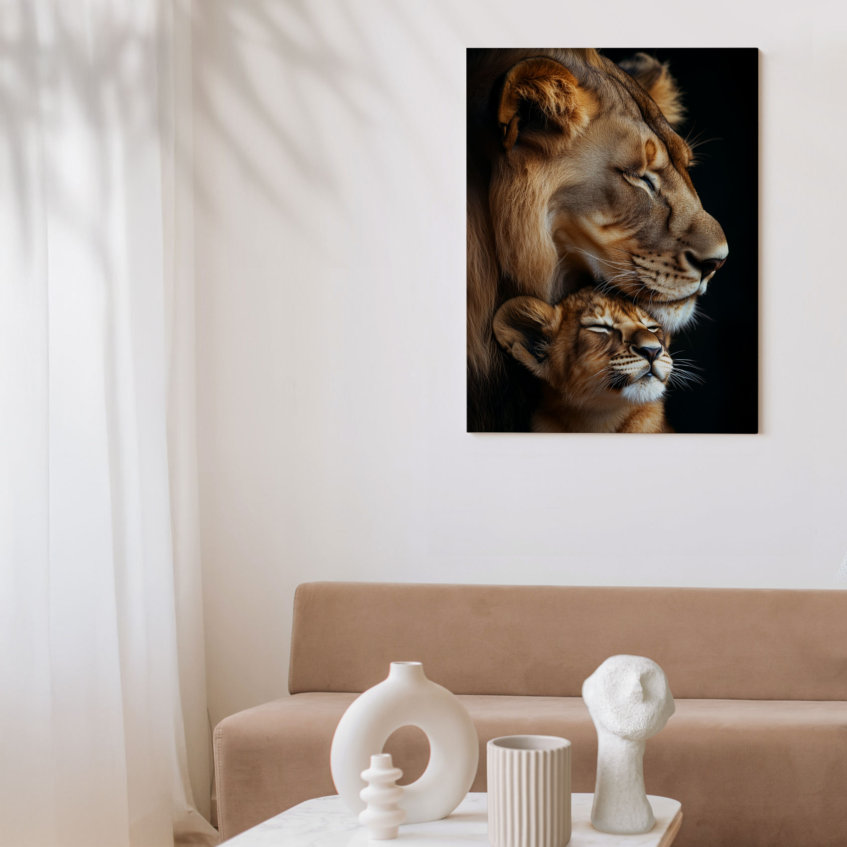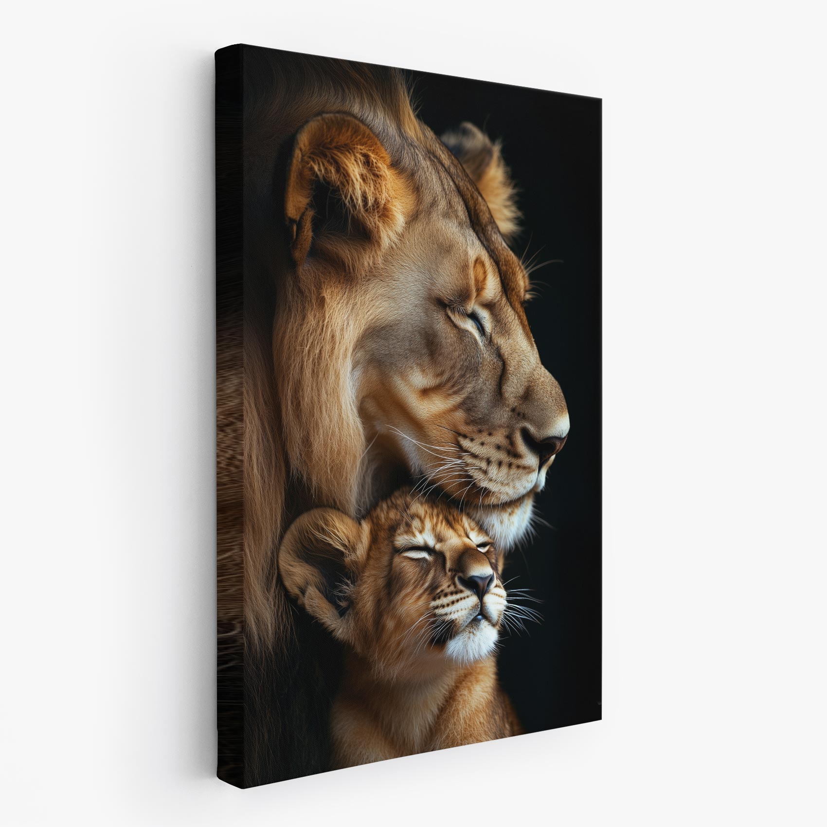 Terug naar collectie Canvas Rustige leeuwenmoeder en welp